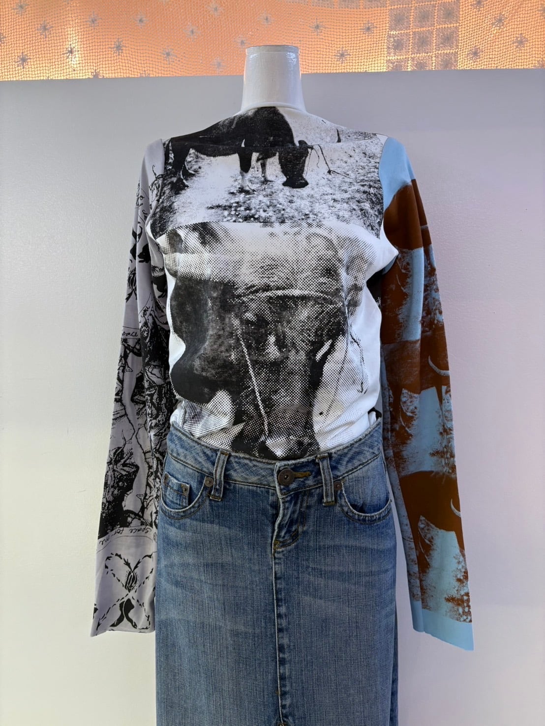 素材: Cotton サイズ: 肩幅33cm 身幅45cm 袖丈70cm 着丈58cm ハンドメイドのためサイズの個体差、プリントの位置、左右のプリントが写真と逆のものがありますのでご了承下さい。