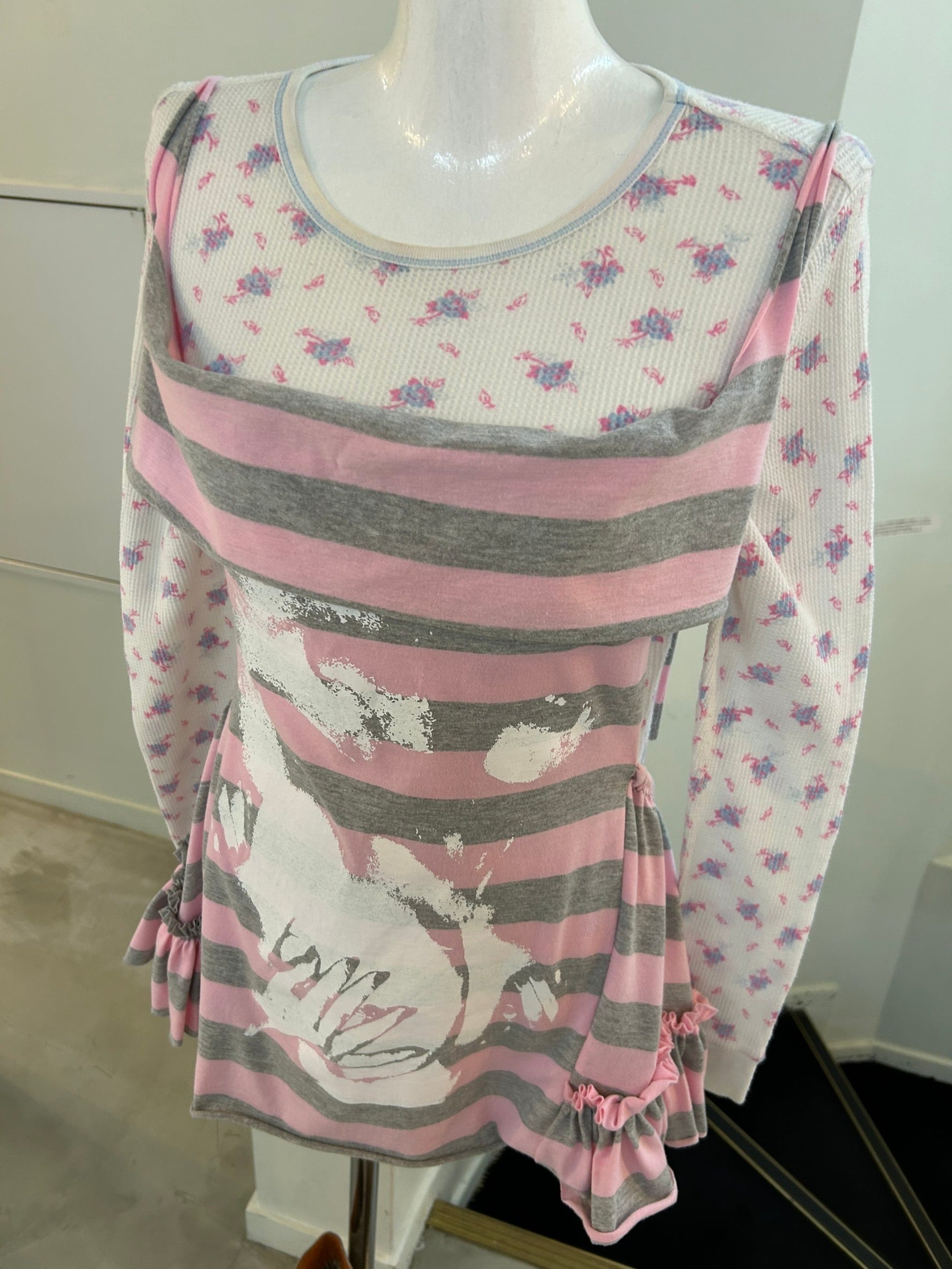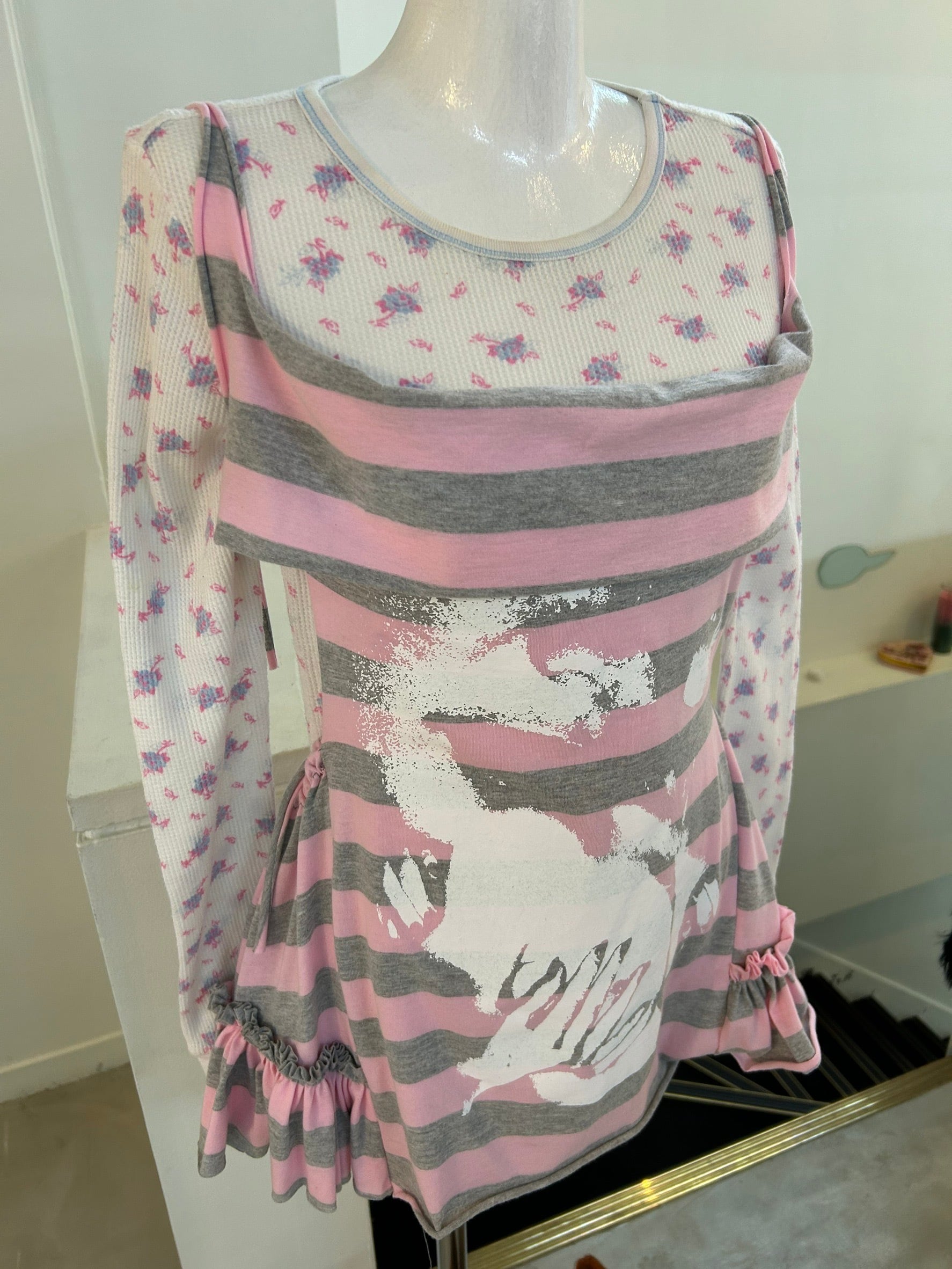 素材: Cotton サイズ: フリーサイズ 身頃丈53cm BONE(ボーン)ニューヨークを拠点に、ユーモアやセンシュアリティを交えたパーソナルな表現を特徴とするブランド。 シルクスクリーンなど手作業による制作を大切にしており、フェミニンさと力強さが共存するアイテムを展開しています。