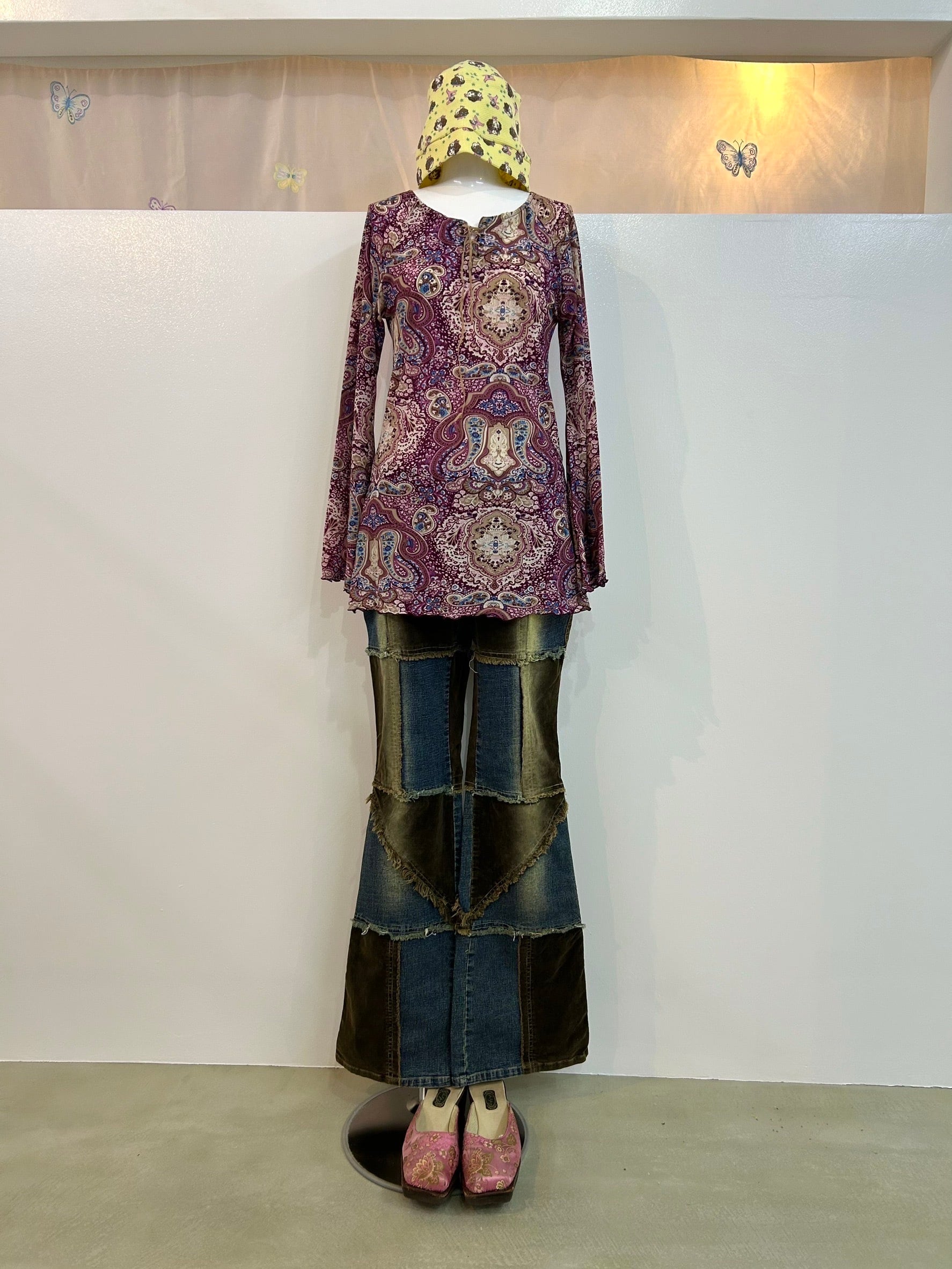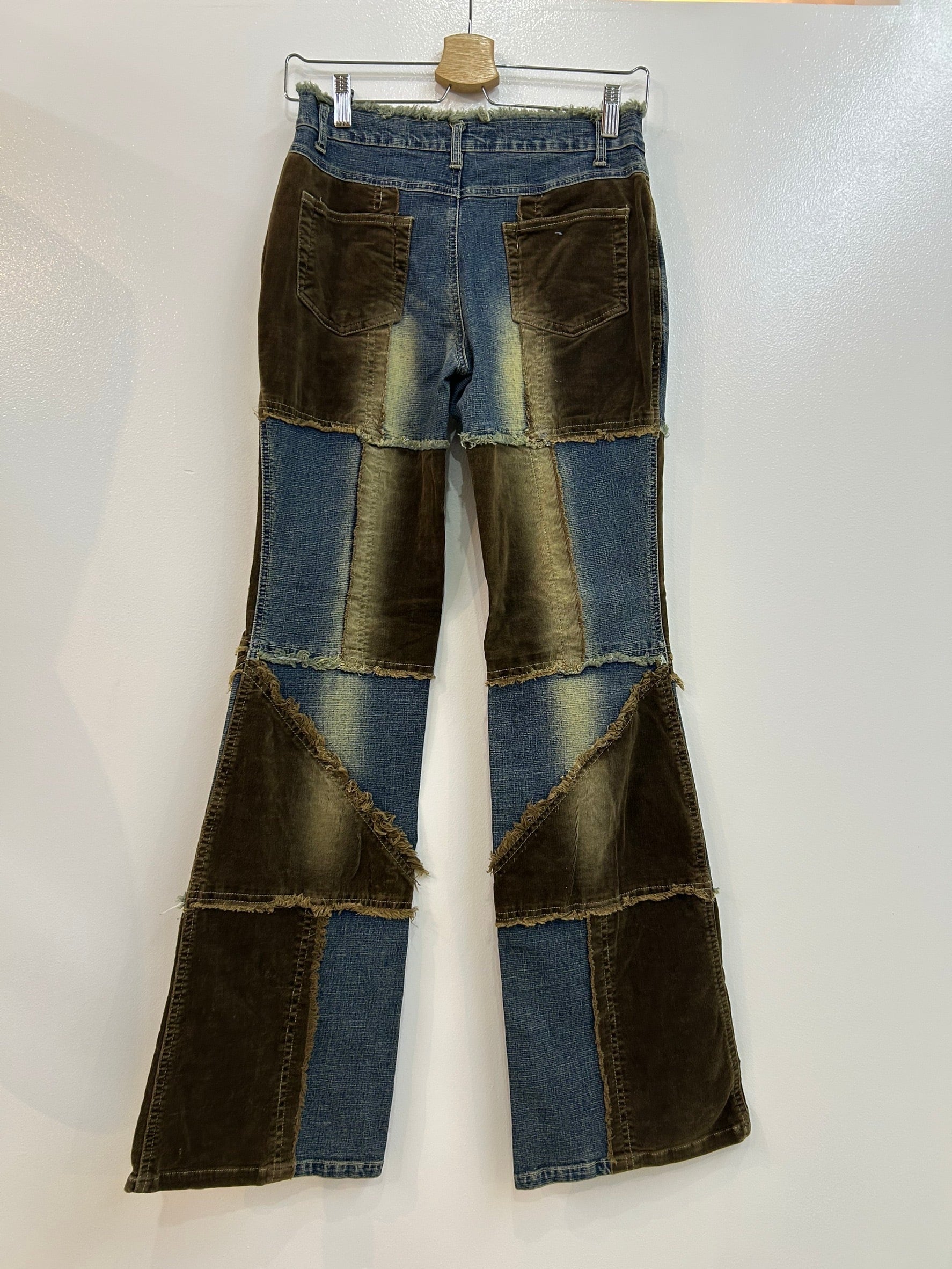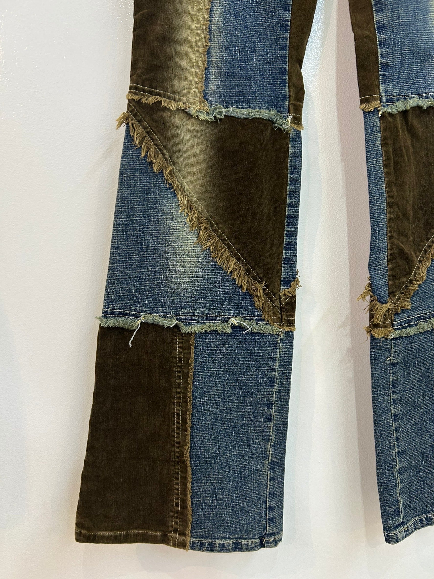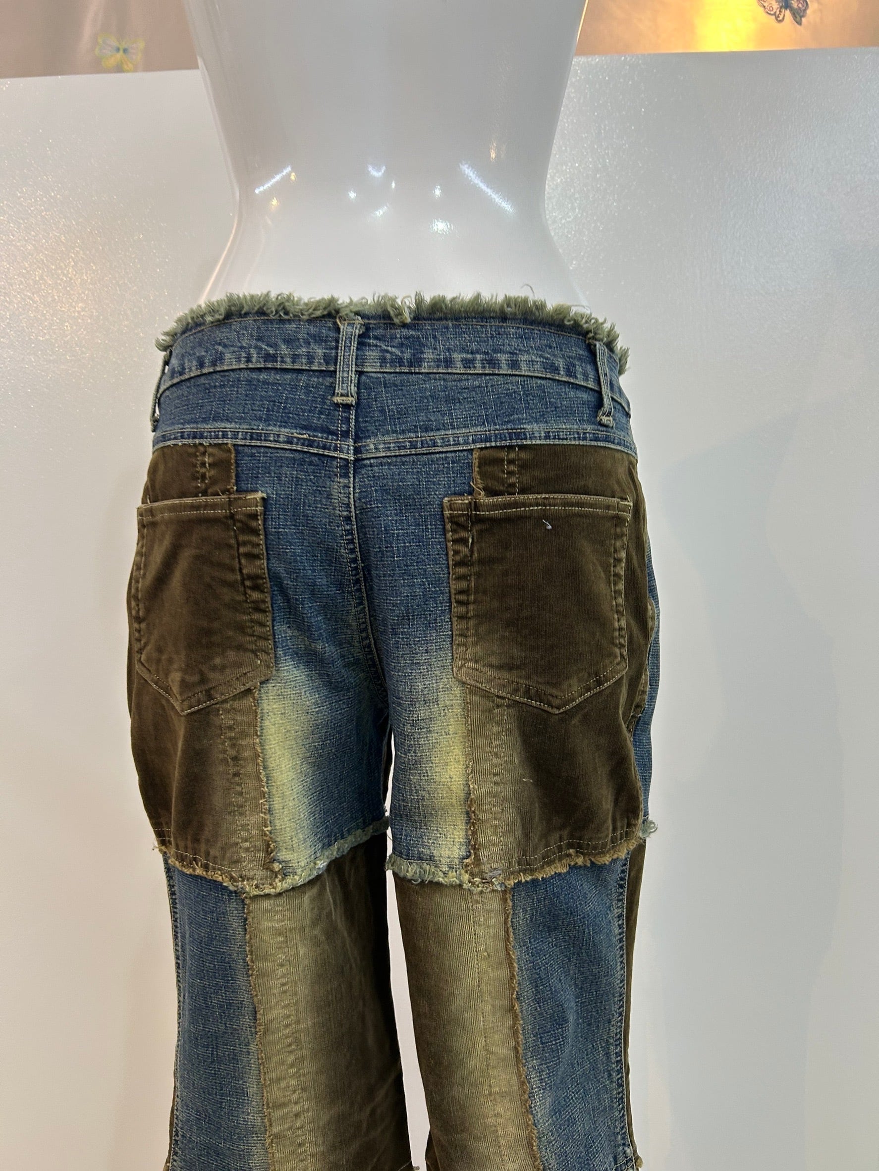 素材: 75%Cotton 22%Polyester 3%Spandex サイズ: ウエスト幅34cm ヒップ幅45cm 股上23cm 股下81cm わたり幅23cm 裾幅26cm ダメージ: 写真15枚目の汚れがあります