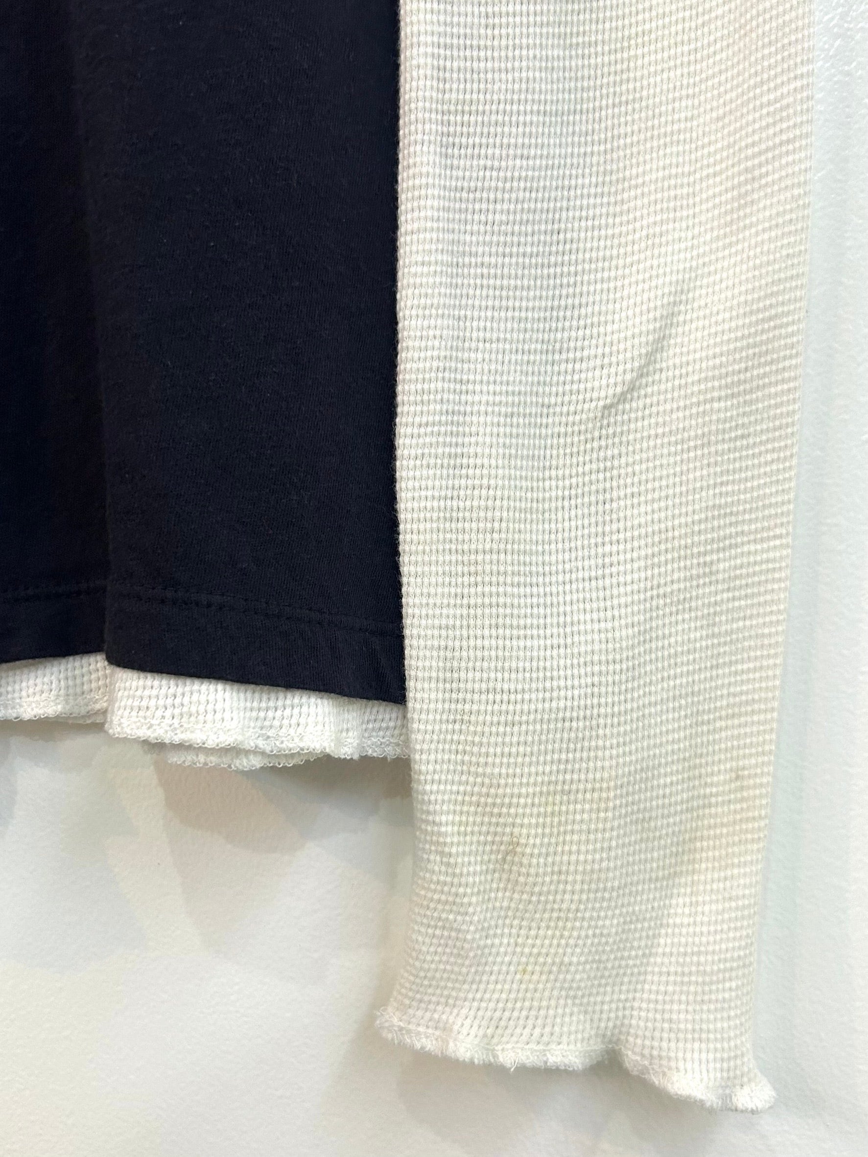 素材: 100%Cotton サイズ: 着丈64cm 肩幅41.5cm 身幅39cm 袖丈68.5cm ダメージ: 写真10〜20枚目の汚れがあります。