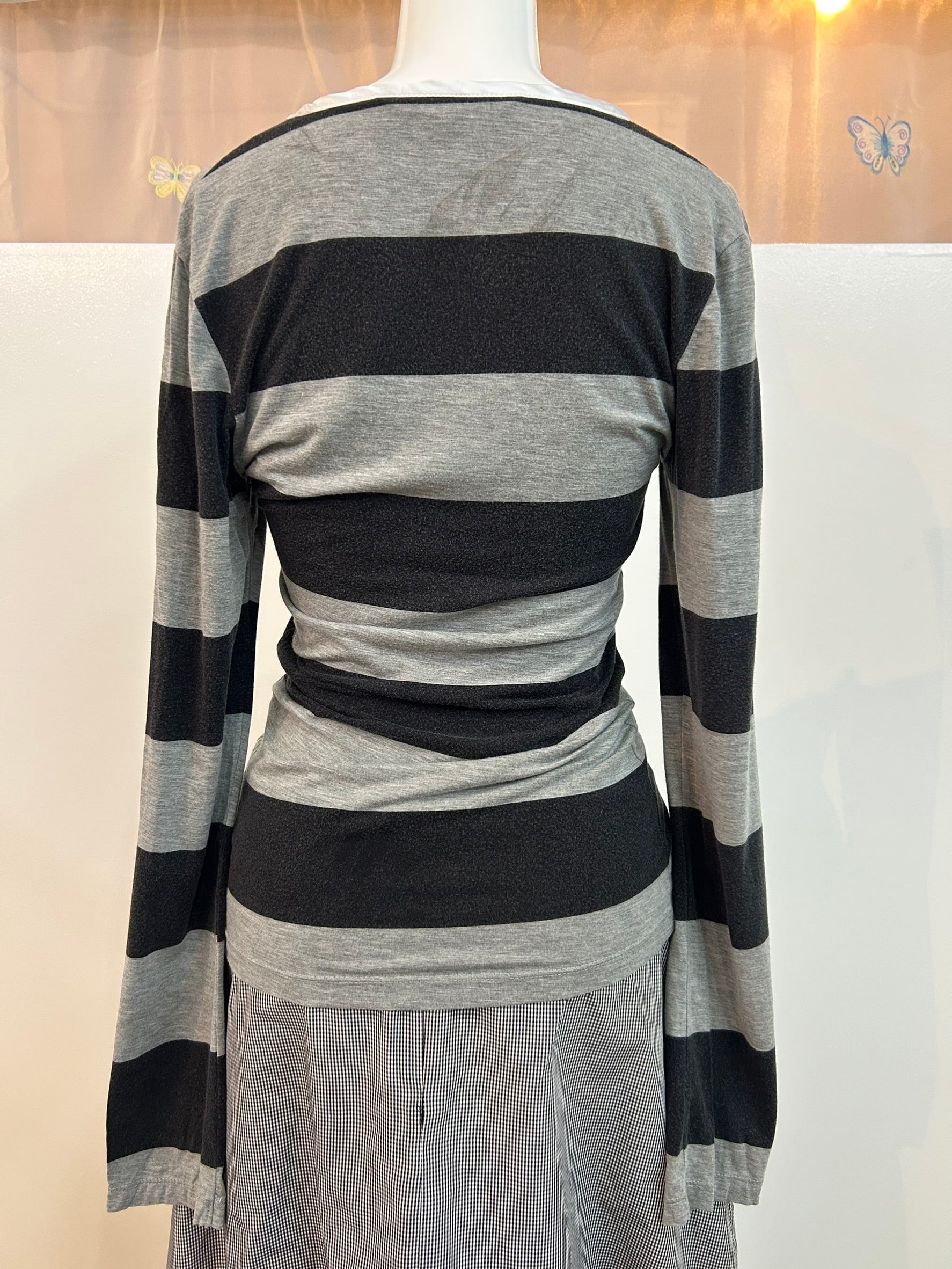 素材: 94%Modal 6%Spandex サイズ: S(表記) 着丈64cm 肩幅39cm 身幅35cm 袖丈63cm ダメージ: 写真16.17枚目の汚れがあります、全体的に取りきれない毛羽立ちがあります。