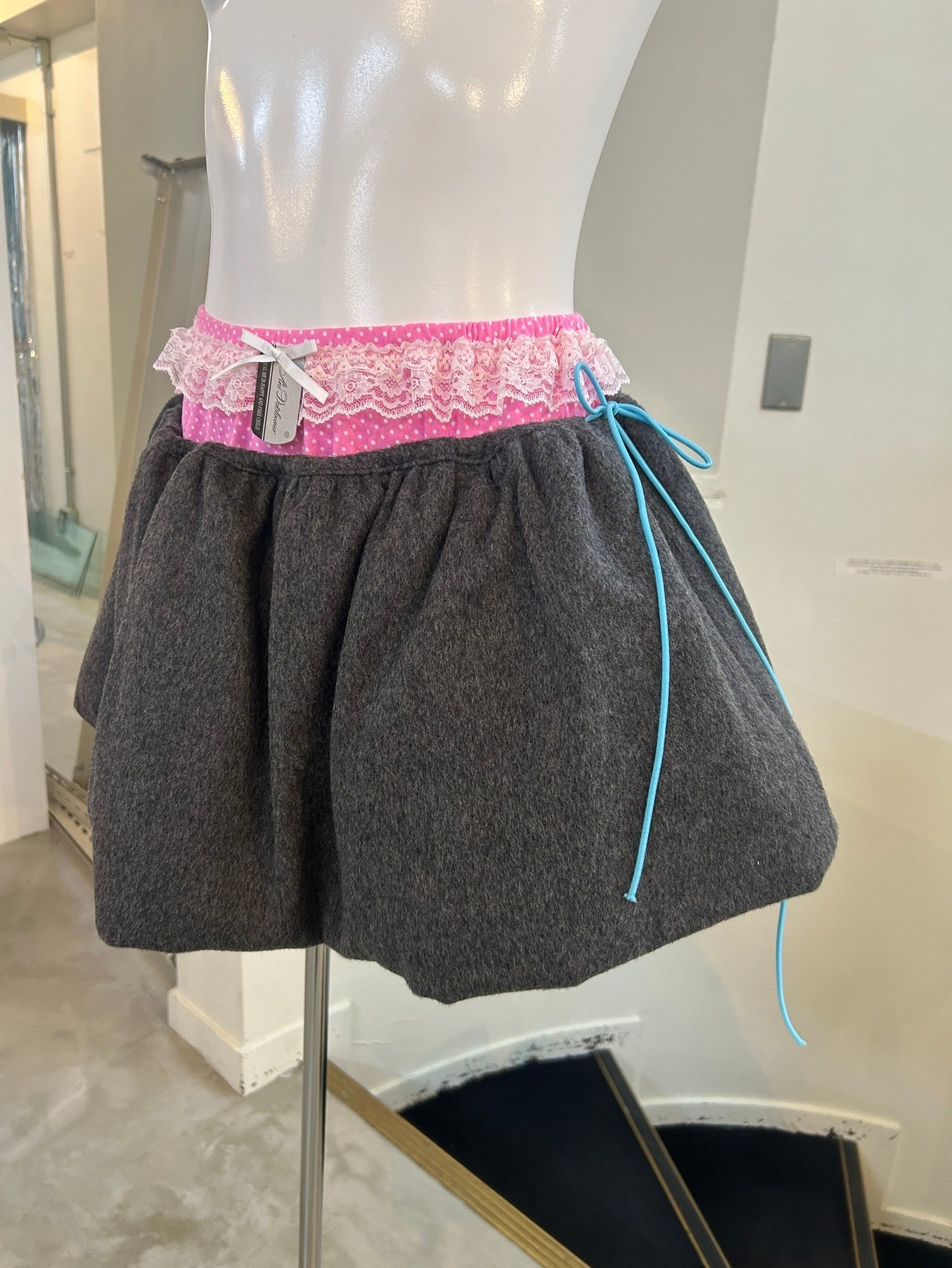 素材: 100%Wool サイズ: ONE SIZE ウエスト〜100cm(ゴムのリボンで調節可能) 総丈26cm Ans Dotsloevner は デザイナー Hanano Momose により2021年に設立した東京を拠点としたブランド。 幼少期の記憶、ときめきや憧れをクリエイションのベースにしたコレクションを発表している。