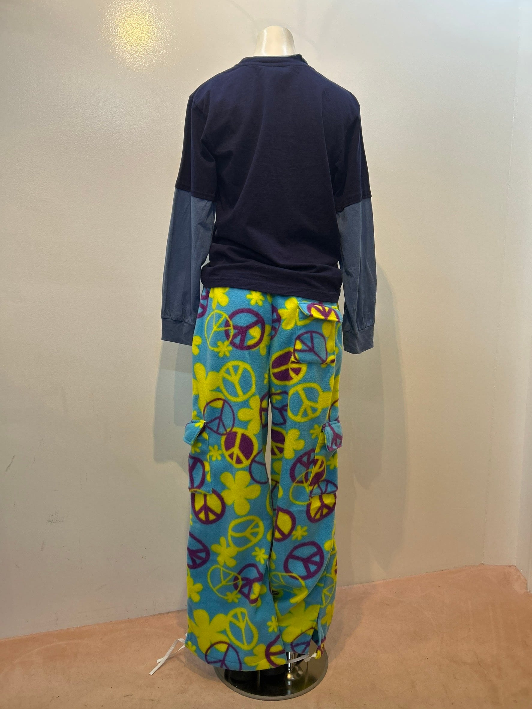 素材: fleece サイズ: ウエスト幅36.5cm(紐で調節可能) ヒップ幅50.5cm 股上22cm 股下74cm わたり幅33cm 裾幅27cm