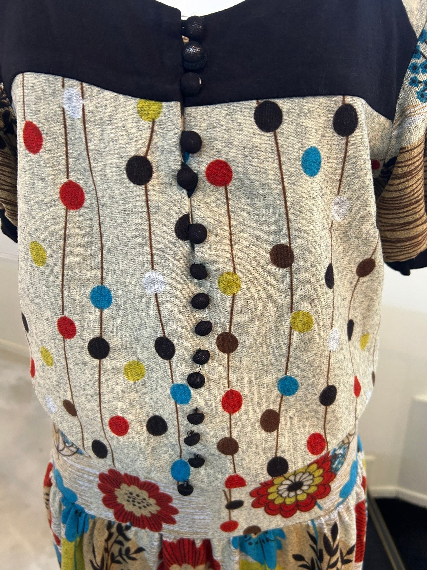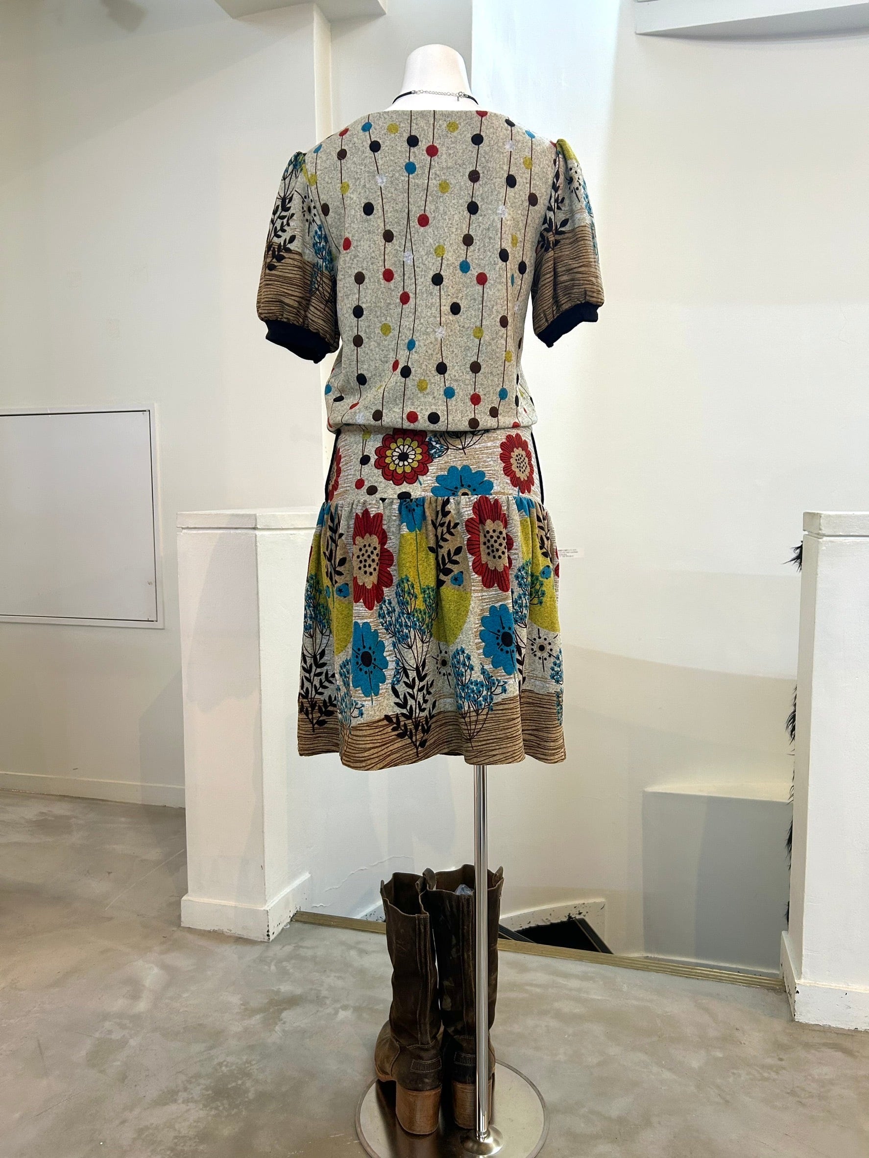 素材: 100%Polyester サイズ: 総丈90cm 肩幅36cm 身幅36cm 袖丈24cm ダメージ: 写真15枚目のボタンの生地のダメージがあります