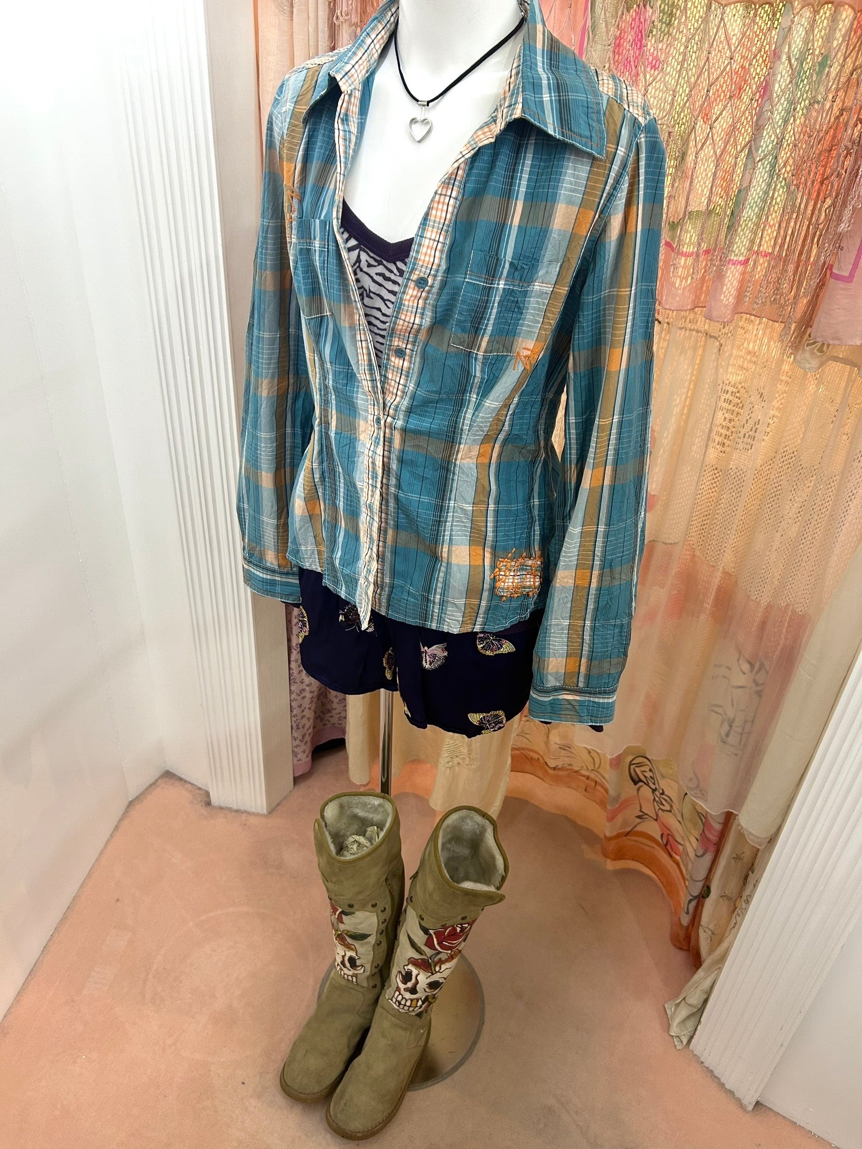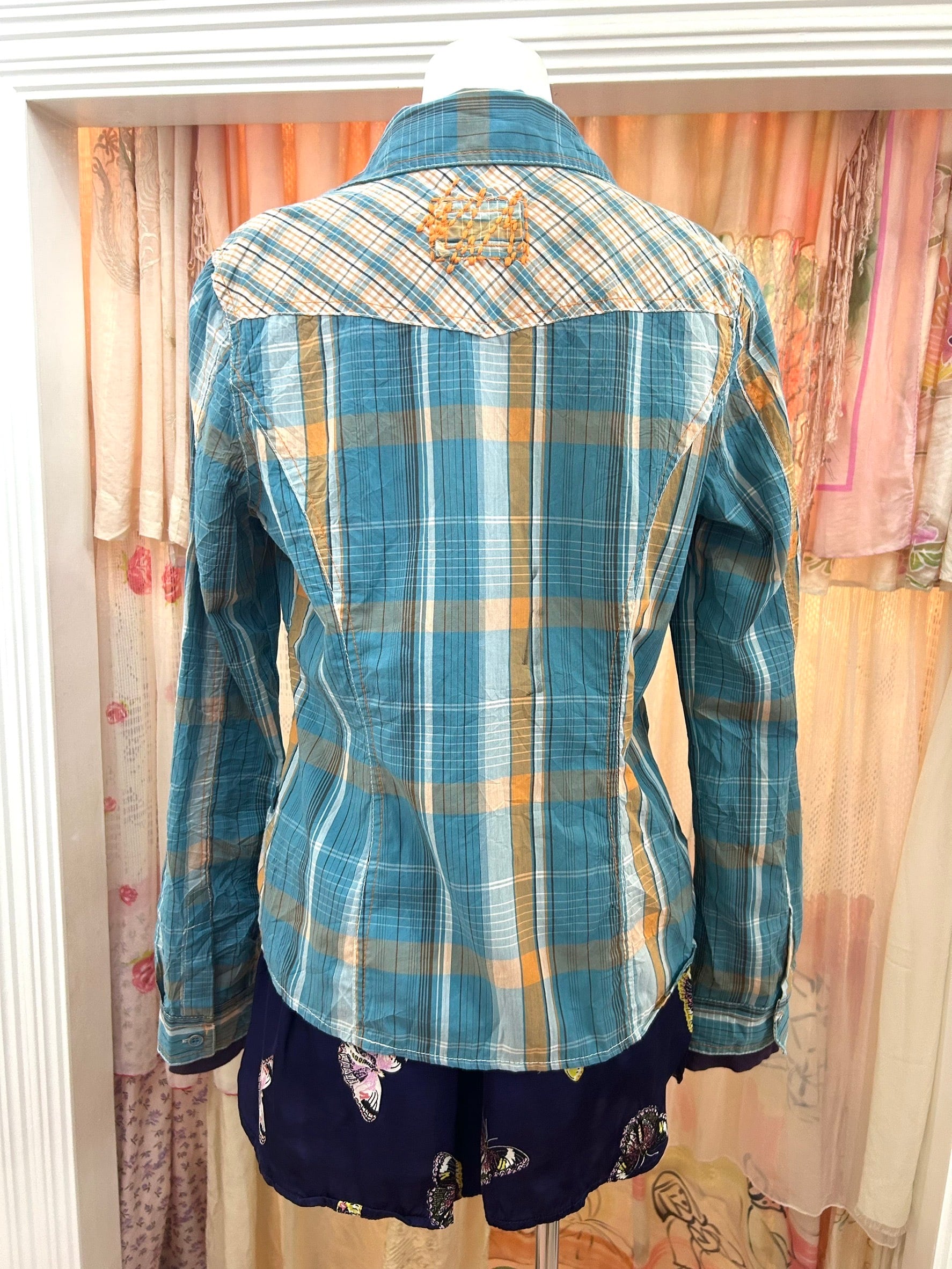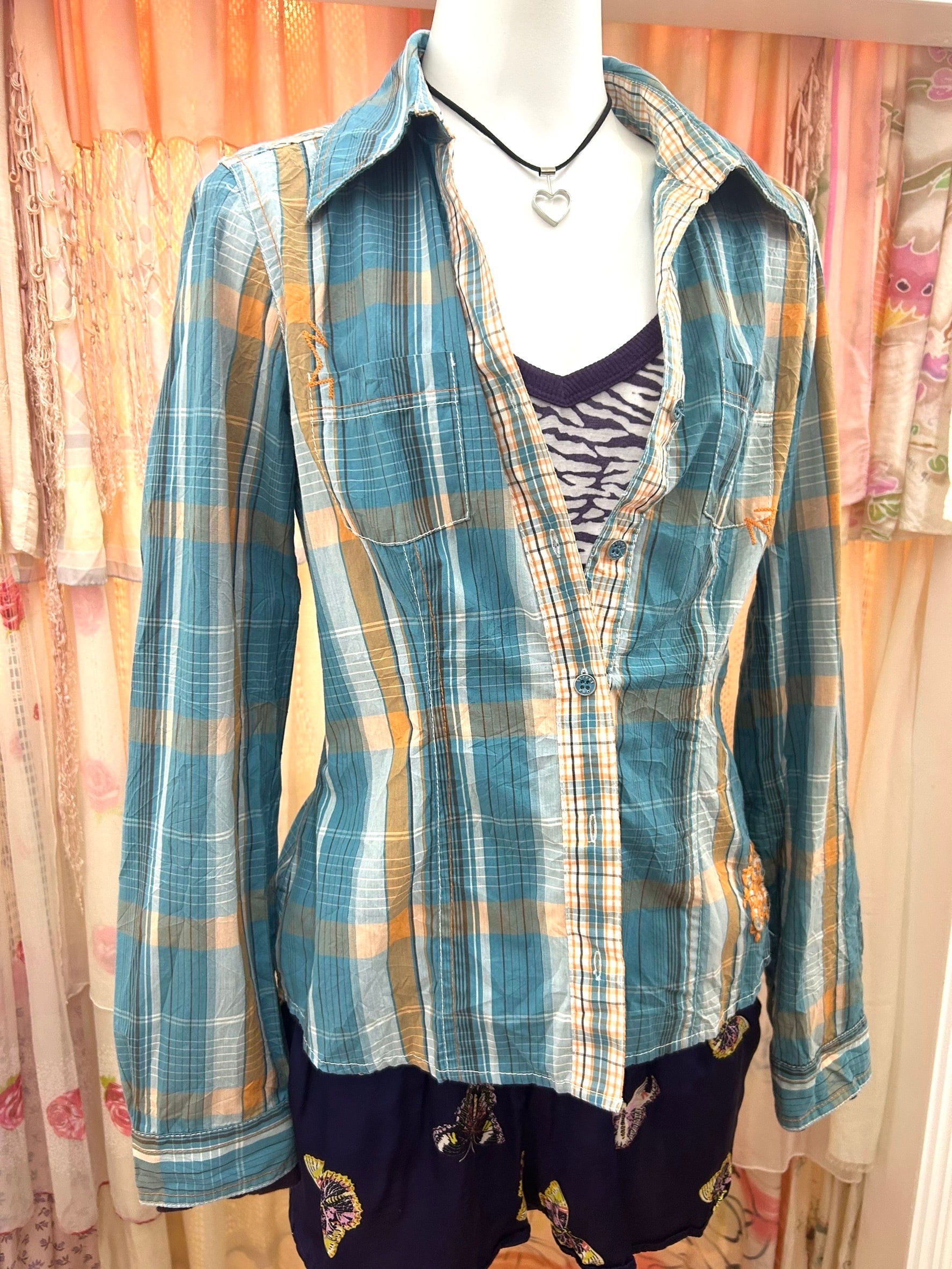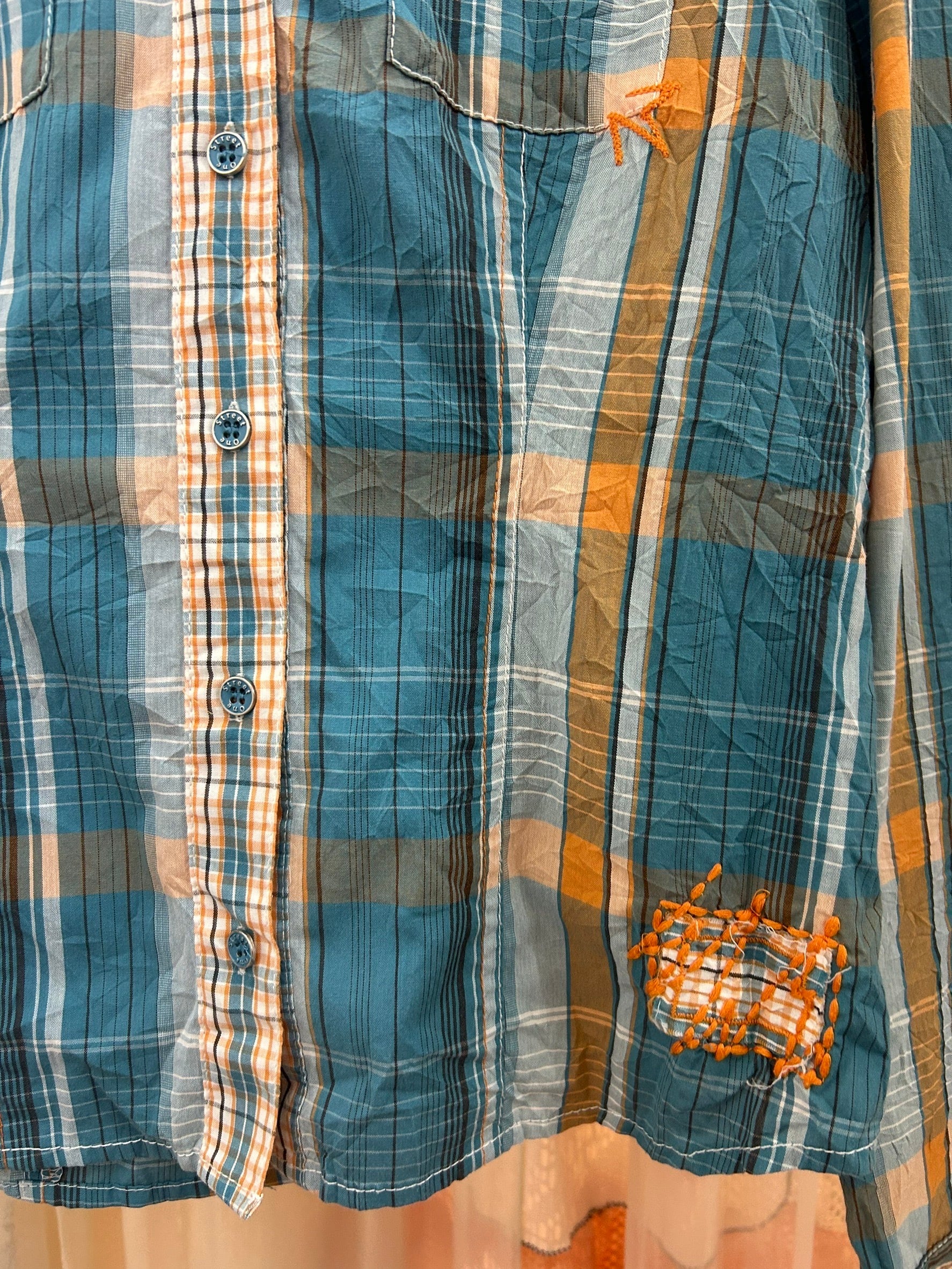 素材: 60%Cotton 40%Polyester サイズ: 着丈58cm 肩幅36.5cm 身幅42.5cm 袖丈61cm ダメージ: 写真20枚目の汚れがあります 全体的にシワ加工が施されています