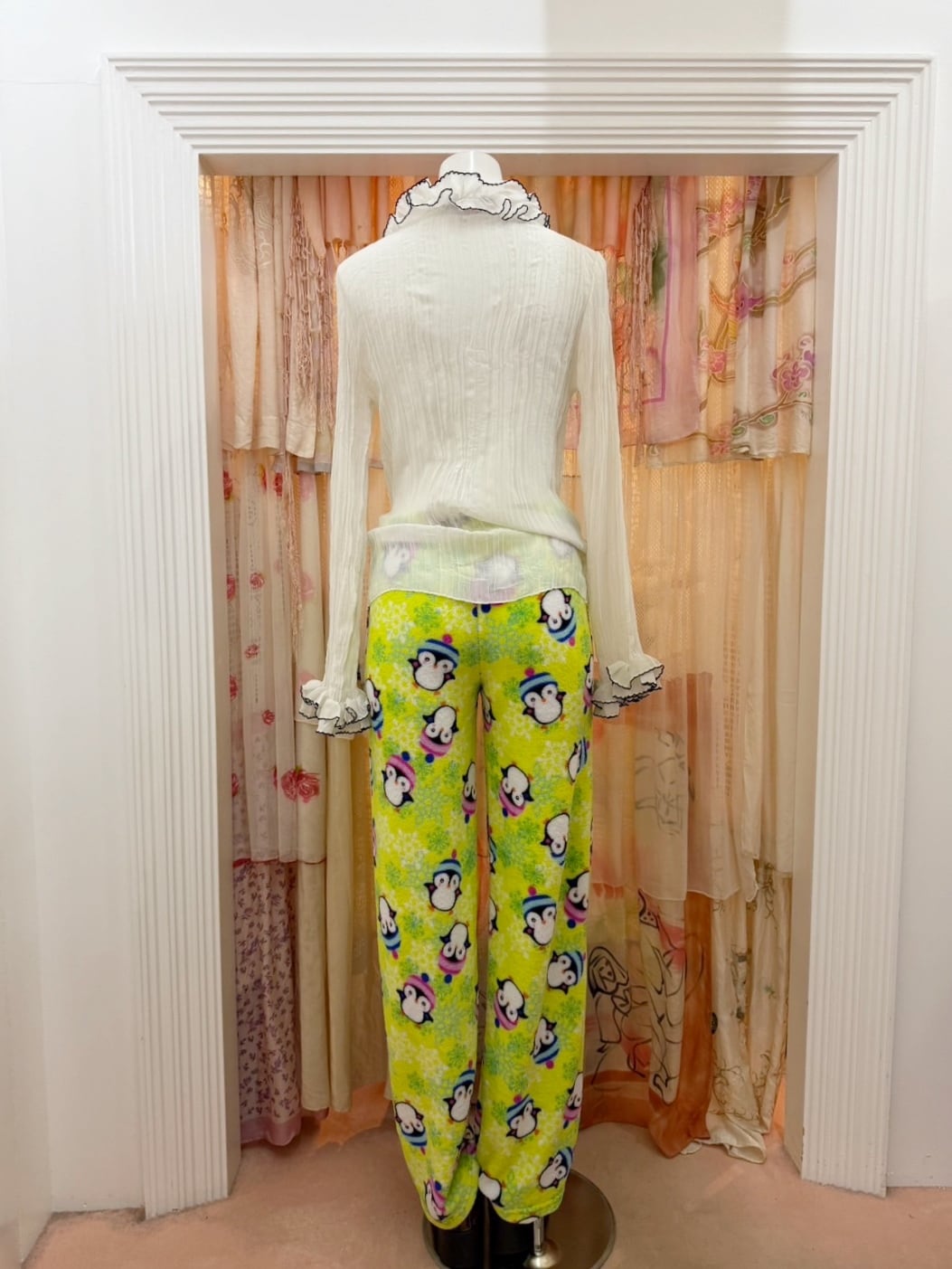 素材: 100%Polyester サイズ: XS(表記) ウエスト幅35cm ヒップ幅42.5cm 股上28cm 股下73cm わたり26cm 裾幅26cm