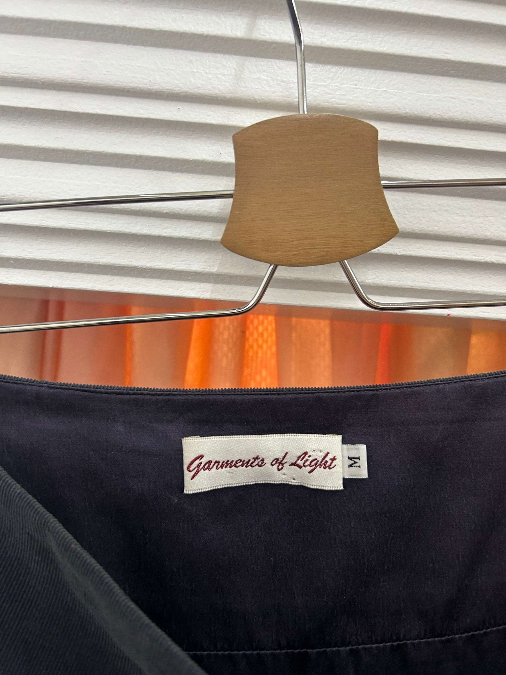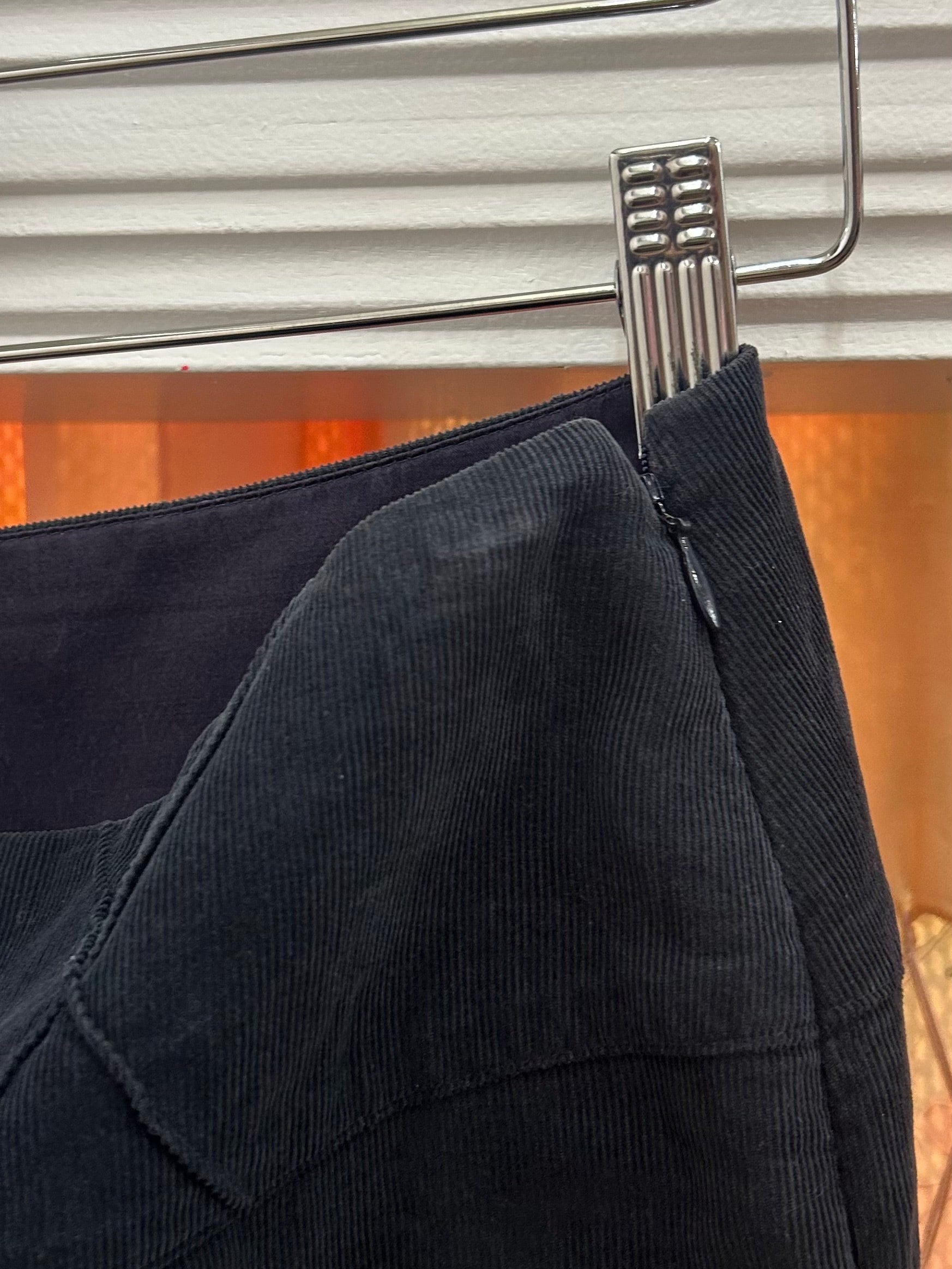 素材: Corduroy(表記なし) サイズ: ウエスト幅36.5cm 総丈79cm ダメージ: 写真17〜19枚目の汚れ、20枚目のお直し跡があります。 黒に近い暗めの紺のような色味です。