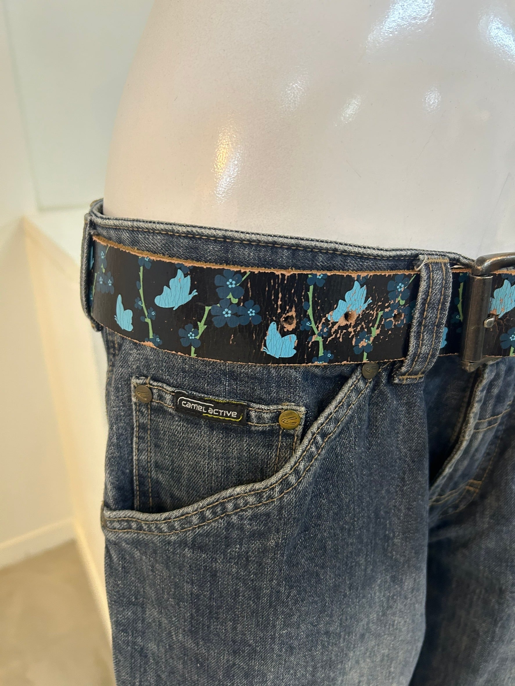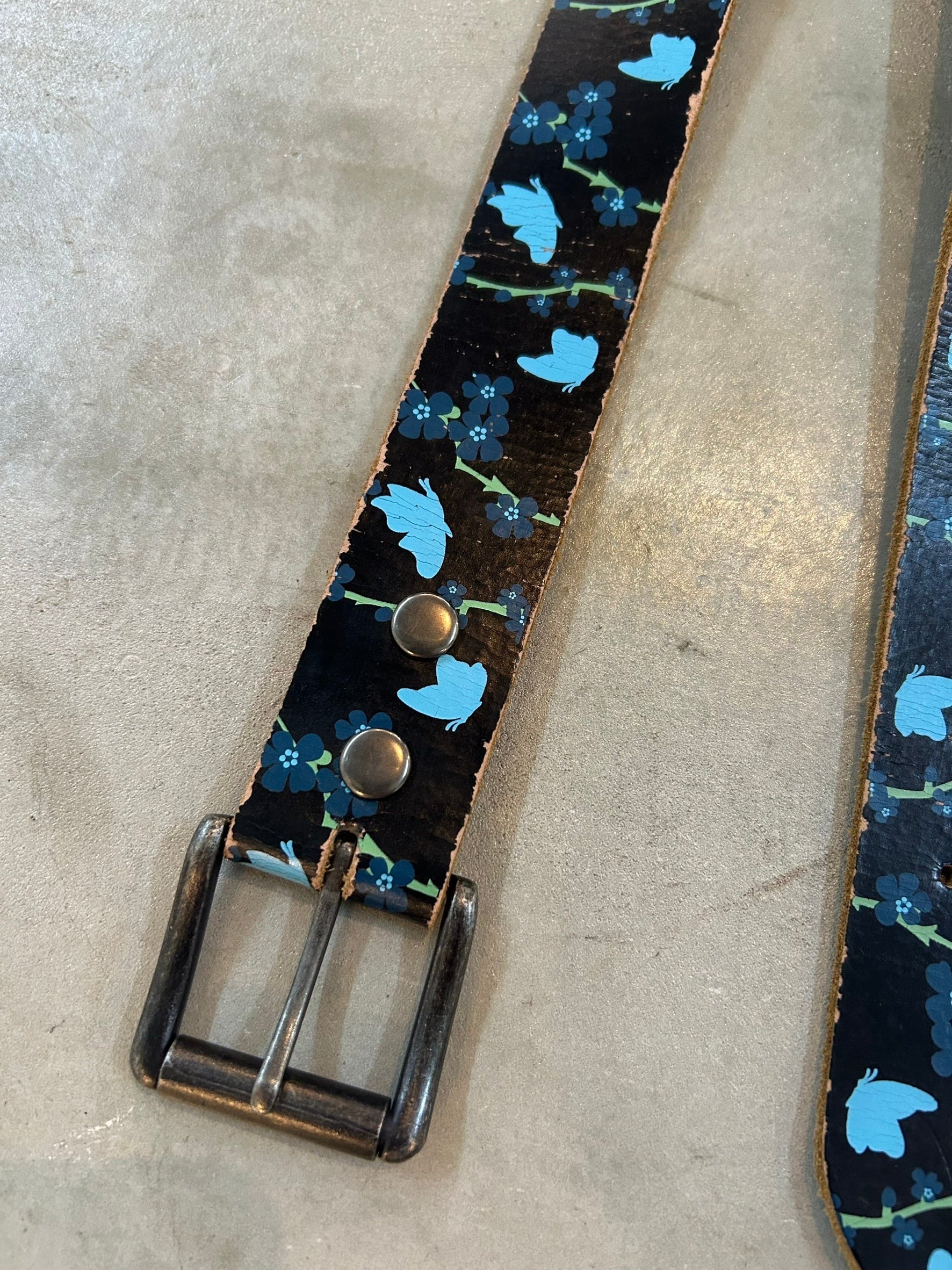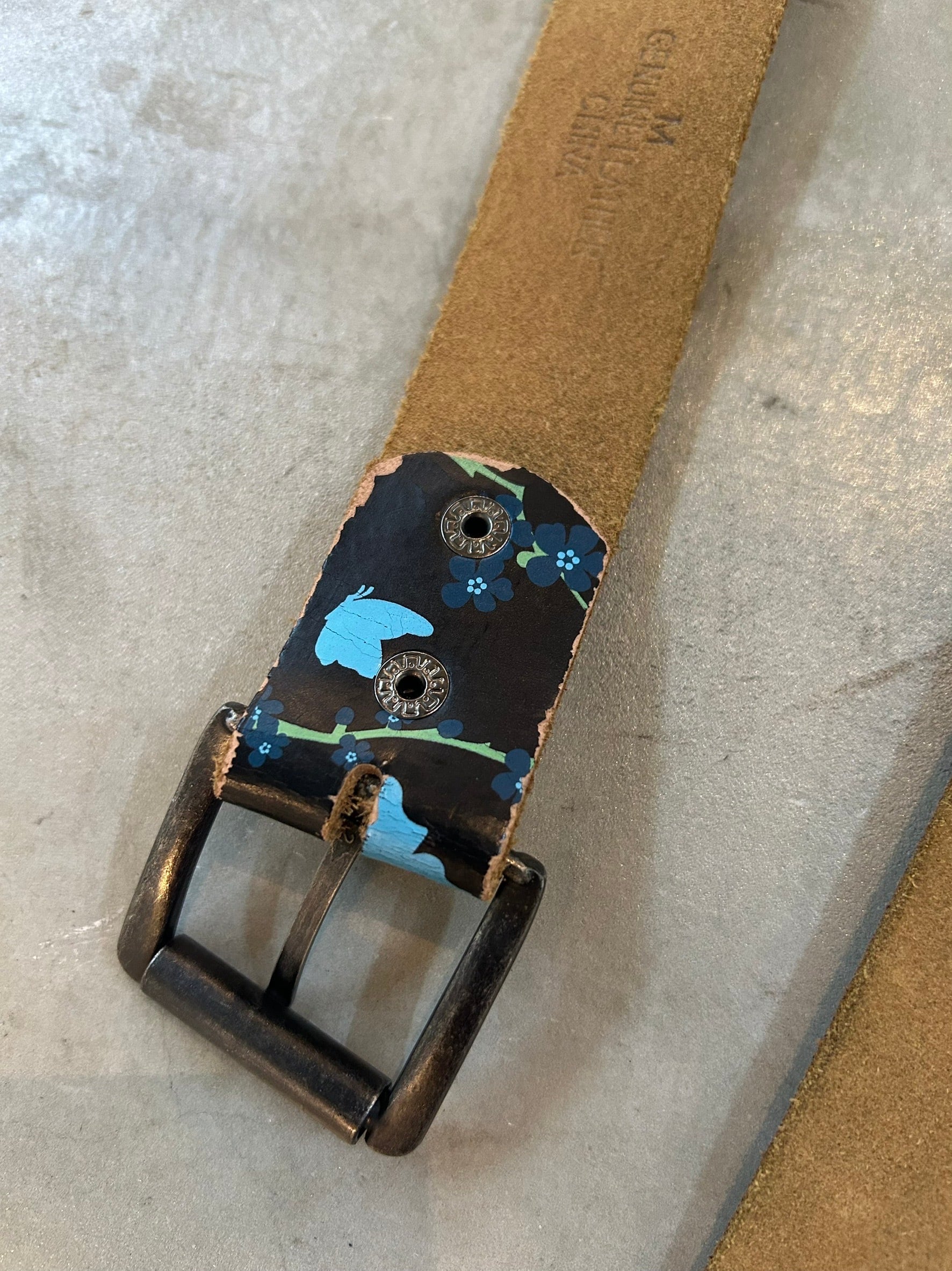 素材: 不明 サイズ: 幅3.8cm 全長98cm バックル4.5×5cm ダメージ: 塗装の剥がれがあります。写真11〜18枚目をご確認ください。