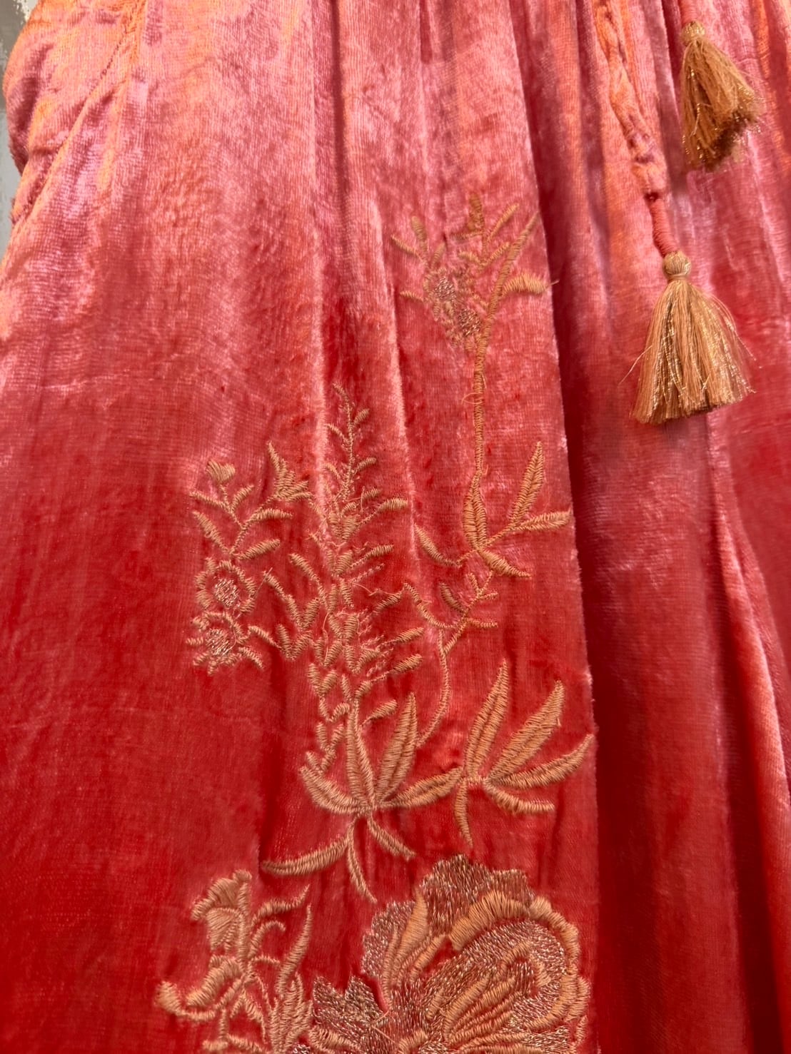素材: 100%Polyester 100%Metallic(刺繍) サイズ: S(表記) ウエスト幅31cm ヒップ幅47cm 股上33cm 股下58cm わたり幅32cm 裾幅13cm ダメージ: 写真17〜19枚目のような刺繍のほつれやしわがあります。