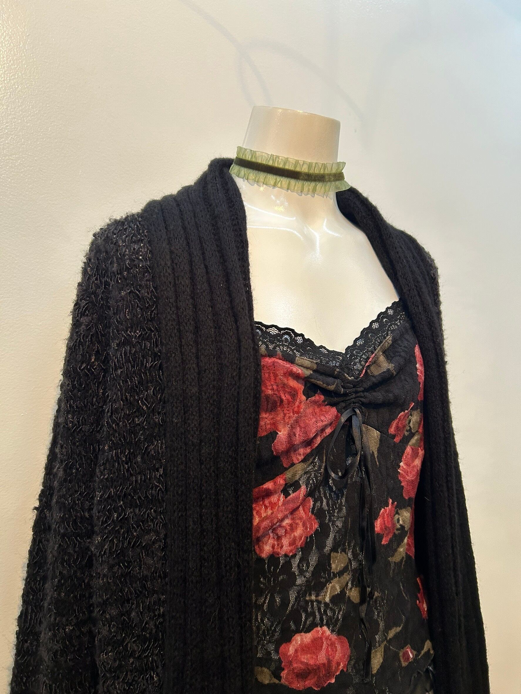 素材: 37%Acrylic 33%Polyester 30%Wool サイズ: XL(表記) 着丈81cm 肩幅41cm 身幅58cm 袖丈73cm