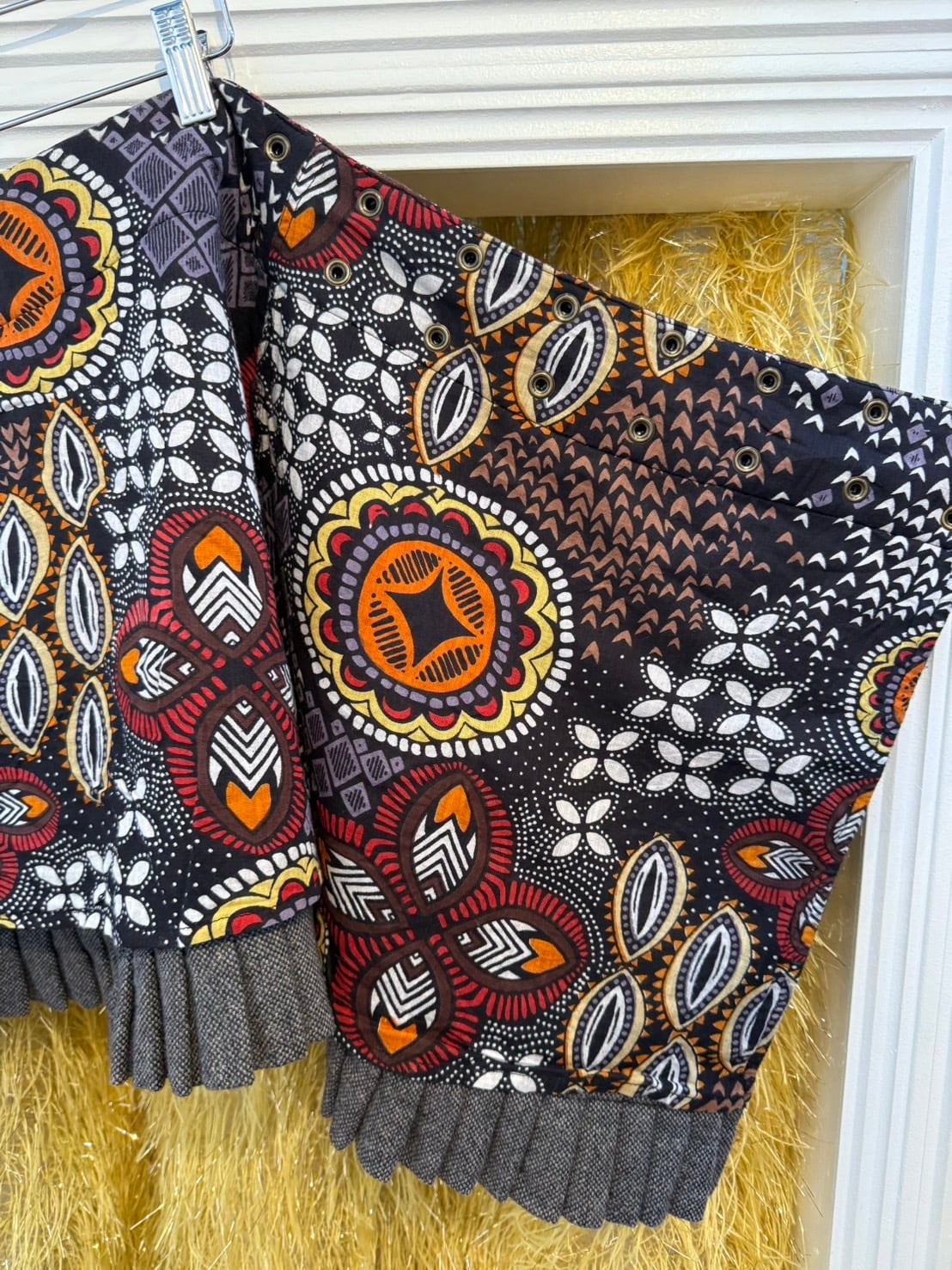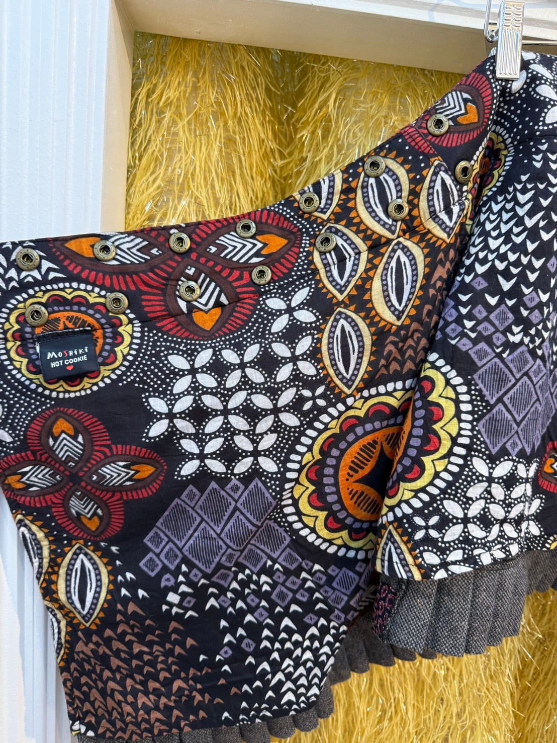 素材: 90%Cotton 10%Spandex サイズ: ウエスト幅34〜55cm(ボタンで開けられるデザインでウエスト幅を調節できます) ヒップ幅47.5cm 丈43cm ダメージ: 写真15枚目のような裏側に毛玉があります。
