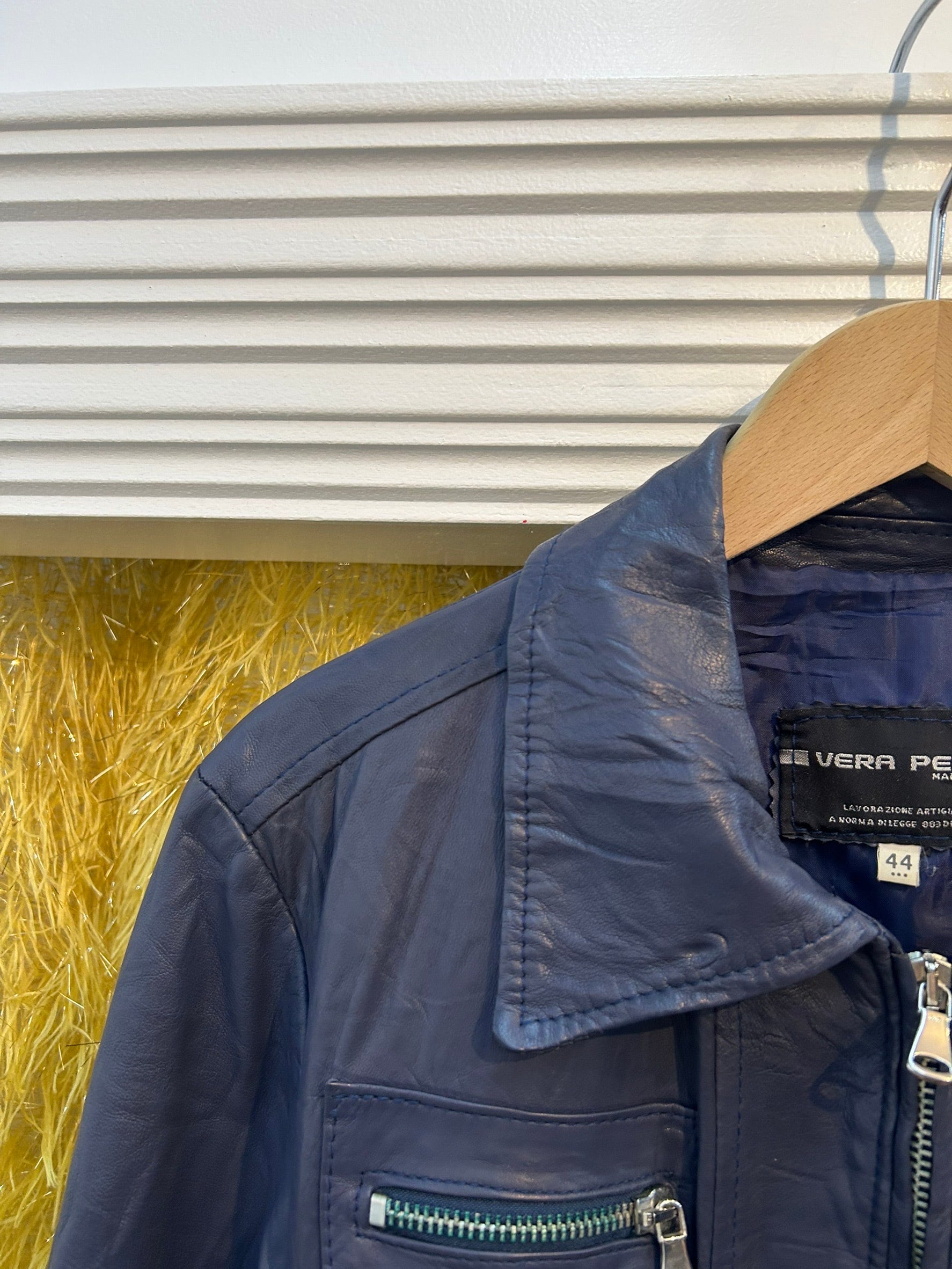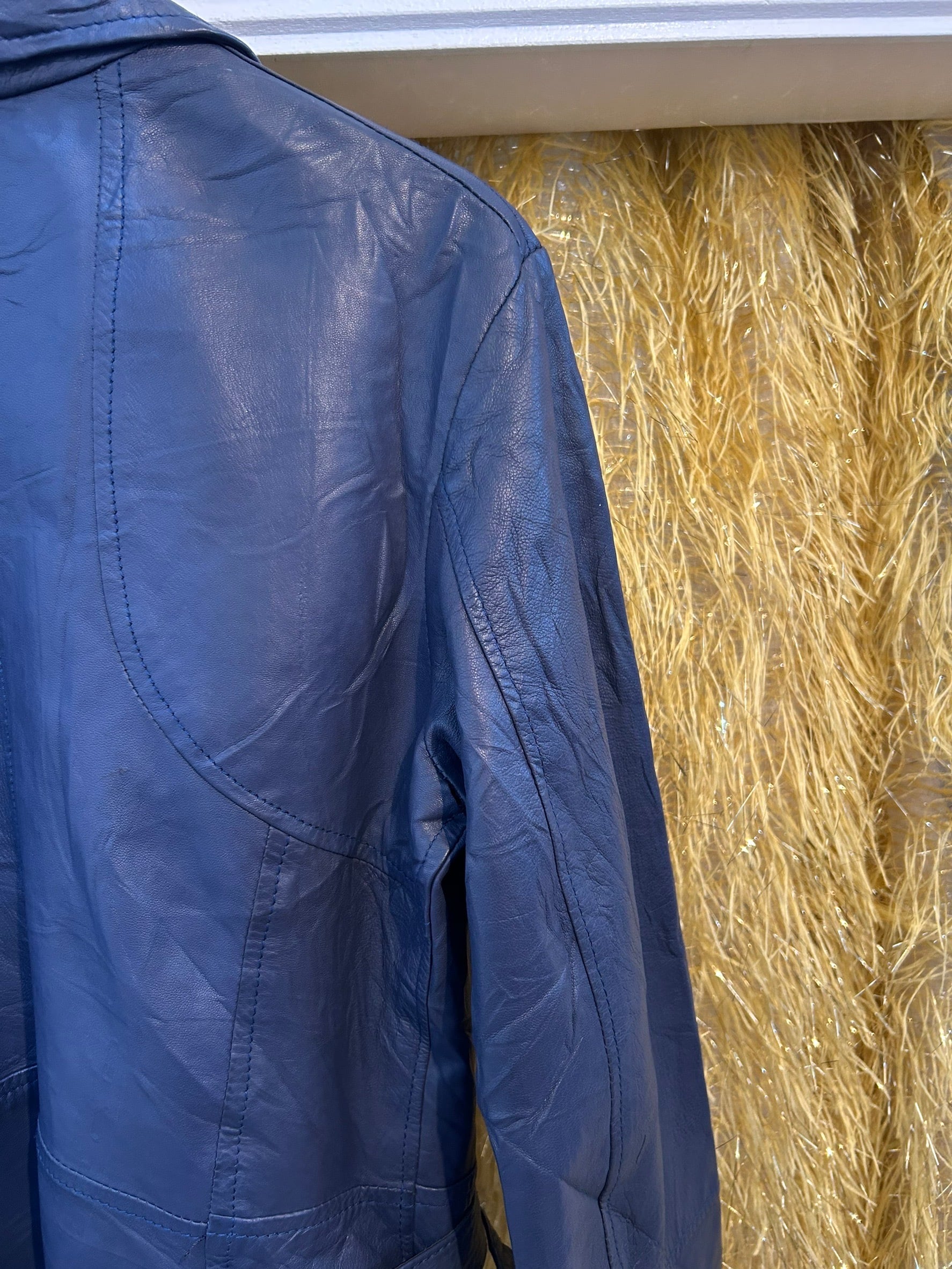 素材: Leather サイズ: 44(表記) 着丈53cm 肩幅41cm 身幅41.5cm 袖丈53.5cm ダメージ: 写真13〜18枚目のシワ、跡、19.20枚目のジップの変色があります made in ITALY