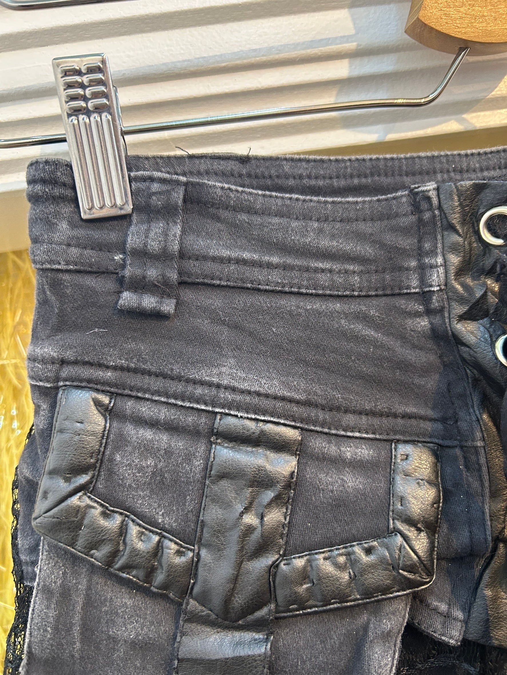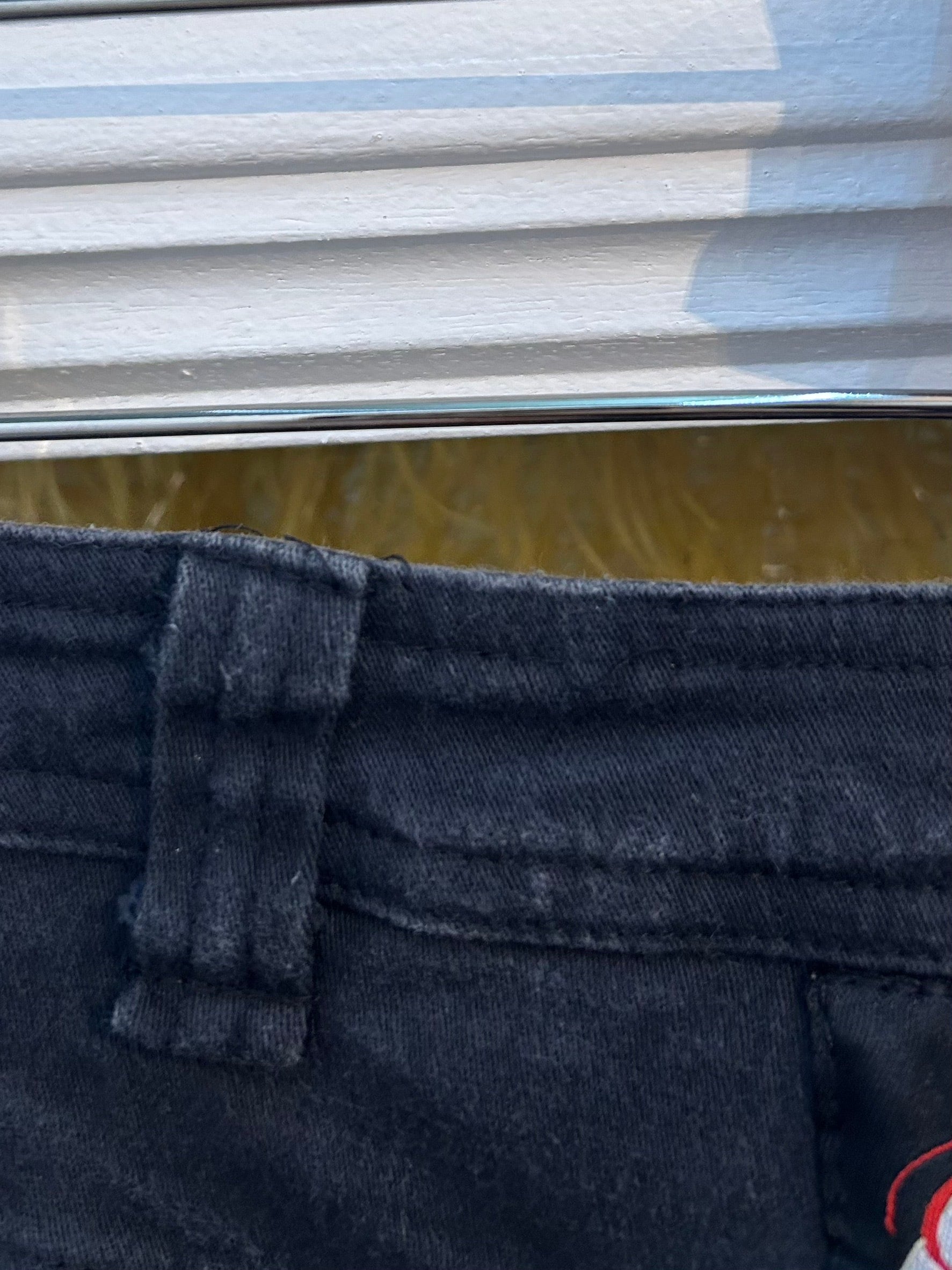 素材: 92%Polyester 8%Spandex サイズ: ウエスト幅34.5cm 総丈37cm ダメージ: 写真18枚目の縫い目のほつれ、19.20枚目の生地のダメージがあります