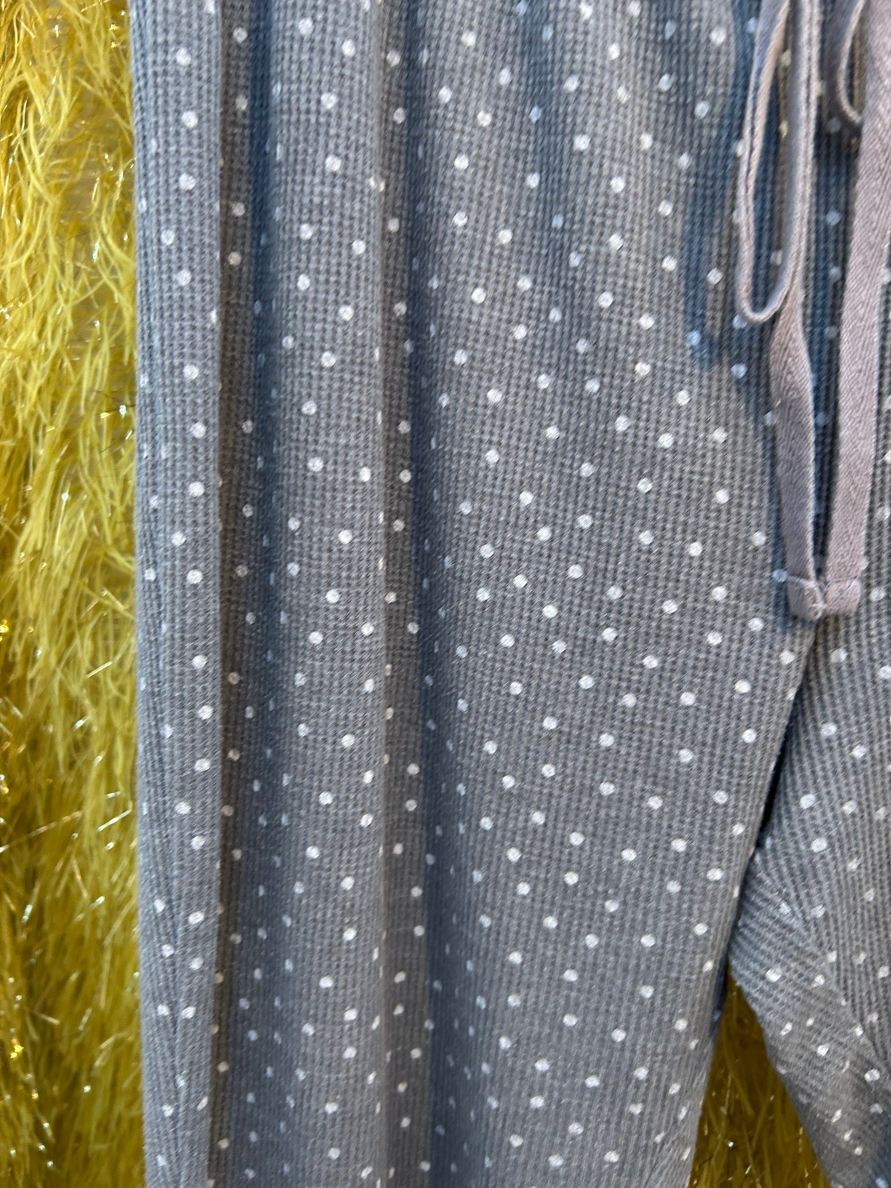 素材: 60%Cotton 40%Polyester サイズ: ウエスト幅40cm(紐で調節可能) ヒップ幅58cm 股上30cm 股下75cm わたり幅32cm 裾幅14cm ダメージ: 写真19.20枚目のような取りきれない毛羽立ちがあります