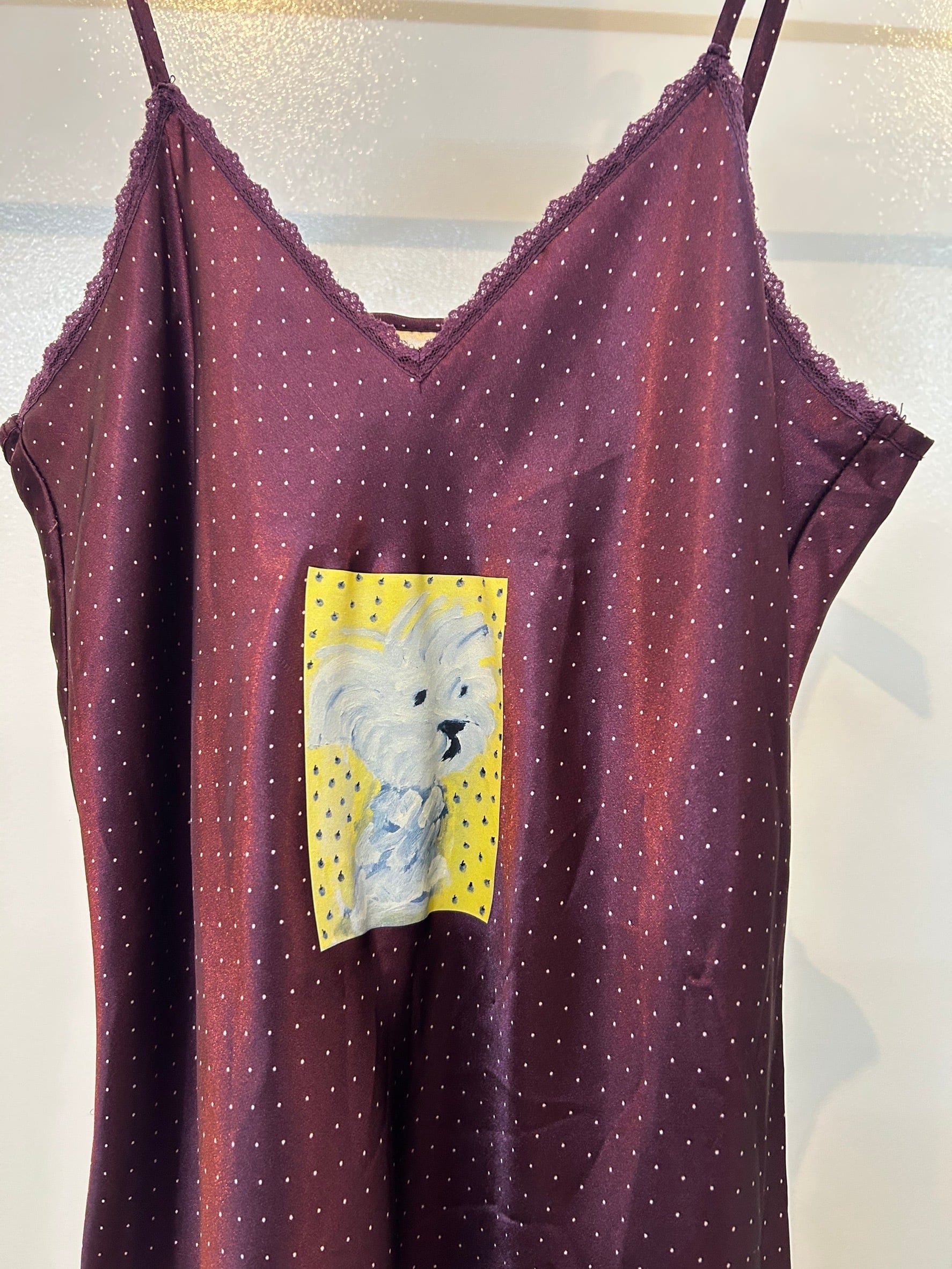 素材: 100%Polyester サイズ: 前身頃80cm 後ろ身頃73cm 身幅42cm 肩紐18〜54cm ダメージ: 写真16〜19枚目の生地のダメージがあります。 安藤智展「FANCY♡」に合わせて制作したシリーズ。安藤智の油彩作品とitimiのコラボです。