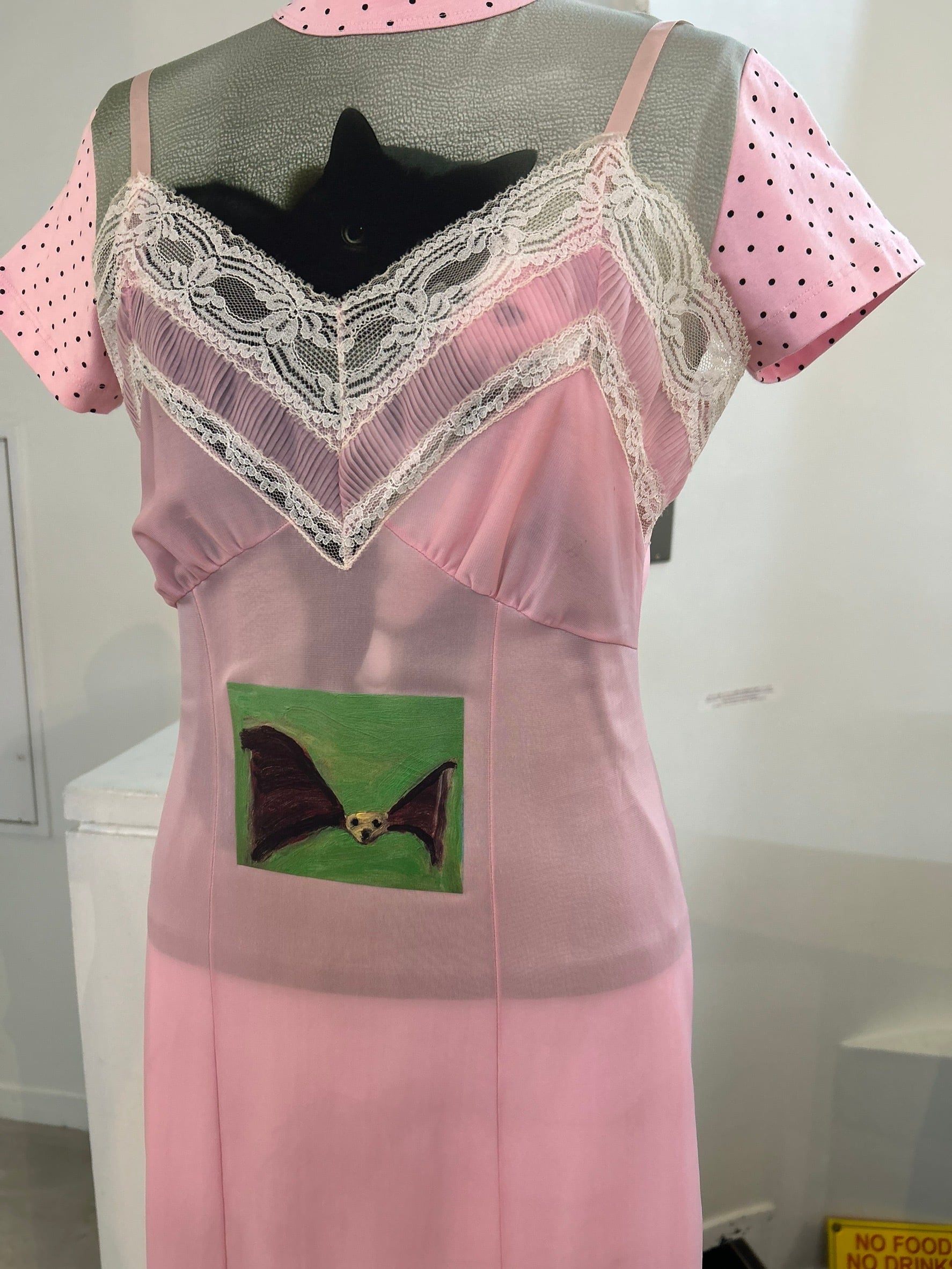 素材: Polyester(表記なし) サイズ: 総丈102cm 身幅35cm 肩紐27cm ダメージ: 写真16.17枚目の汚れがあります。 安藤智展「FANCY♡」に合わせて制作したシリーズ。安藤智の油彩作品とitimiのコラボです。