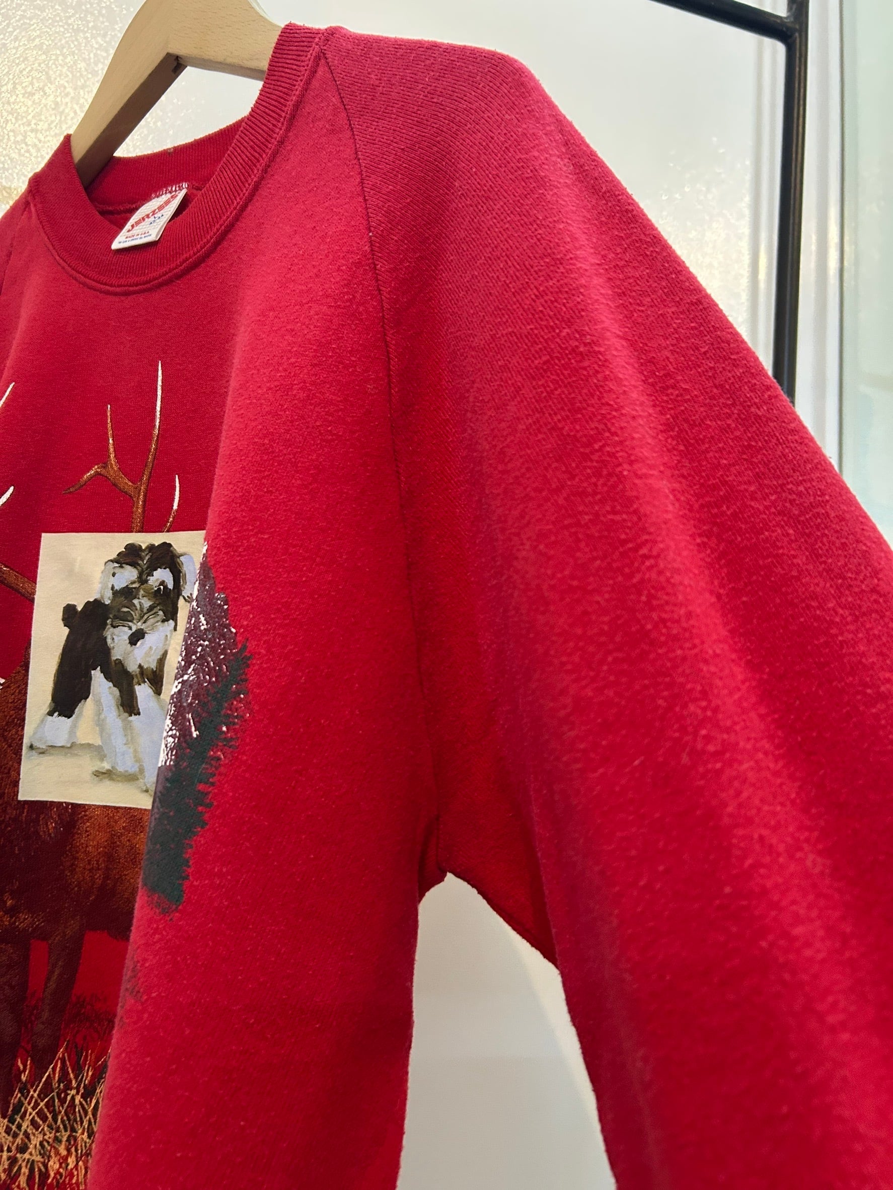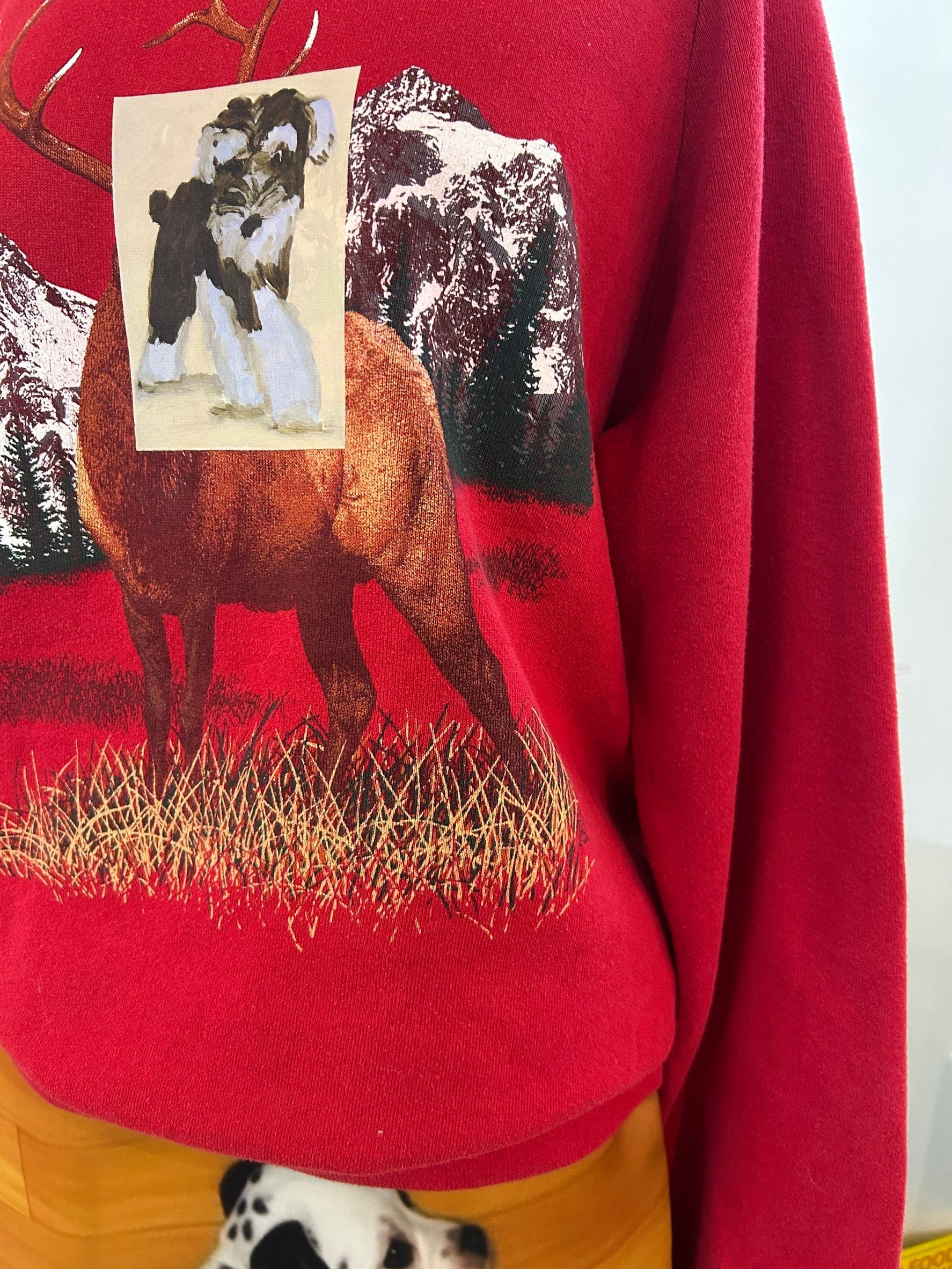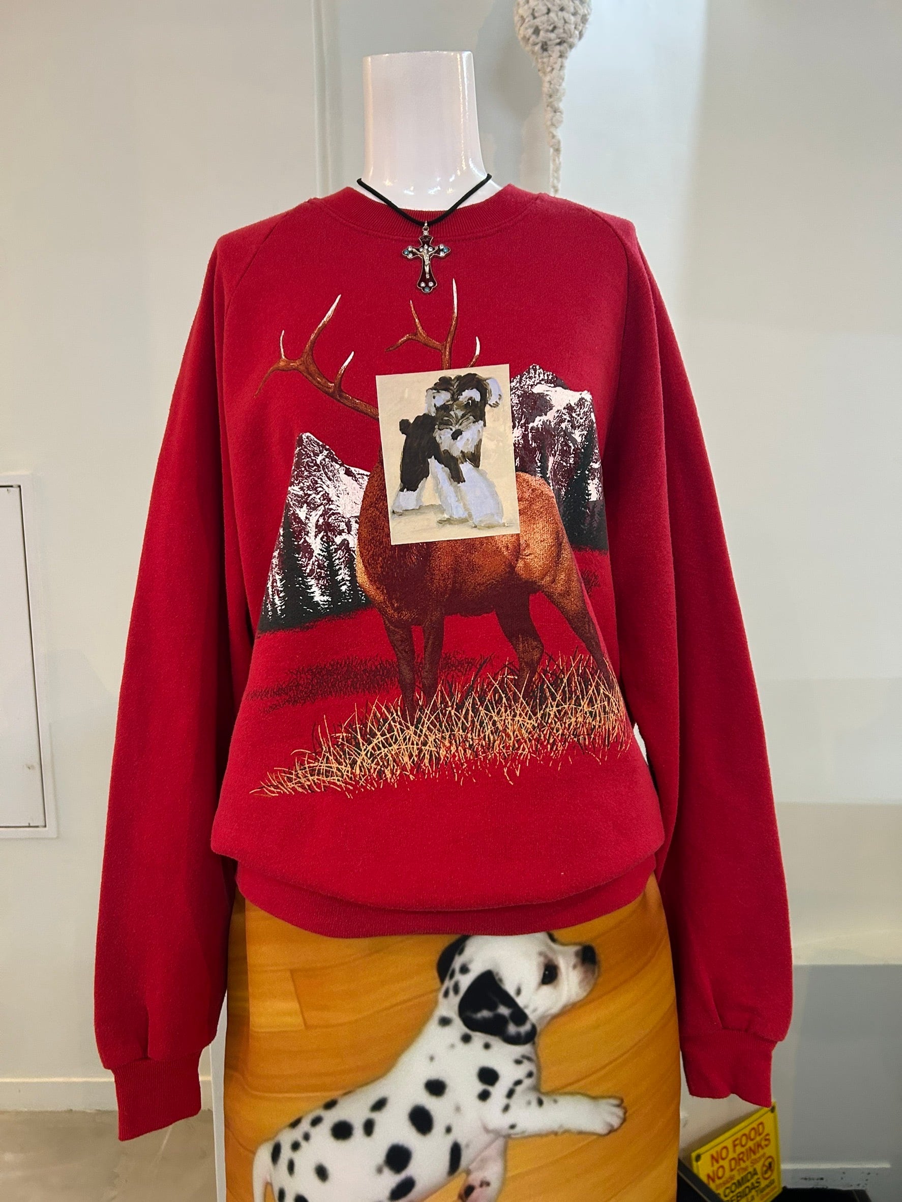 素材: 50%Cotton 50%Polyester サイズ: 着丈68cm 身幅54cm 裄丈93cm ダメージ: 写真18〜20枚目の取りきれない細かな毛羽立ちがあります。 安藤智展「FANCY♡」に合わせて制作したシリーズ。安藤智の油彩作品とitimiのコラボです。