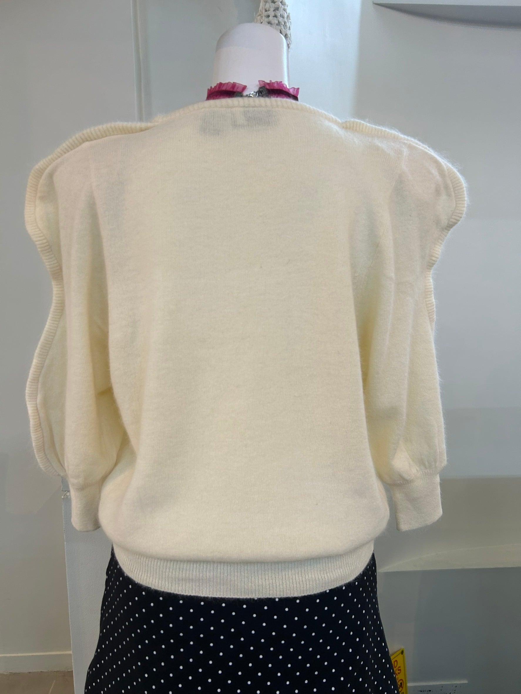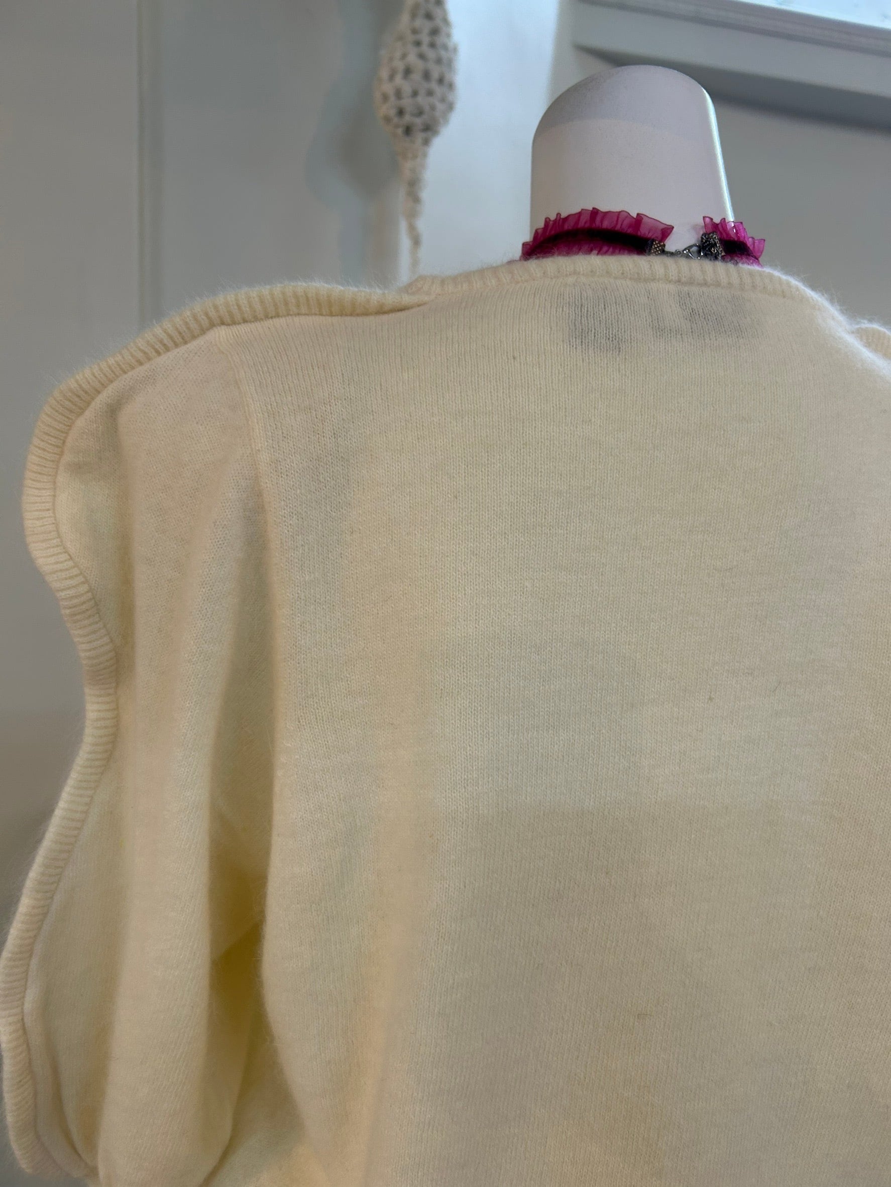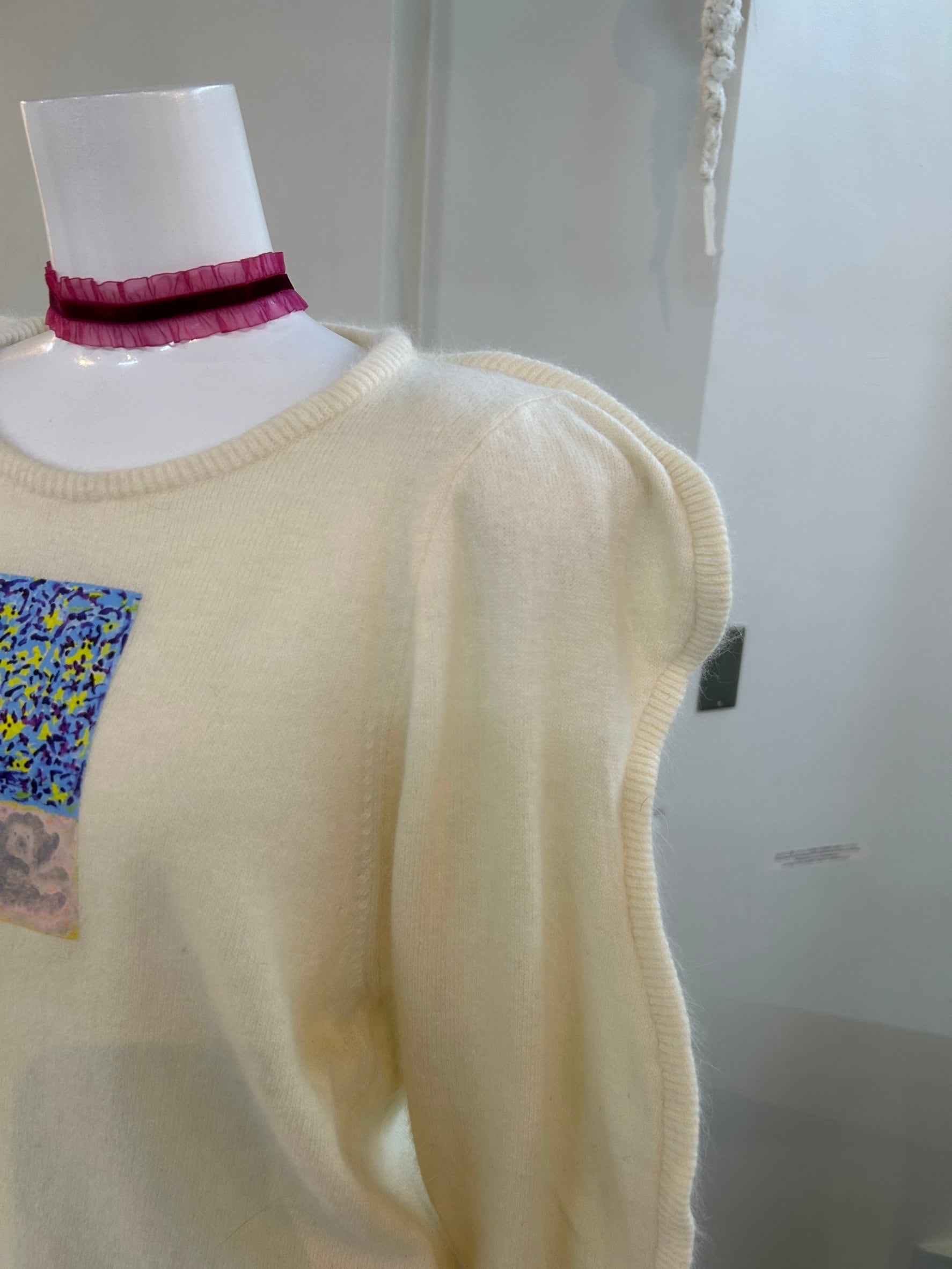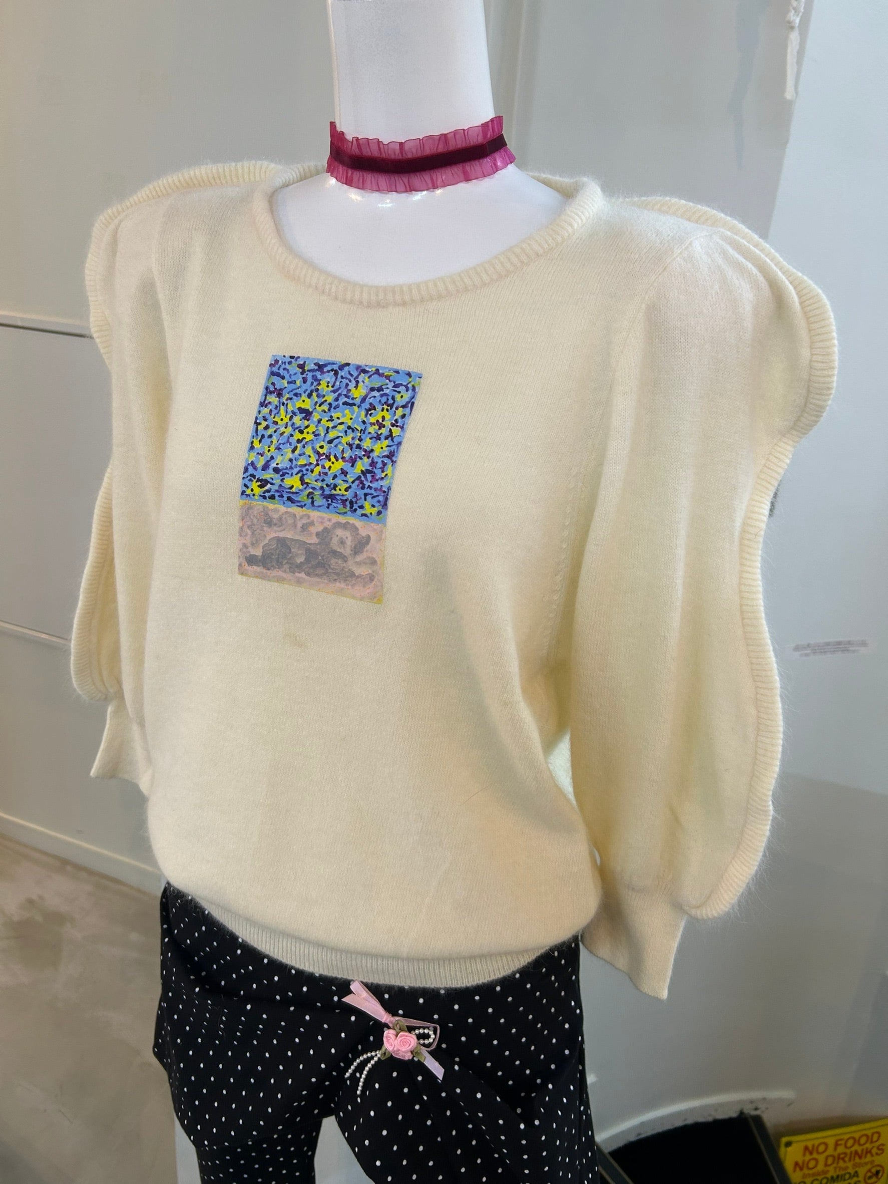 素材: 40%Angora 40%Wool 20%Nylon サイズ: 着丈58cm 肩幅35cm 身幅49cm 袖丈44.5cm ダメージ: 写真15〜17枚目の汚れ、18枚目のお直し跡があります made in ITALY 安藤智展「FANCY♡」に合わせて制作したシリーズ。安藤智の油彩作品とitimiのコラボです。