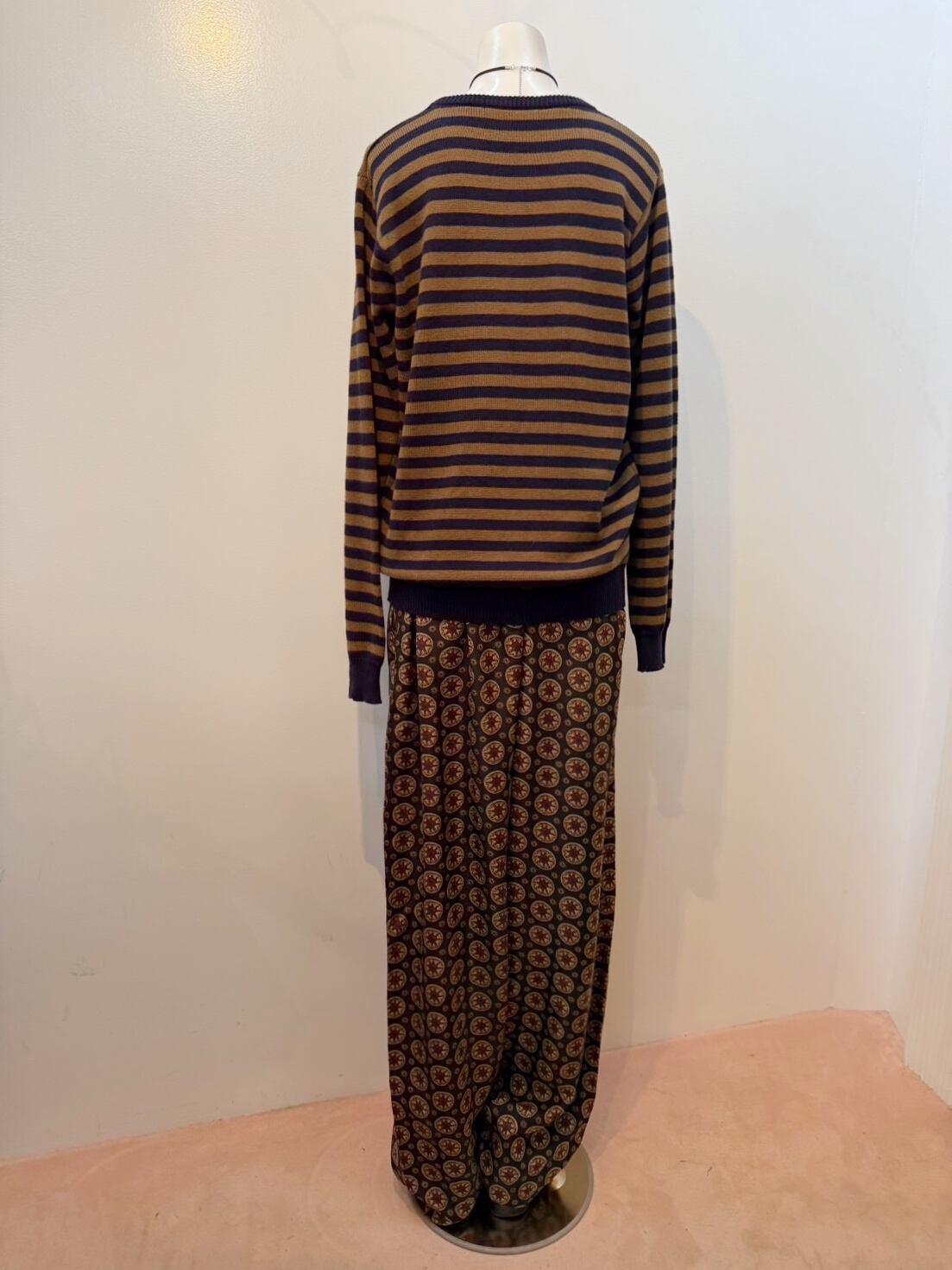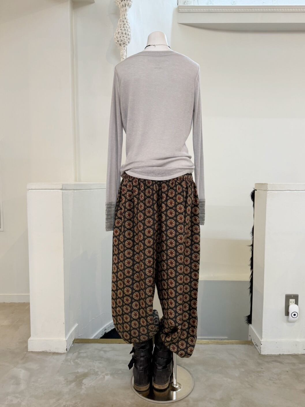 素材: 100%Silk サイズ: L(表記) ウエスト幅41.5cm ヒップ幅50cm 股上36.5cm 股下73cm わたり幅33.5cm 裾幅24.5cm ダメージ: 写真18〜20枚目のような糸のほつれと色褪せている箇所があります。