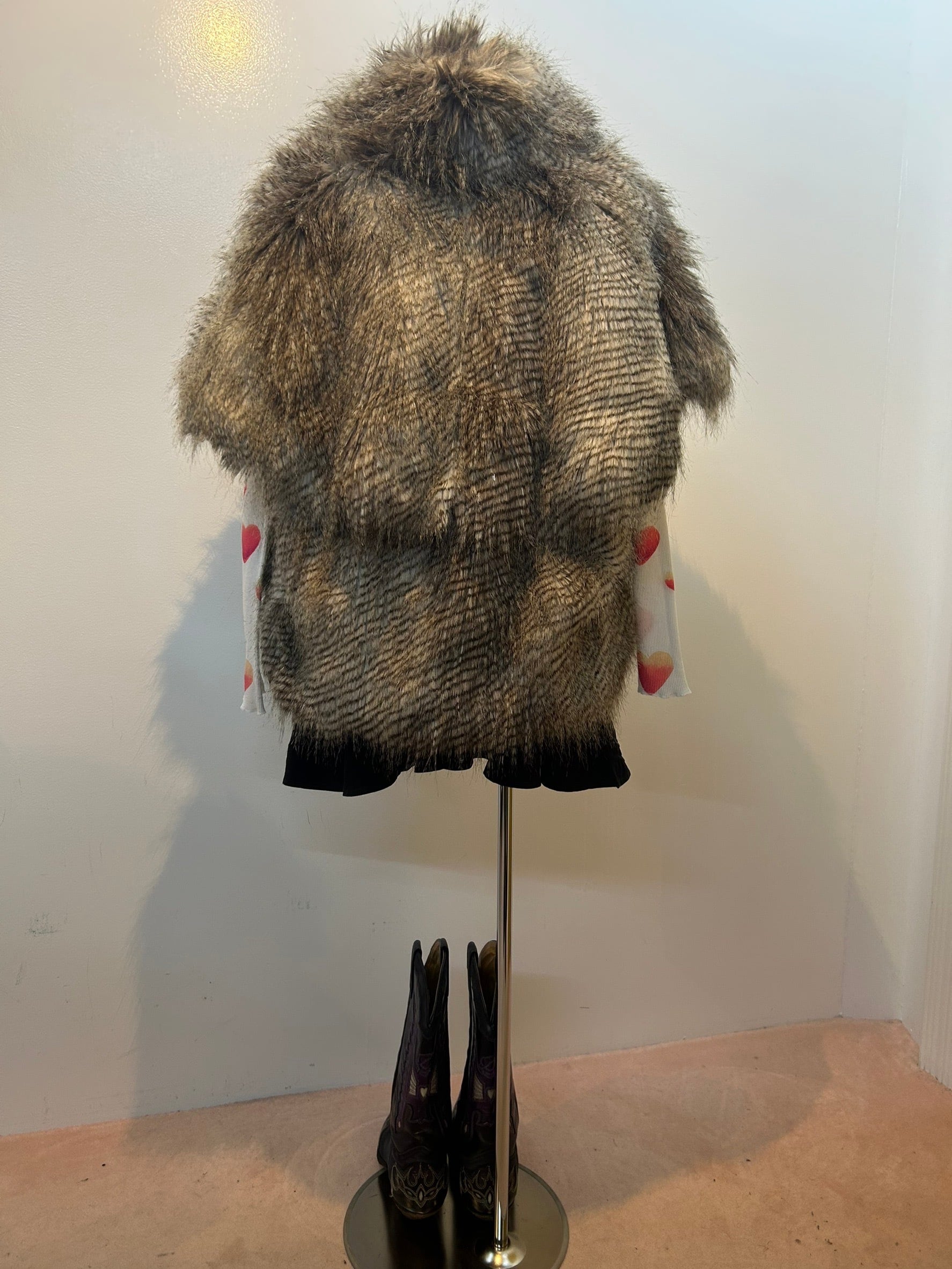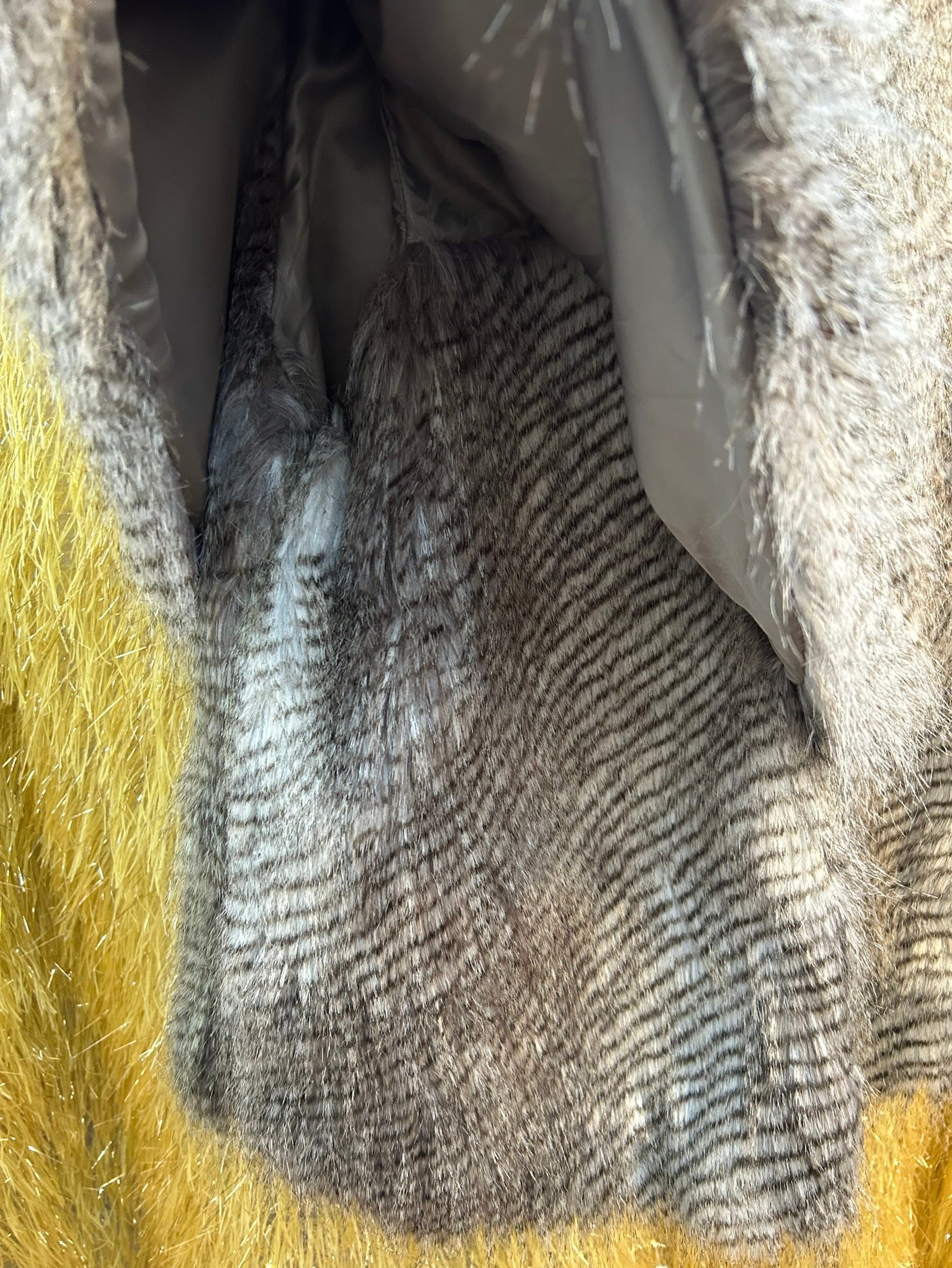 素材: 85%Modacrylic 15%Polyester サイズ: XL(表記) 着丈65cm 身幅66cm ダメージ: 写真20枚目のお直しがあります