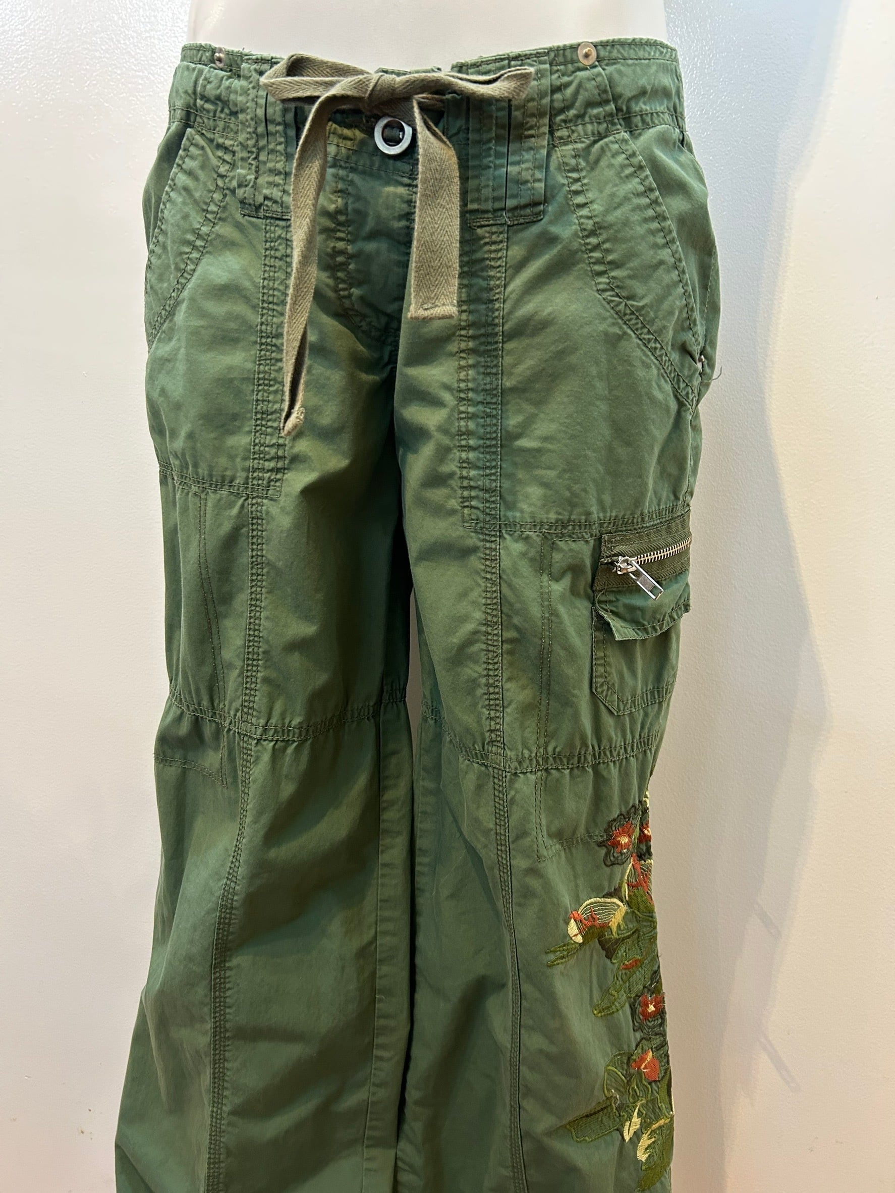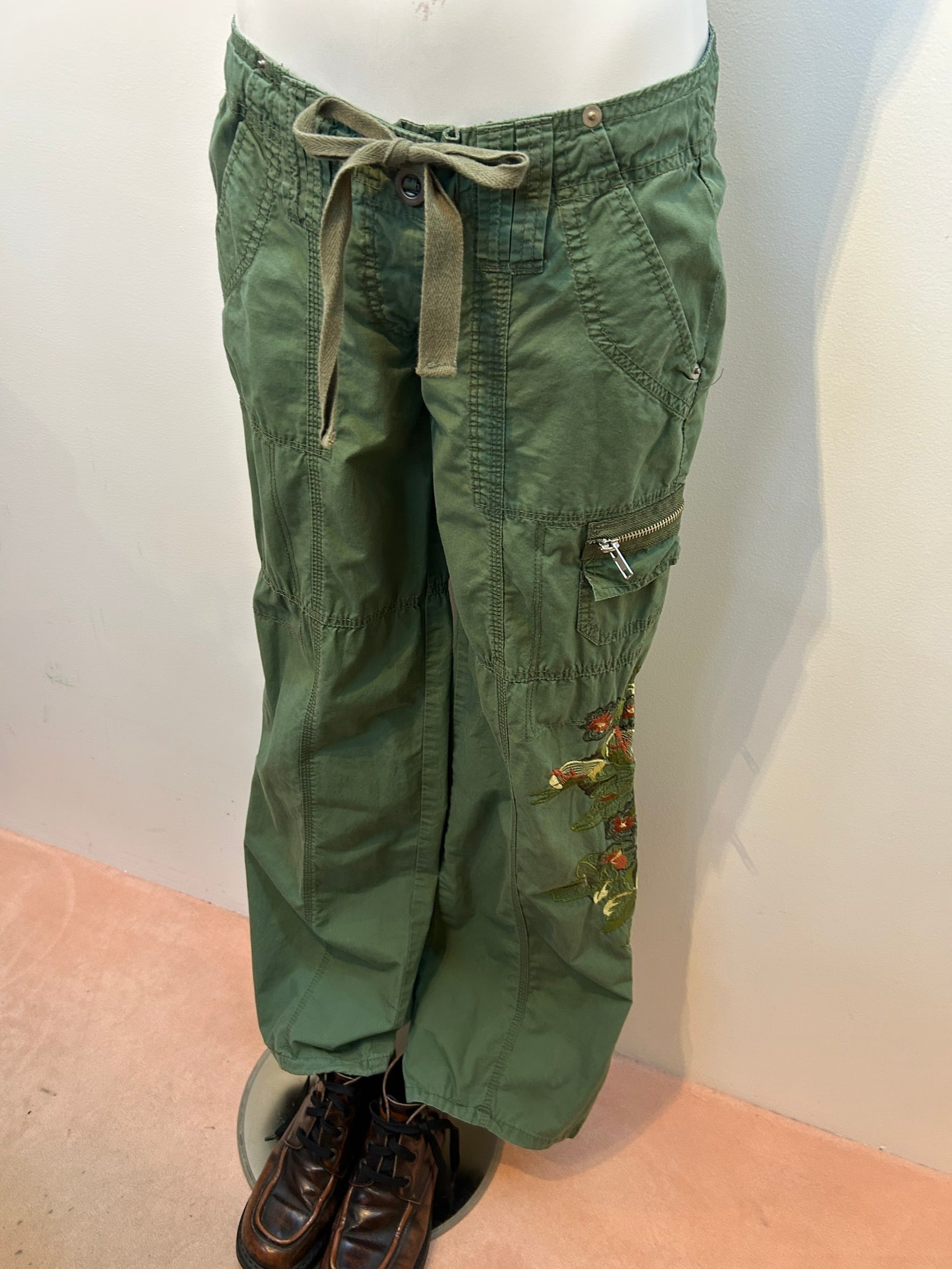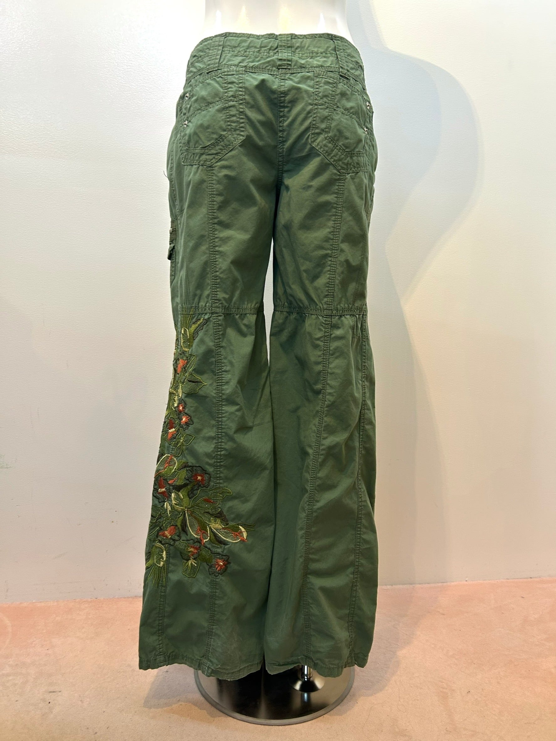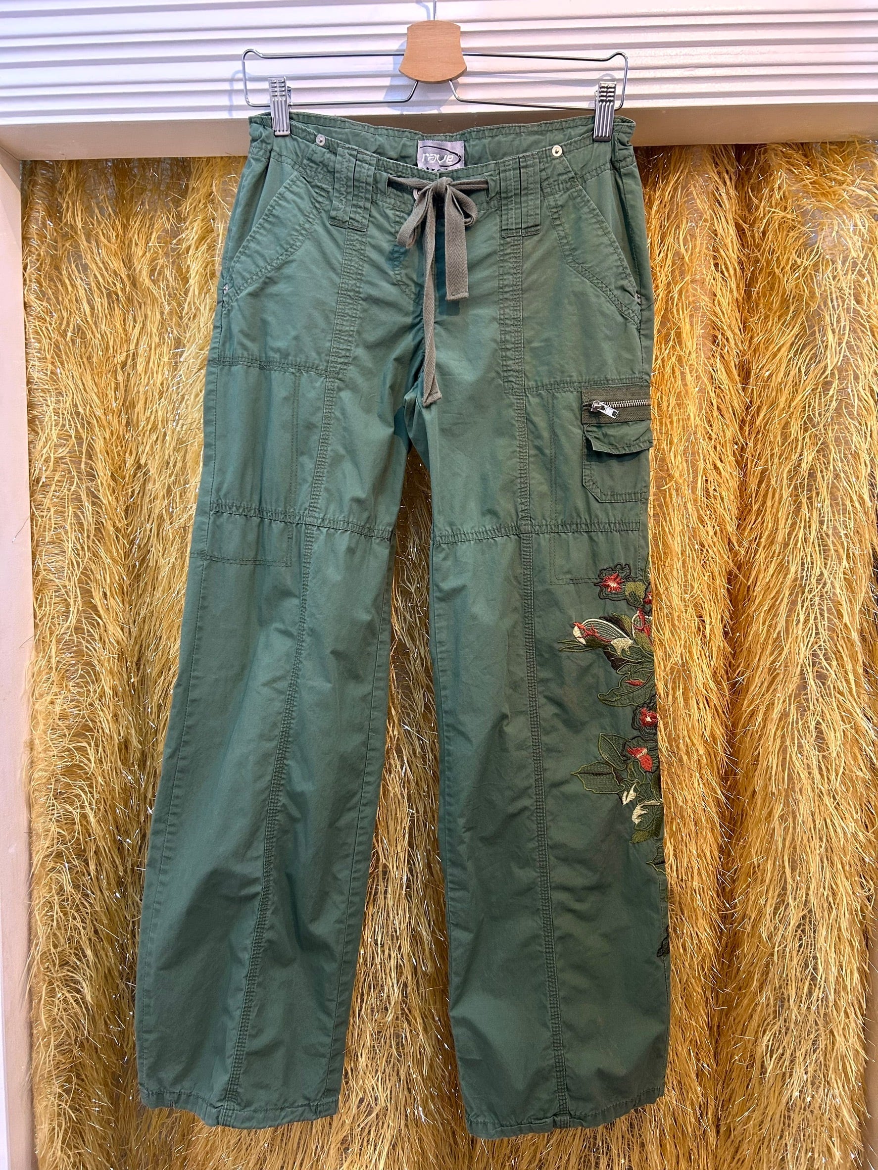 素材: 100%Cotton サイズ: ウエスト幅38cm(紐で調節可能) ヒップ幅49cm 股上21cm 股下78cm ダメージ: 写真14〜17枚目の汚れがあります