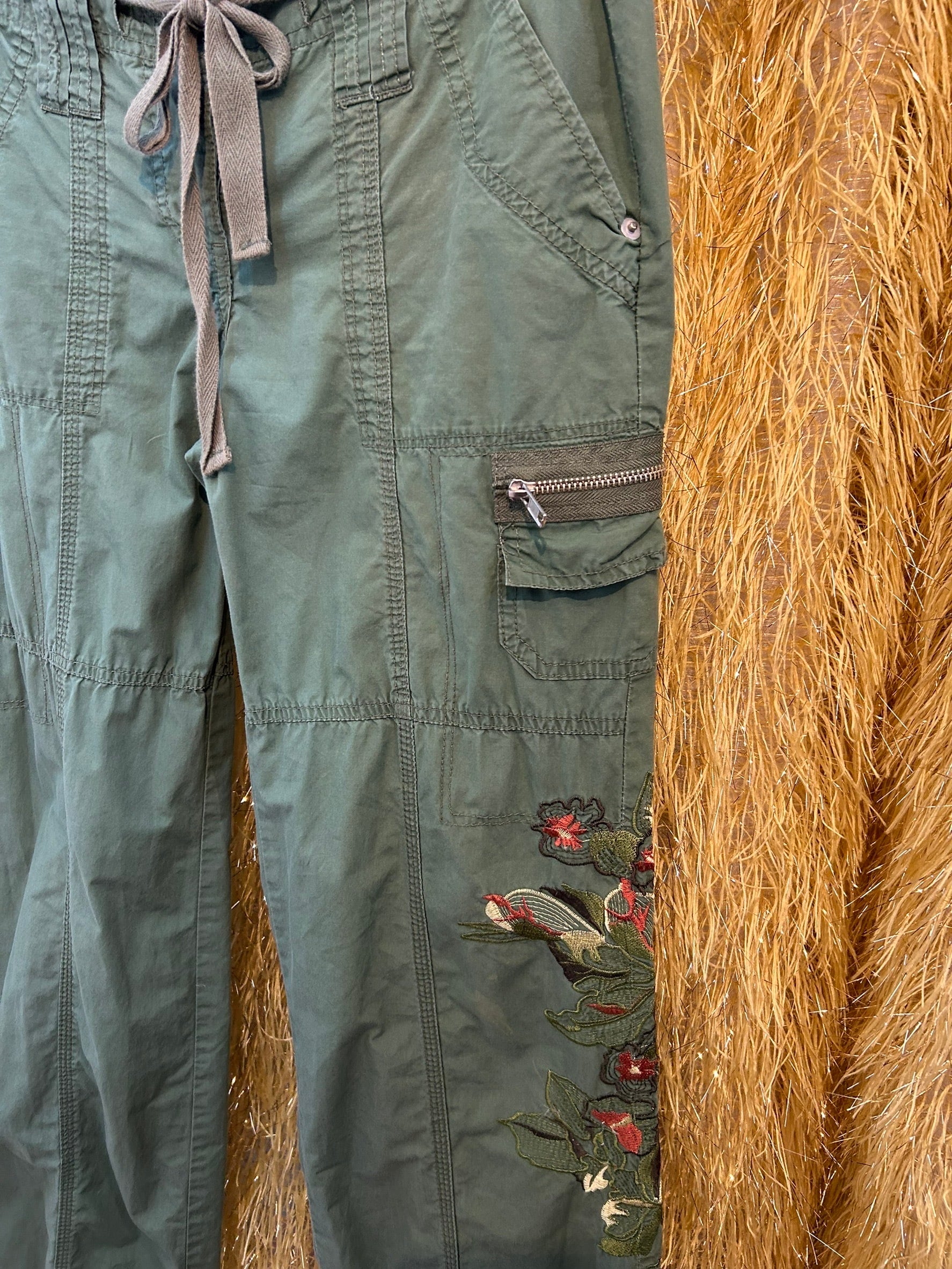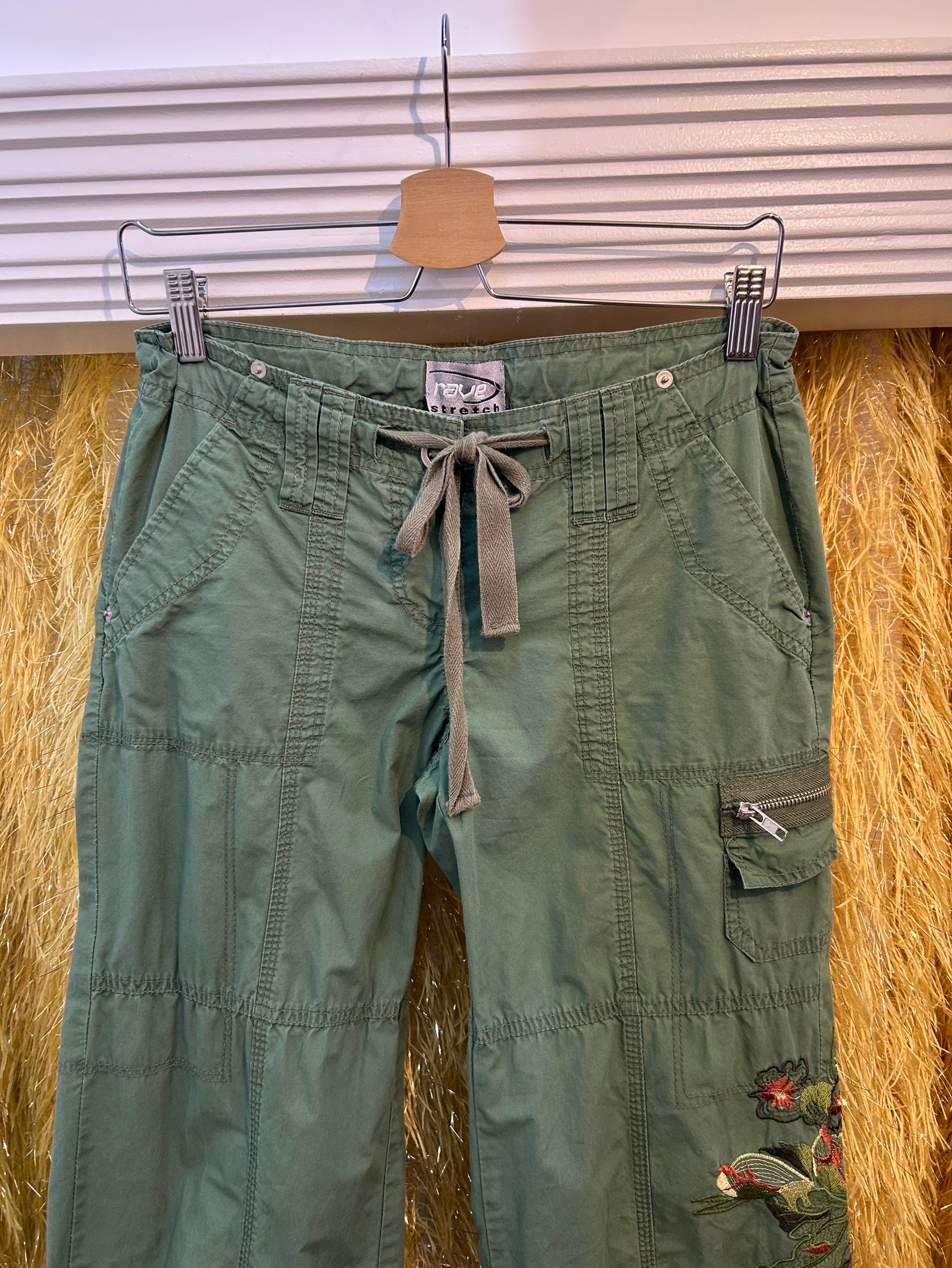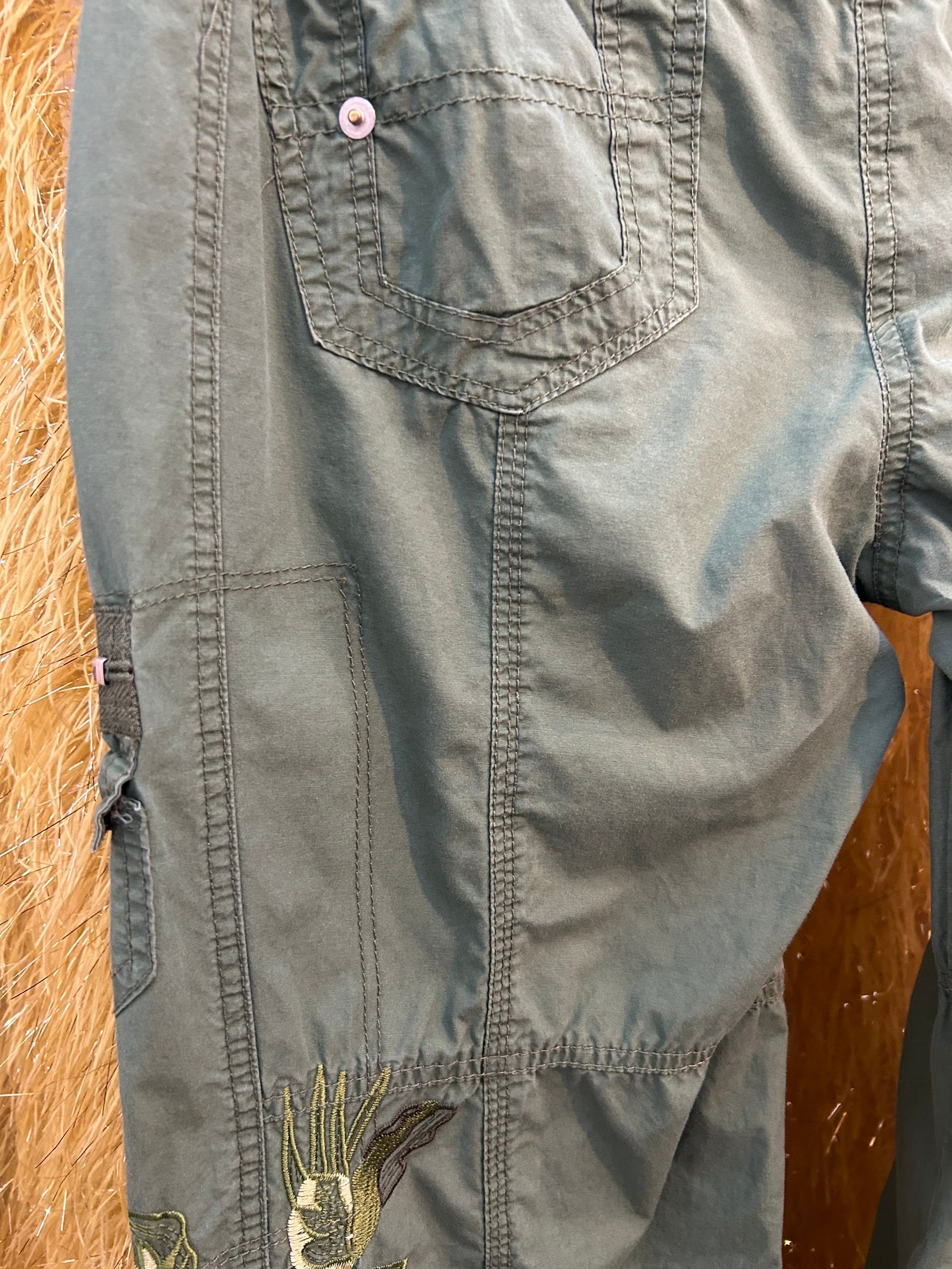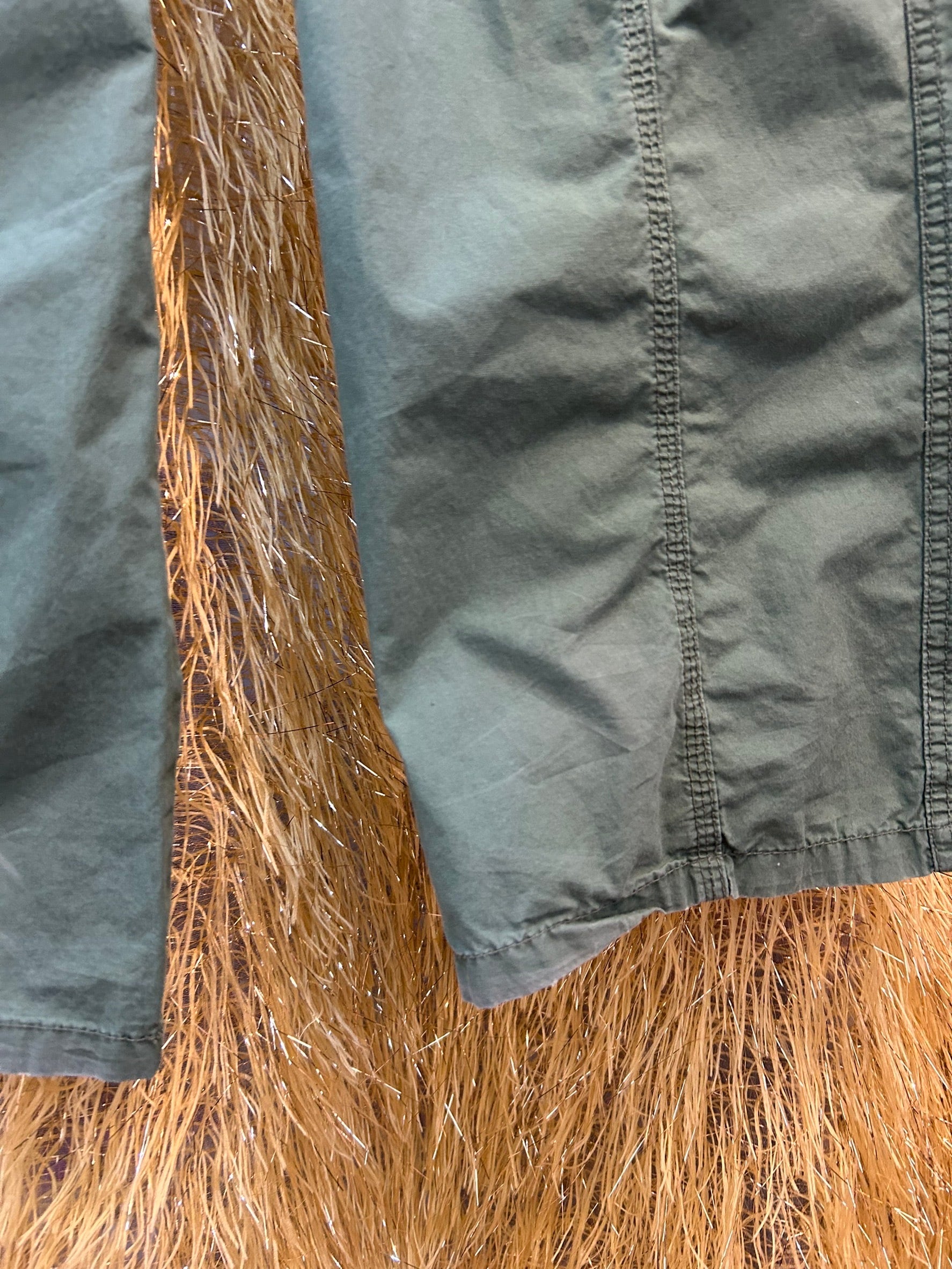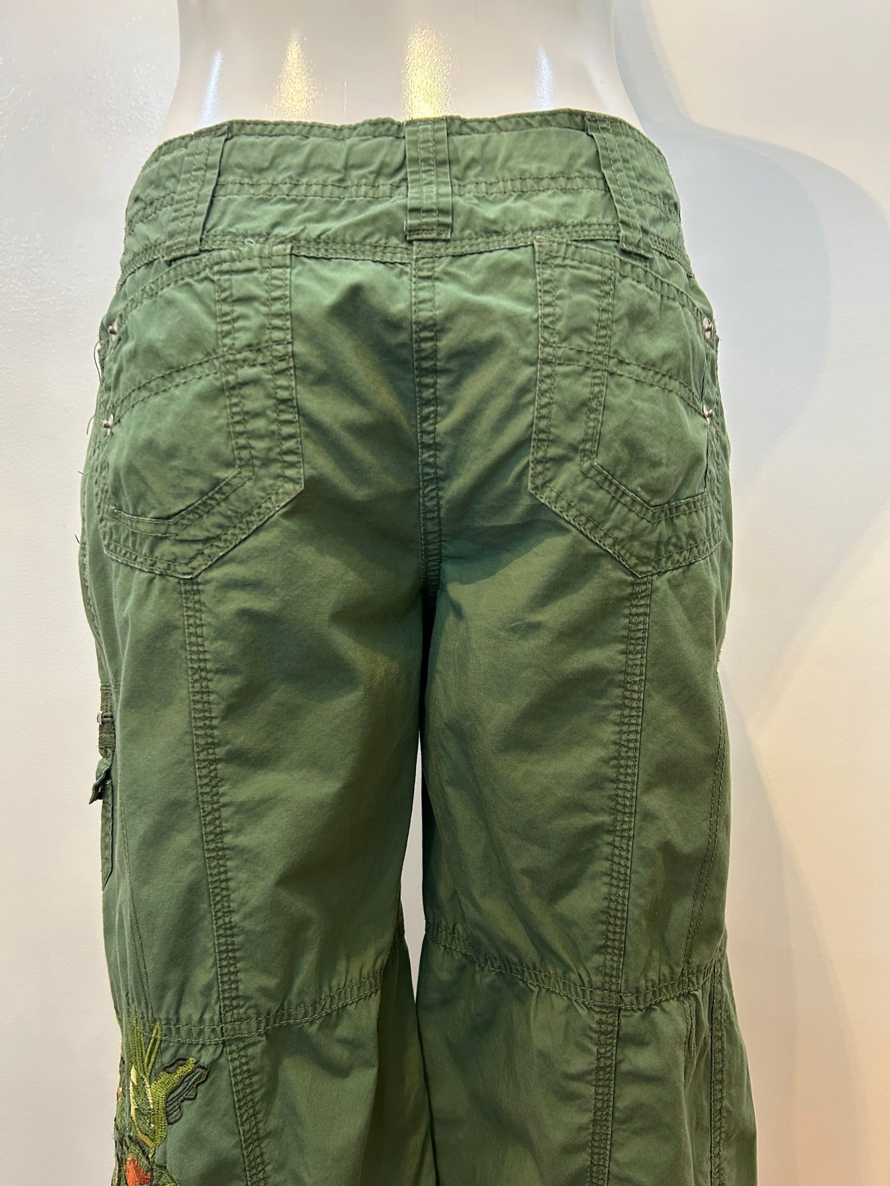素材: 100%Cotton サイズ: ウエスト幅38cm(紐で調節可能) ヒップ幅49cm 股上21cm 股下78cm ダメージ: 写真14〜17枚目の汚れがあります