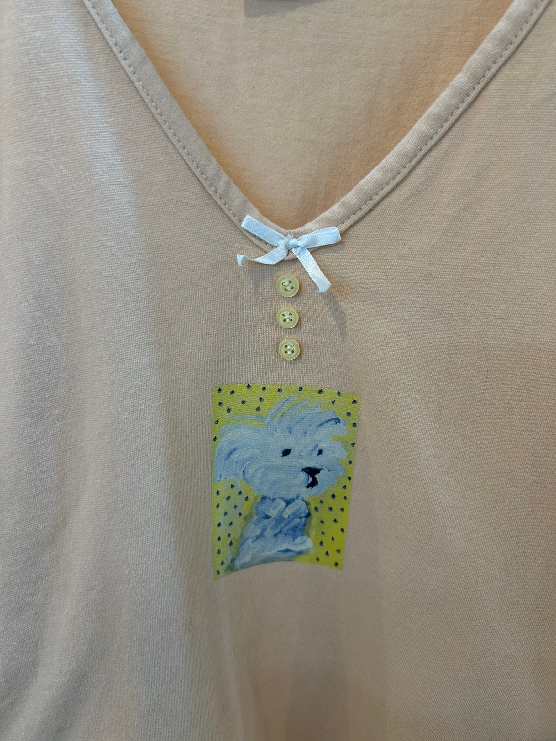 素材: Polyester(表記なし) サイズ: 総丈68cm 肩幅39cm 身幅34cm 袖丈18cm 安藤智展「FANCY♡」に合わせて制作したシリーズ。安藤智の油彩作品とitimiのコラボです。