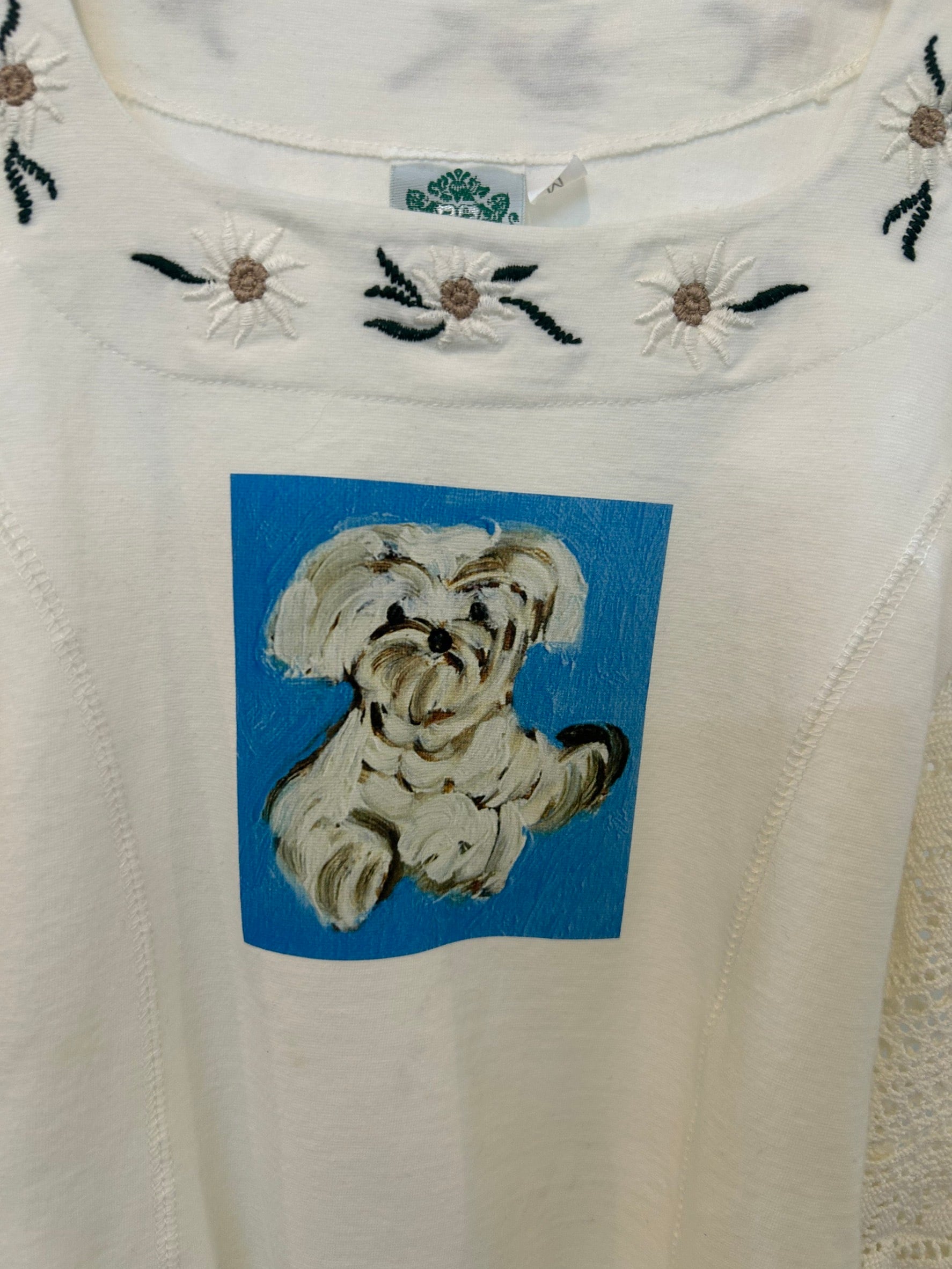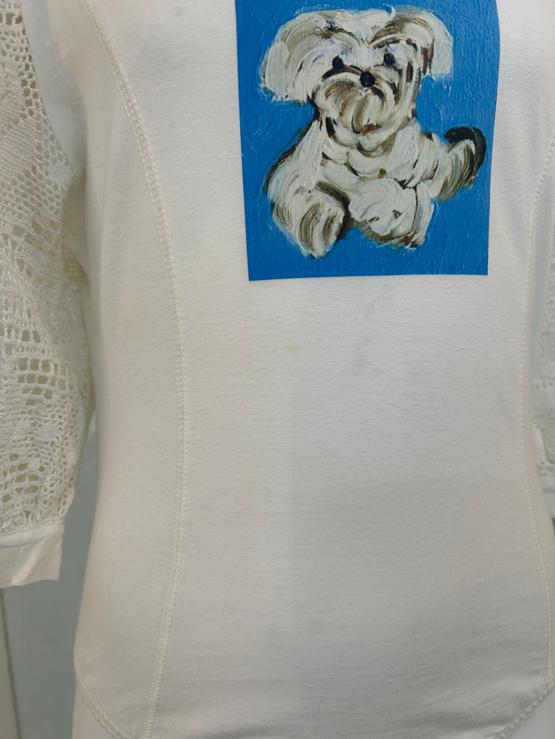 素材: Cotton(表記なし) サイズ: M(表記)総丈66cm 肩幅36cm 身幅36cm 袖丈40cm ダメージ: 写真18〜20枚目の汚れがあります 安藤智展「FANCY♡」に合わせて制作したシリーズ。安藤智の油彩作品とitimiのコラボです。