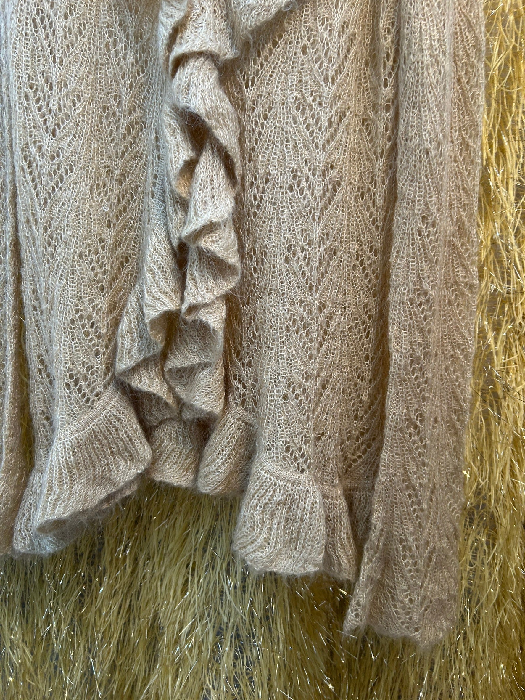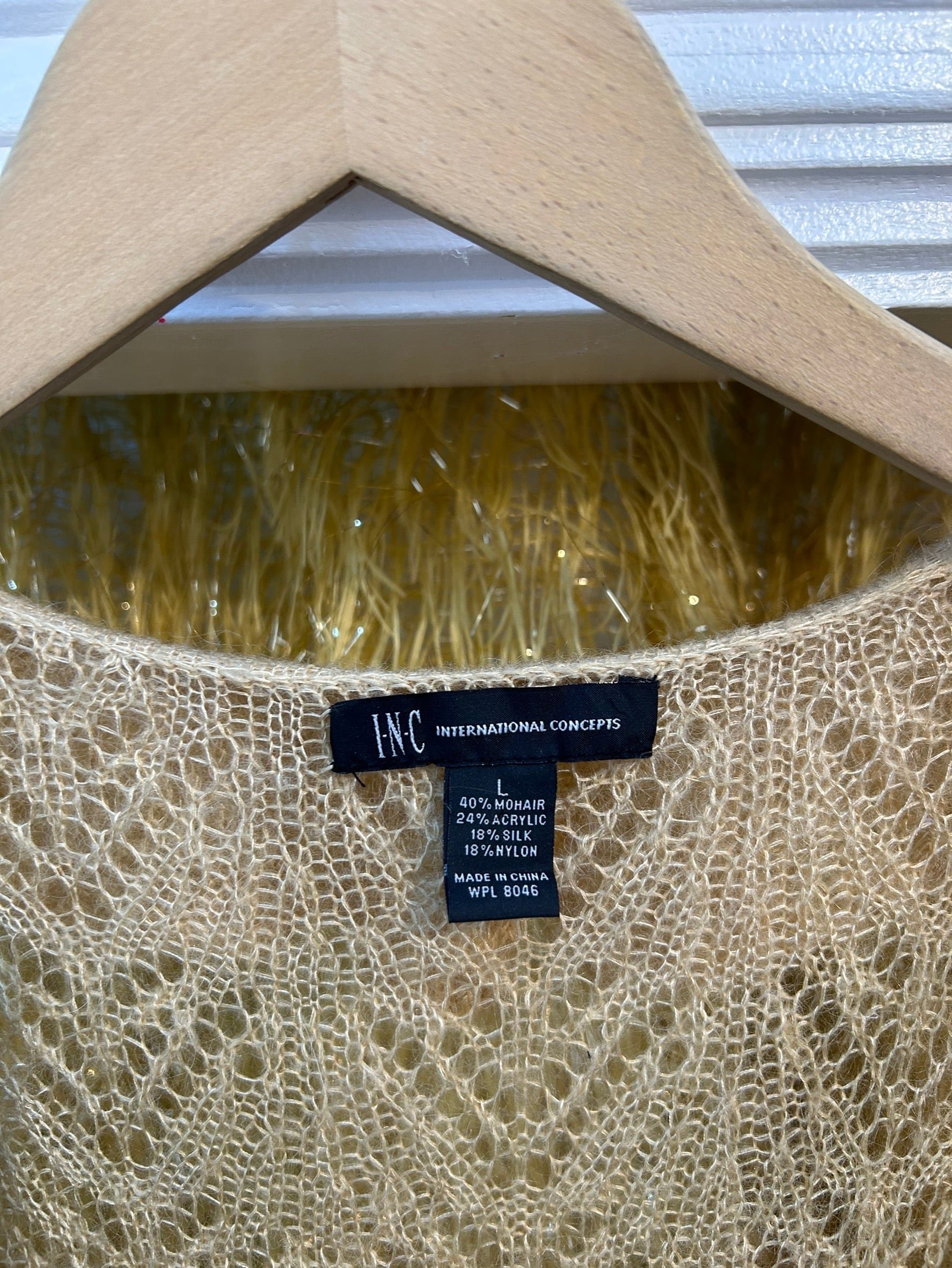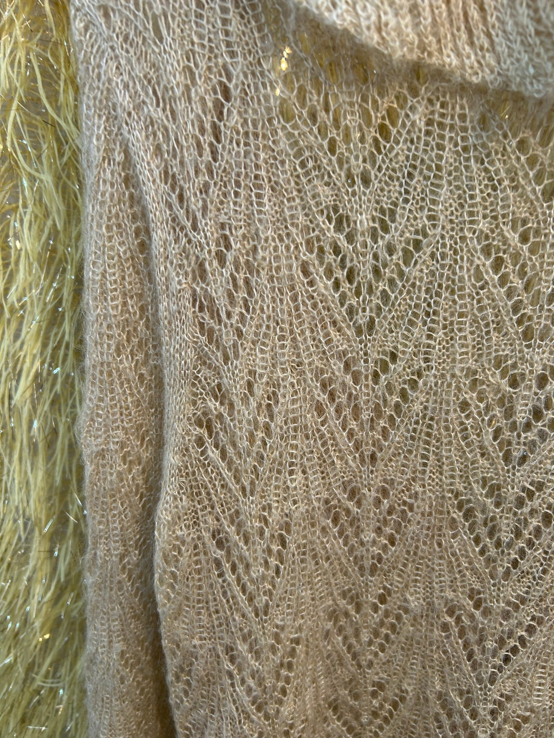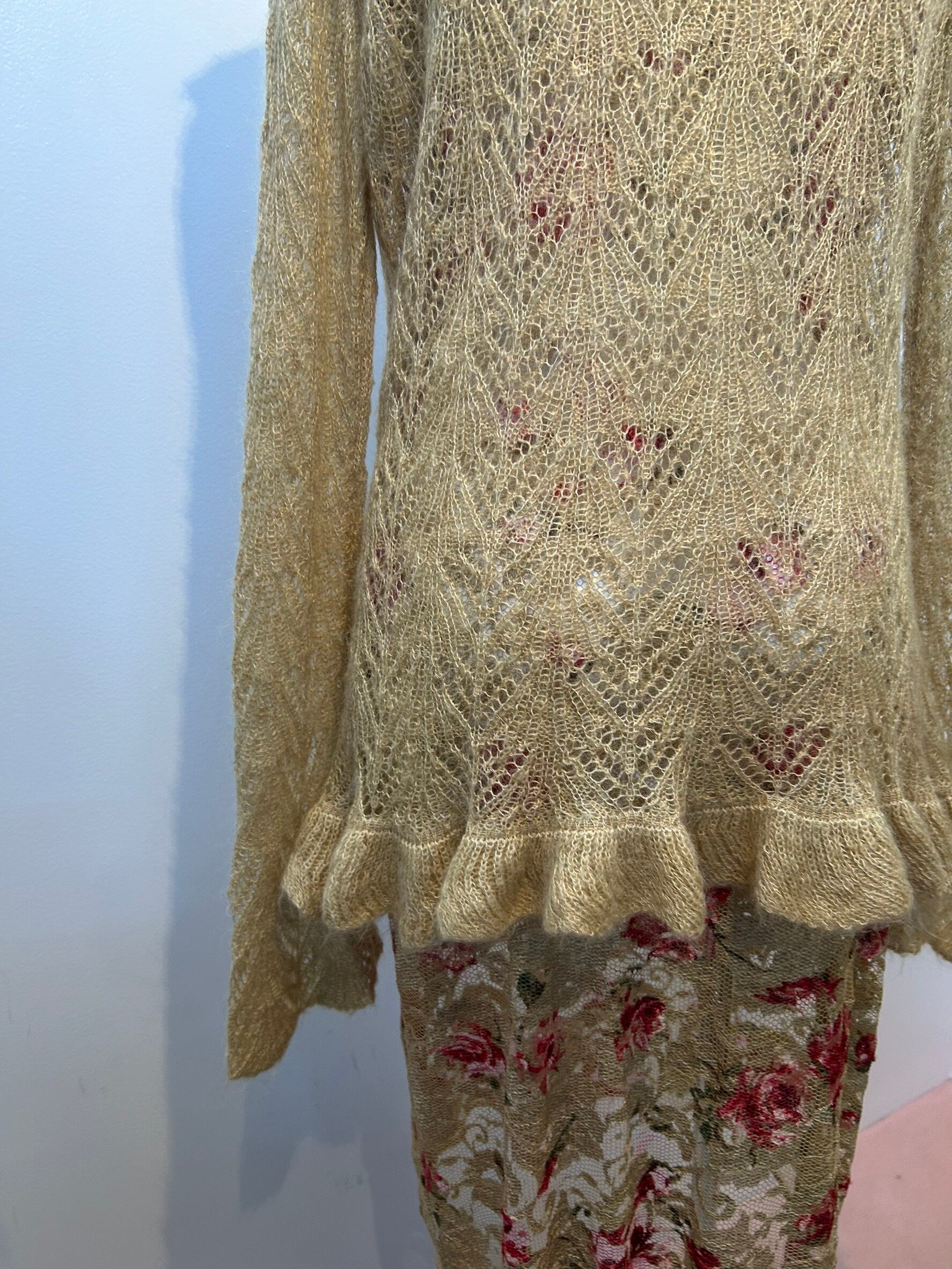 素材: 40%Mohair 24%Acrylic 18%Silk 18%Nylon サイズ: L(表記) 着丈67cm 肩幅38cm 身幅35cm 袖丈76cm ダメージ: 写真19.20枚目のような糸の目立つ部分があります
