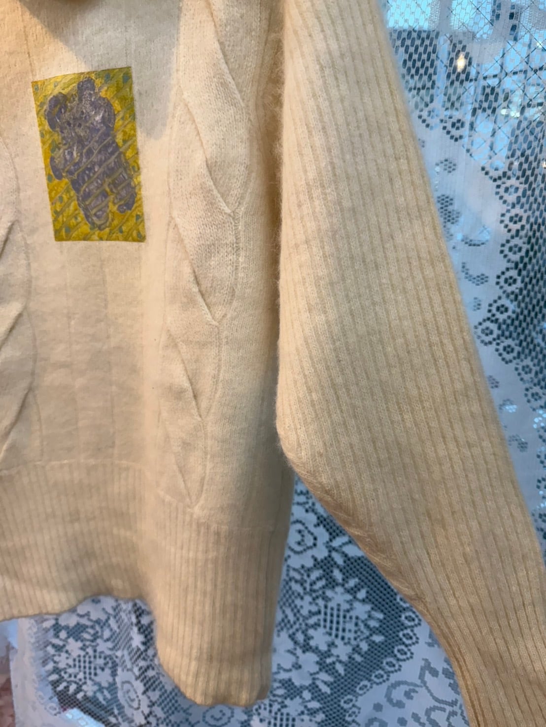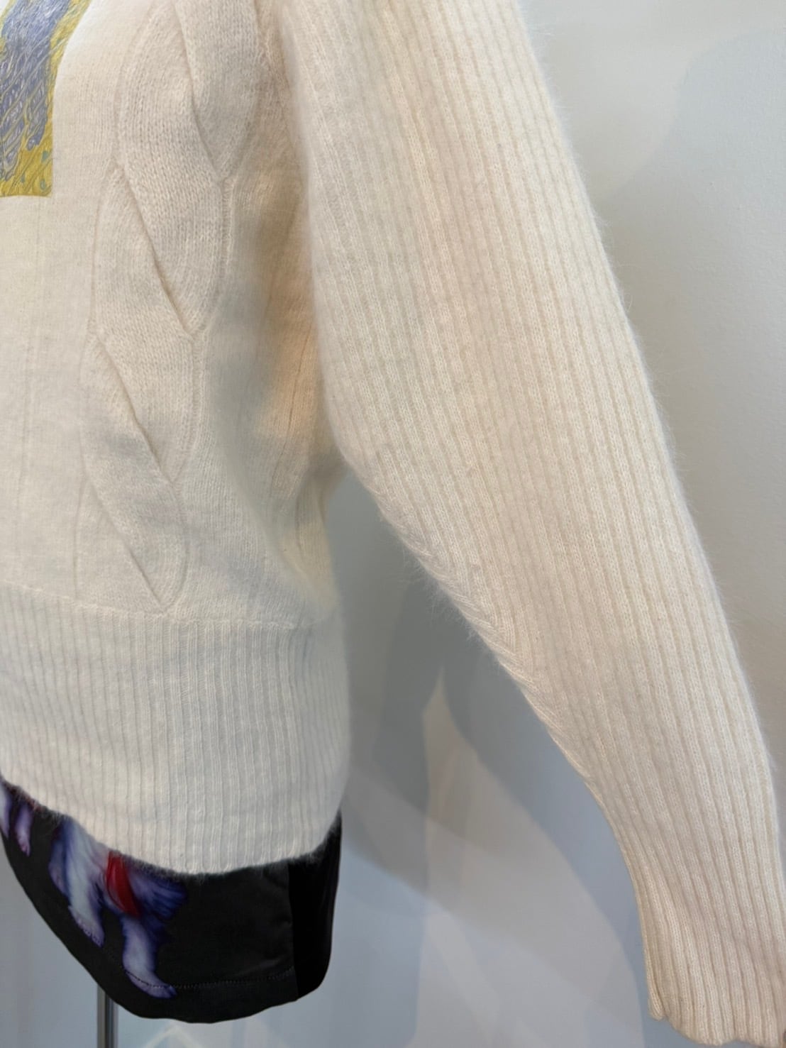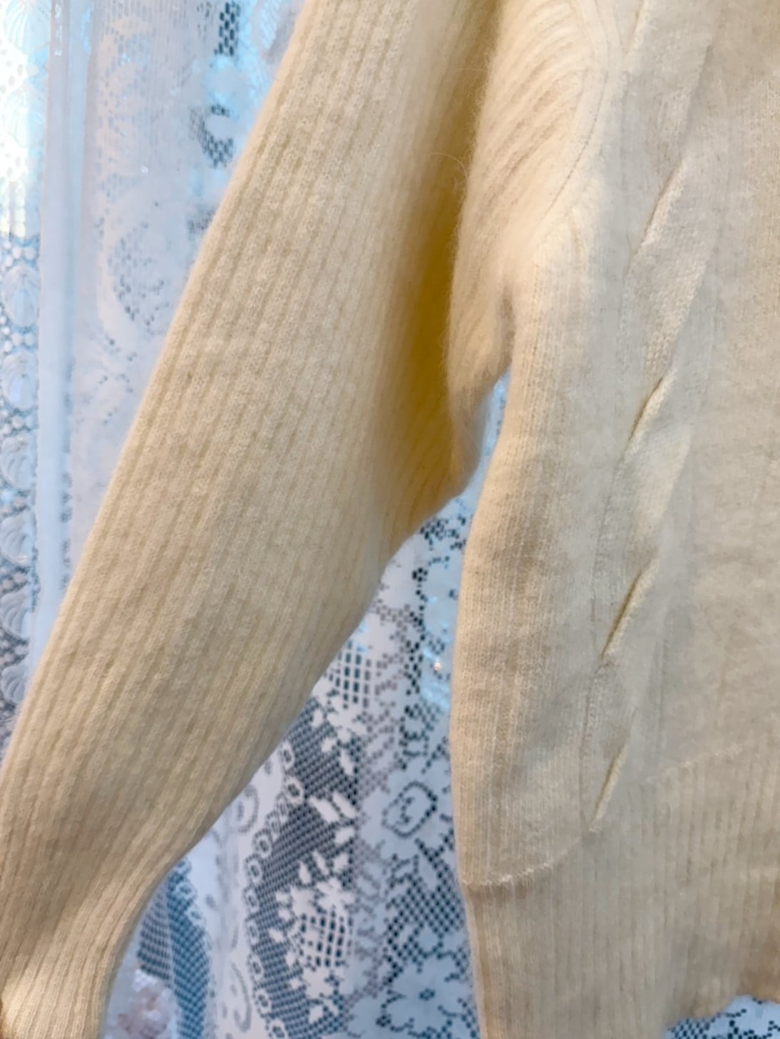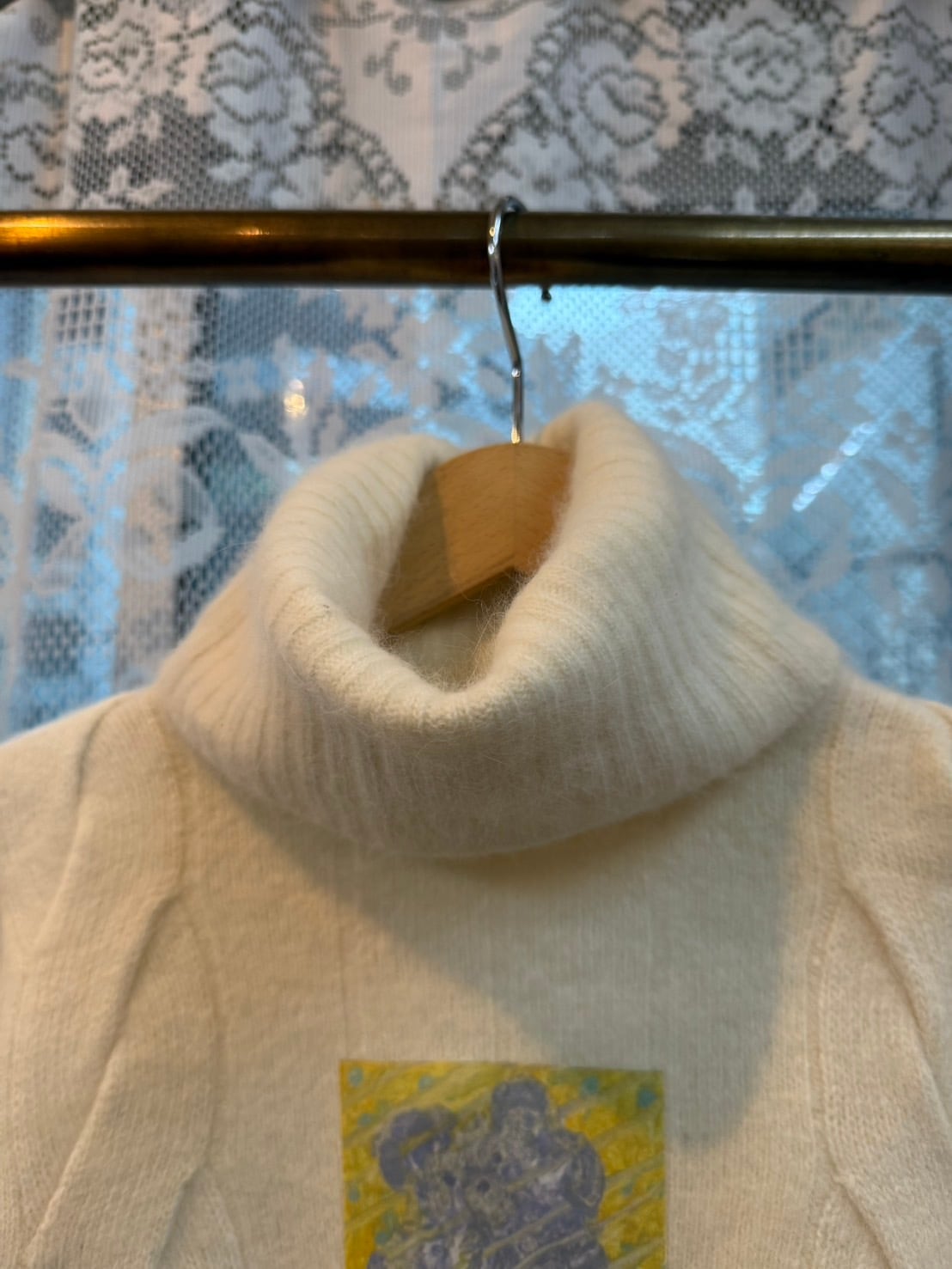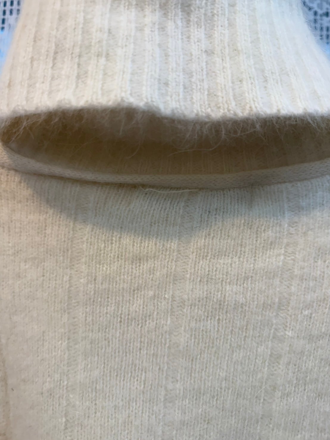 素材: 50%Wool 40%Angora 10%Polyester サイズ: 肩幅42cm 袖丈59cm 身幅41cm 身丈57cm タートル幅21cm ダメージ: 写真18枚目のような首の後ろにタグ糸が見えています。