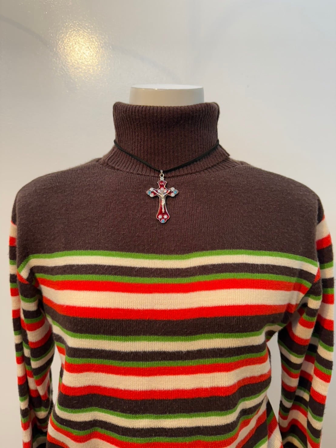 素材: Polyester(表記なし) サイズ: 肩幅44cm 袖丈47cm 身幅45cm 身丈48cm タートル幅17cm ダメージ: 写真16,17枚目のような全体的なけば立ちがあります。