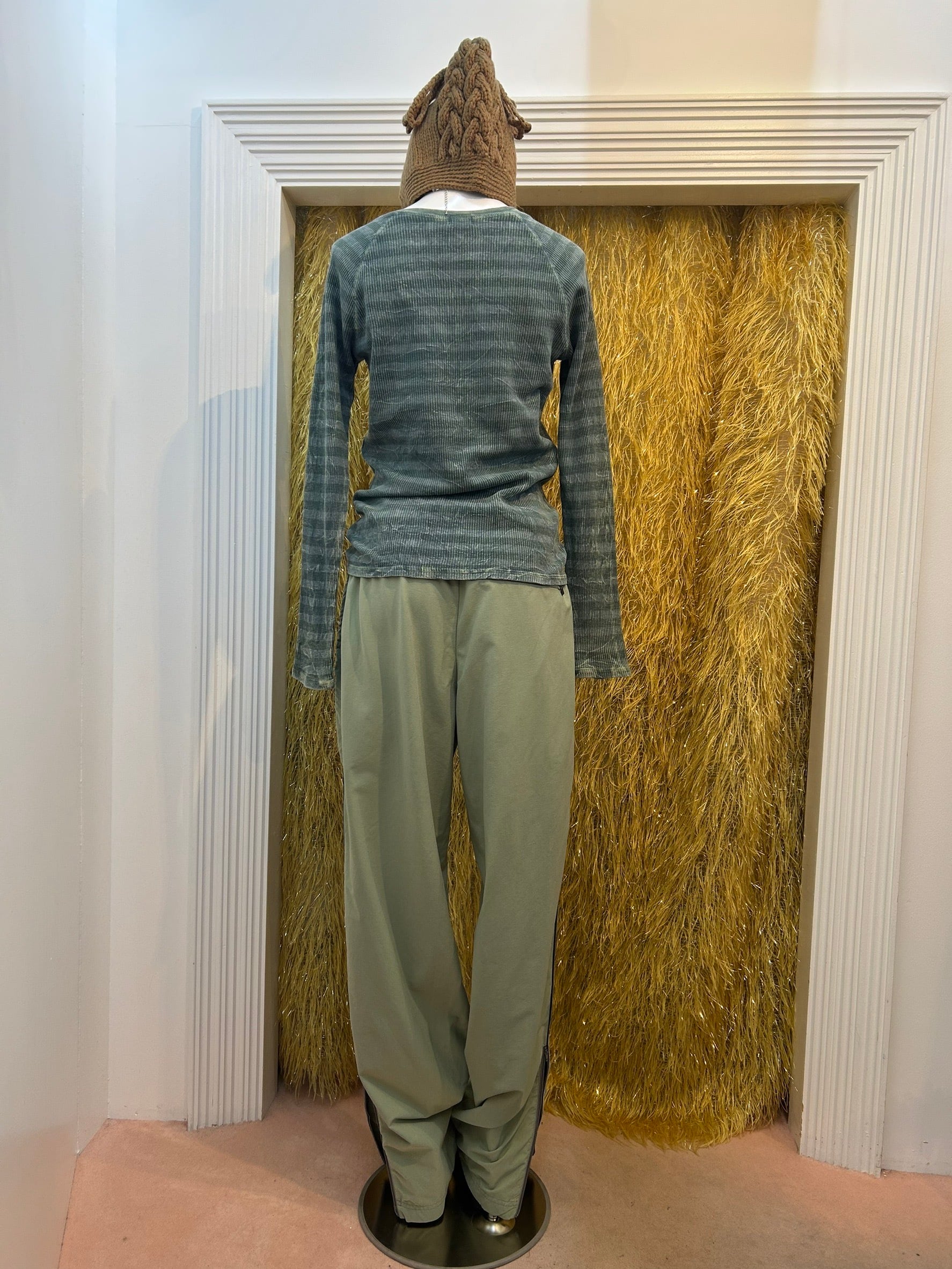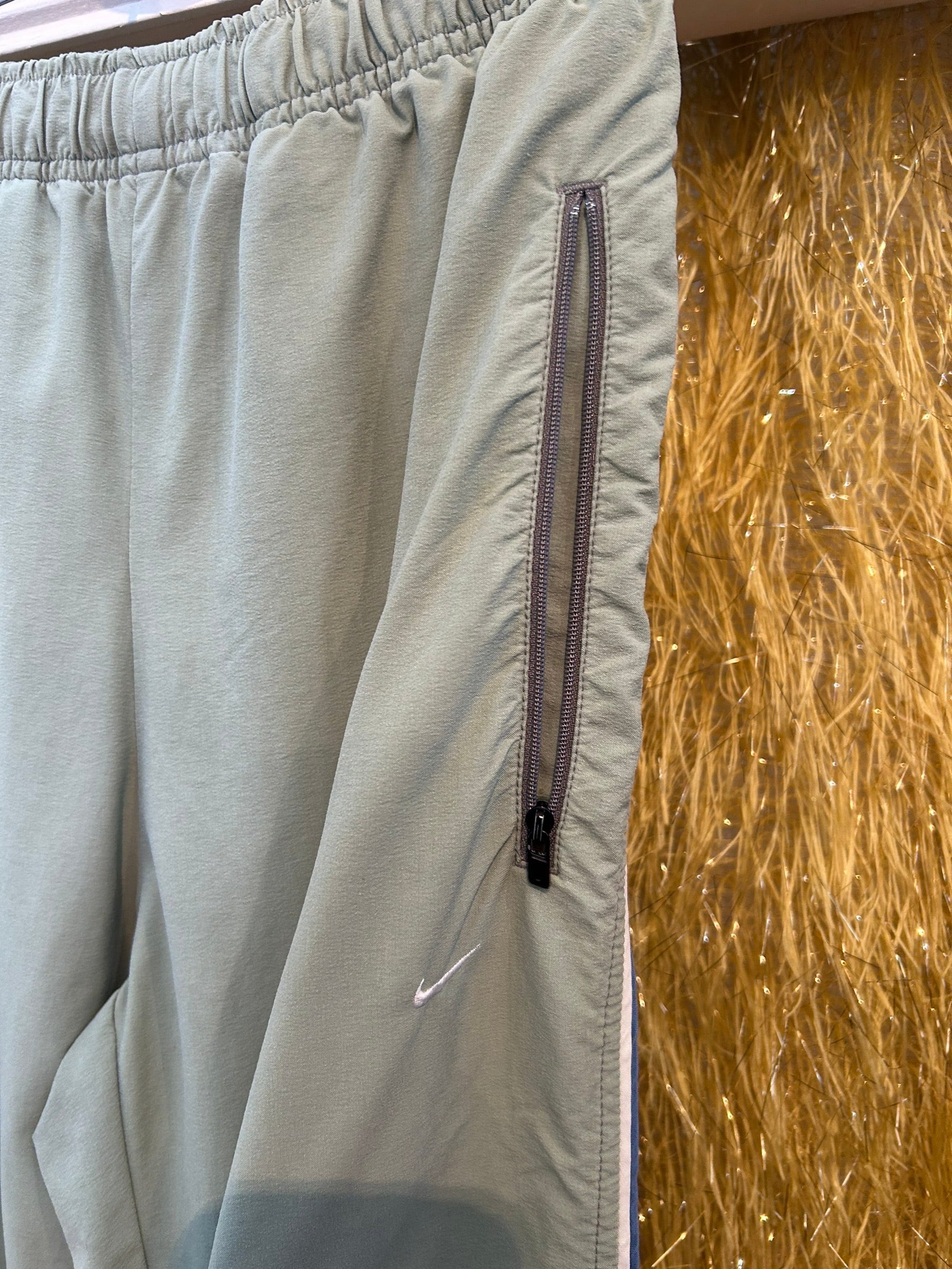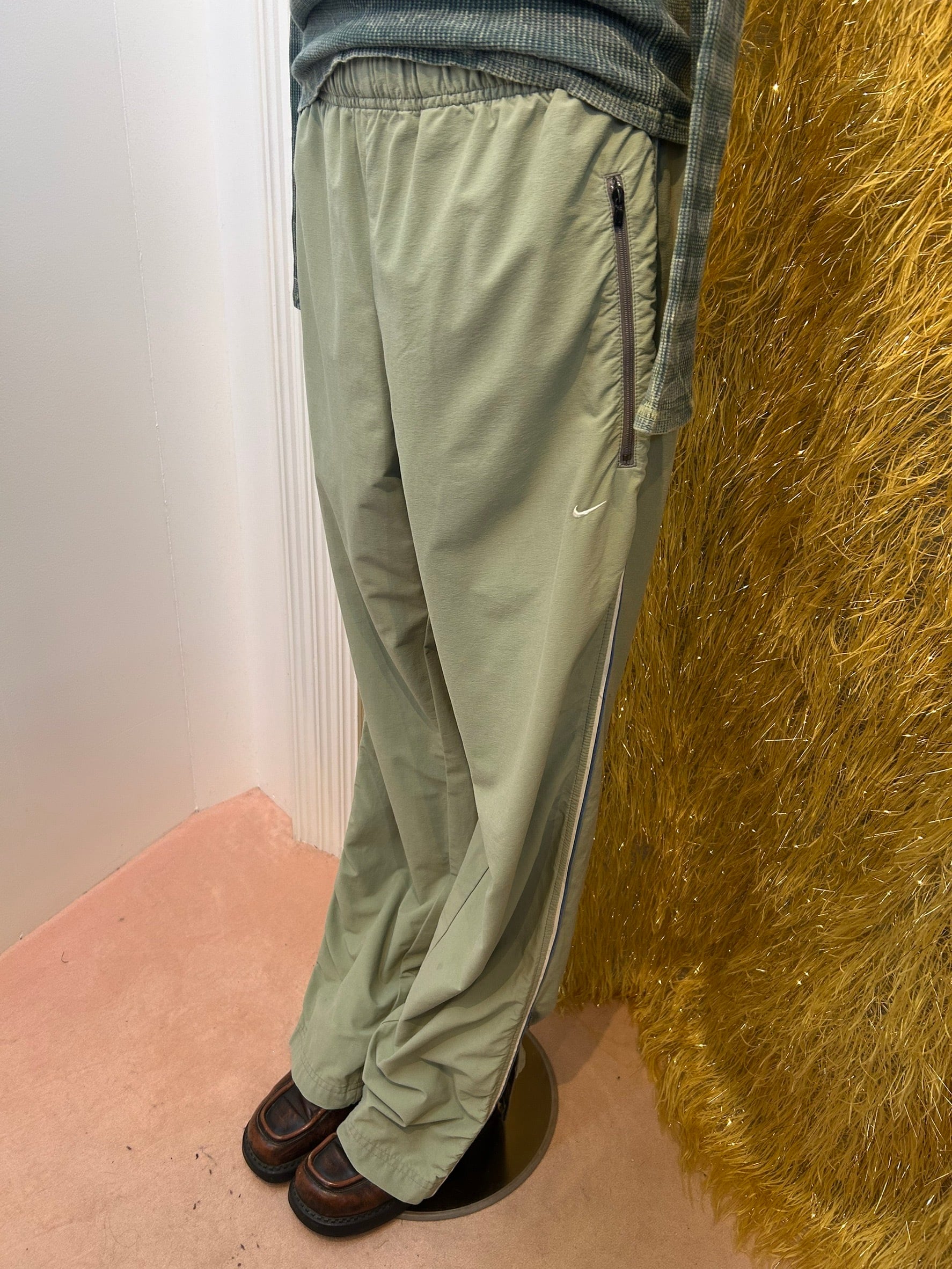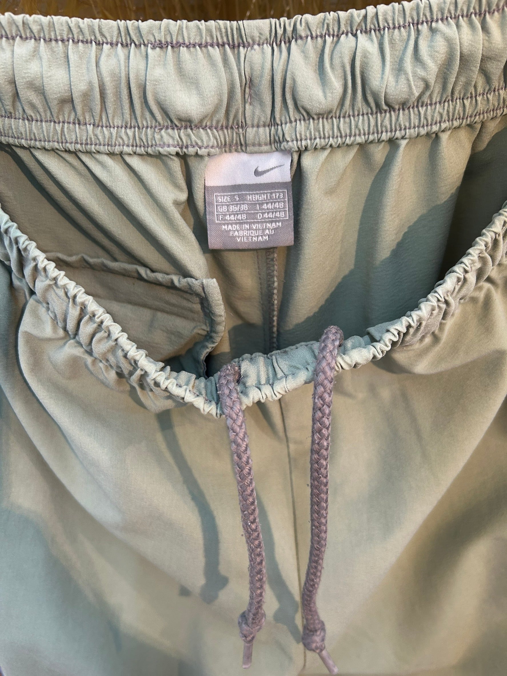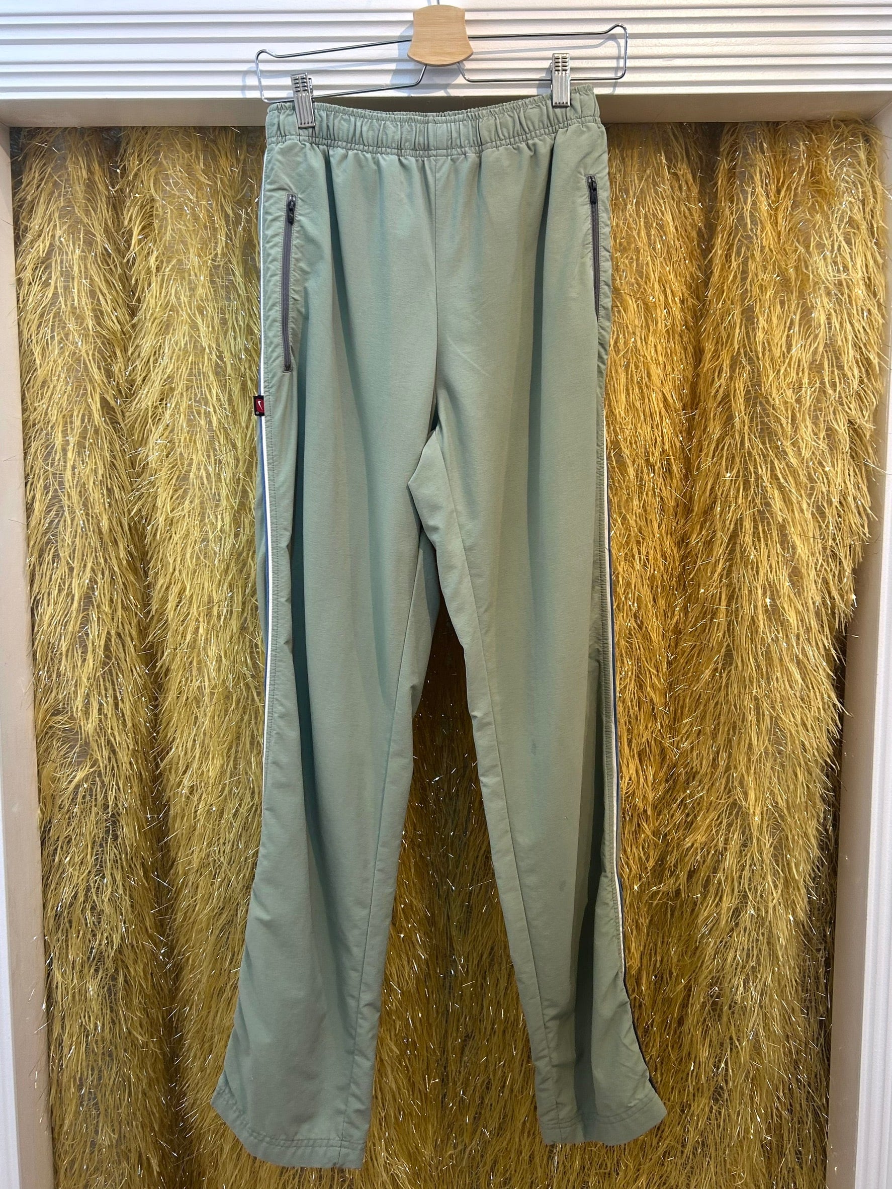 素材: Nylon,Elastan サイズ: ウエスト幅33.5cm(紐で調節可能) ヒップ幅52cm 股上31.5cm 股下82cm わたり幅32cm 裾幅21cm ダメージ: 写真17.18枚目の汚れがあります