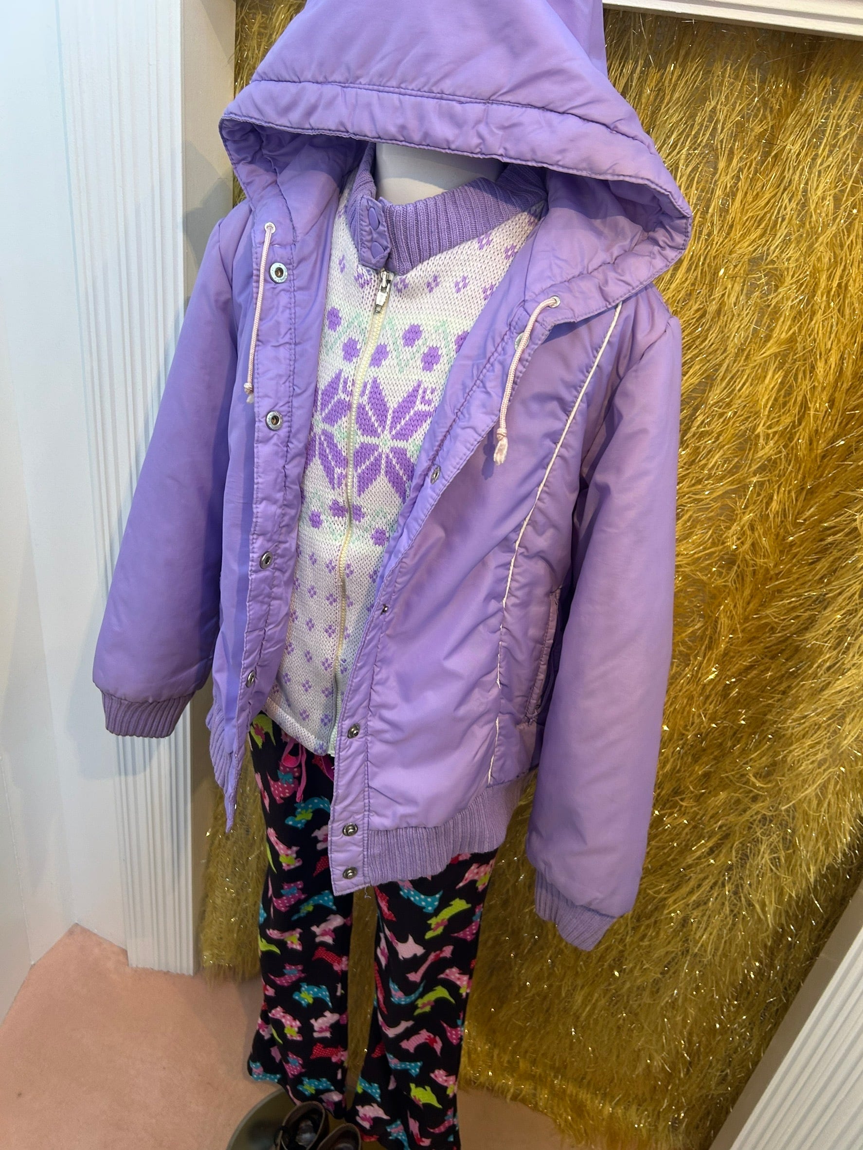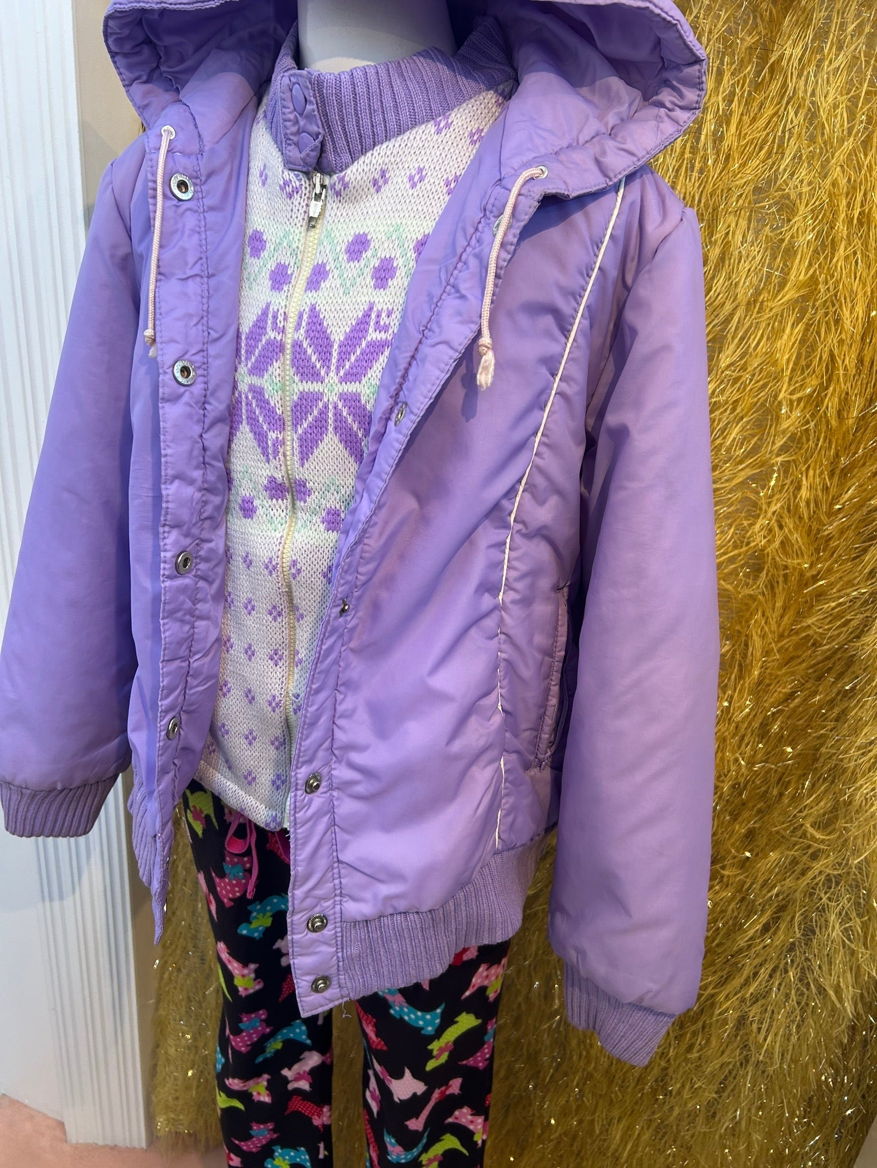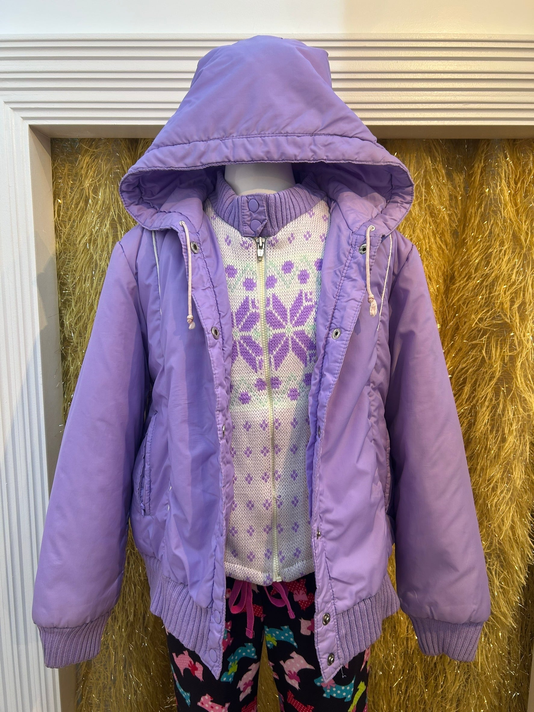 素材: ニット部分100%Acrylic ニット以外100%Nylon サイズ: M(表記) 着丈57cm 肩幅40cm 身幅54cm 袖丈59cm ダメージ: 写真18枚目のほつれ、19.20枚目の汚れがあります