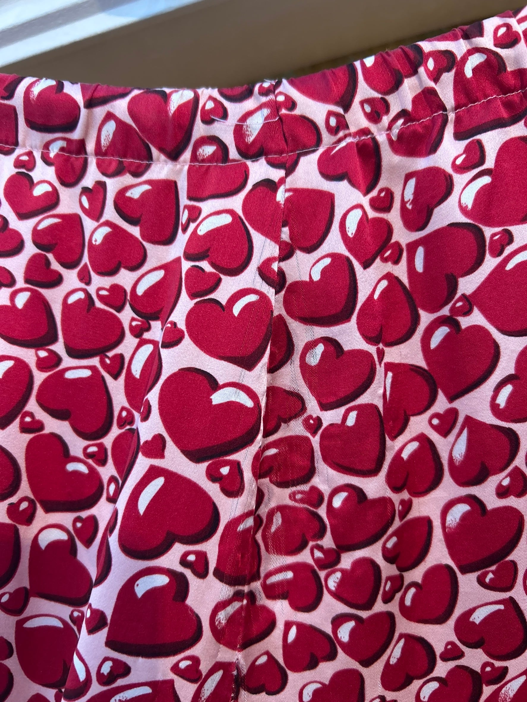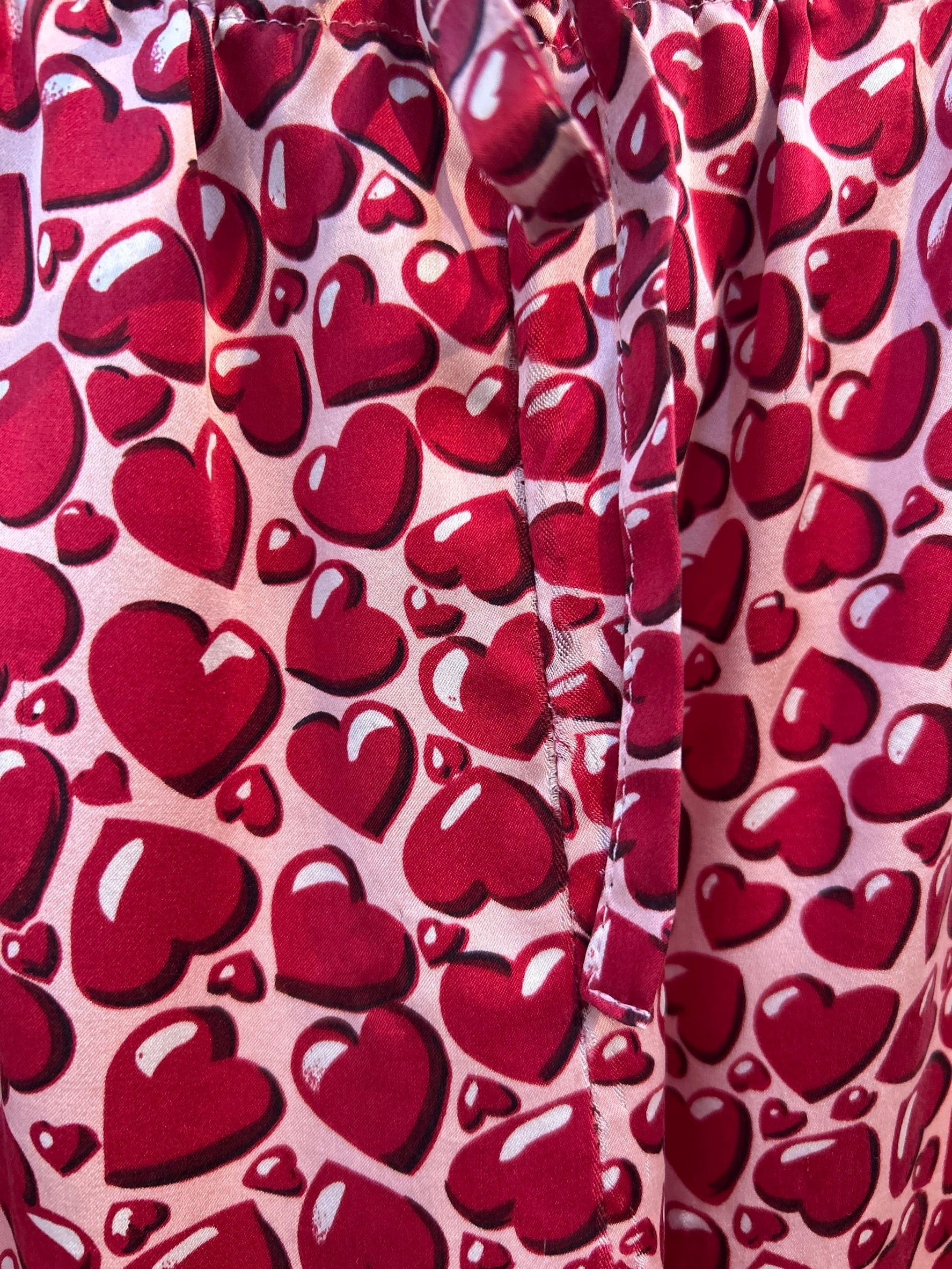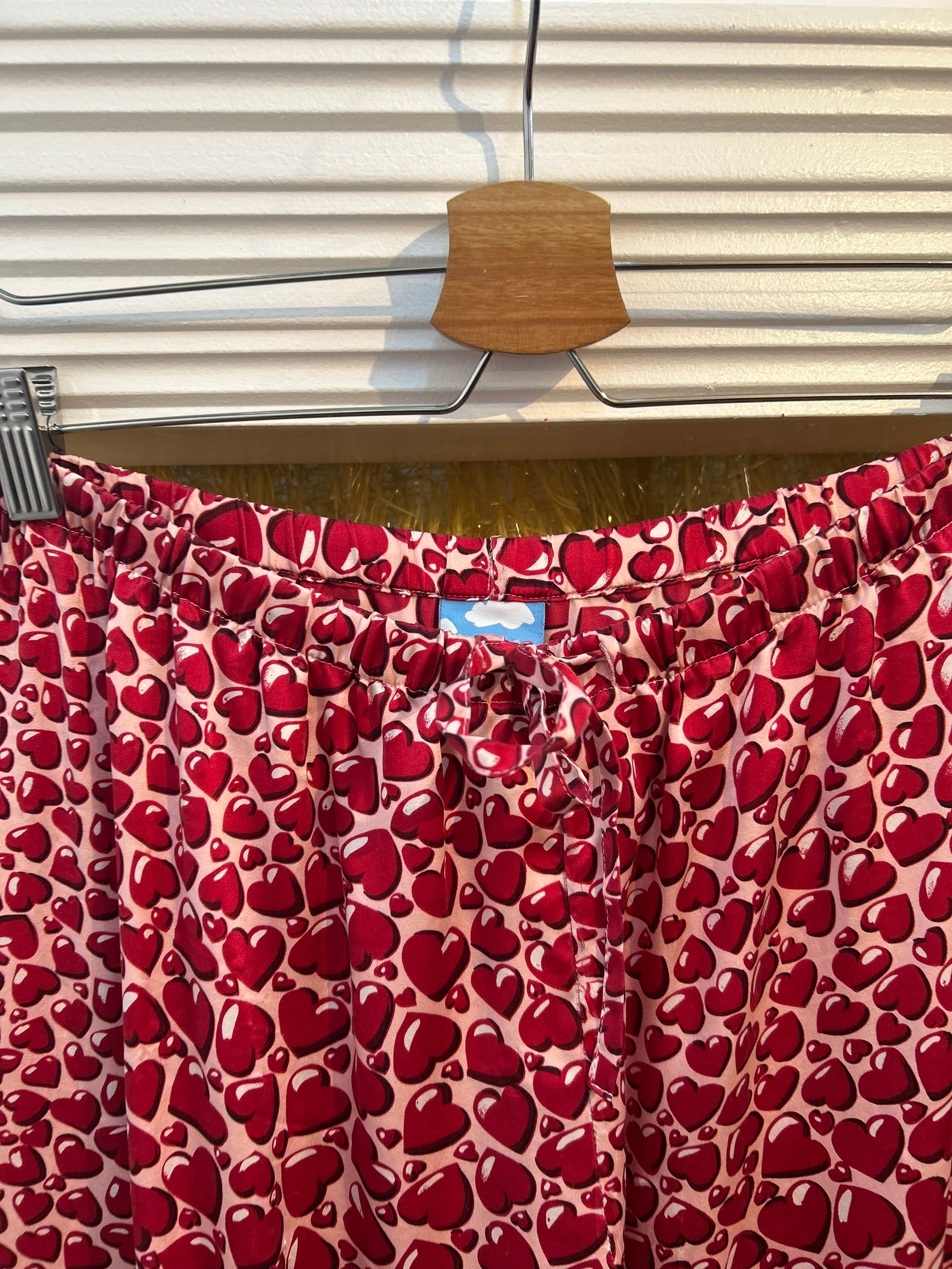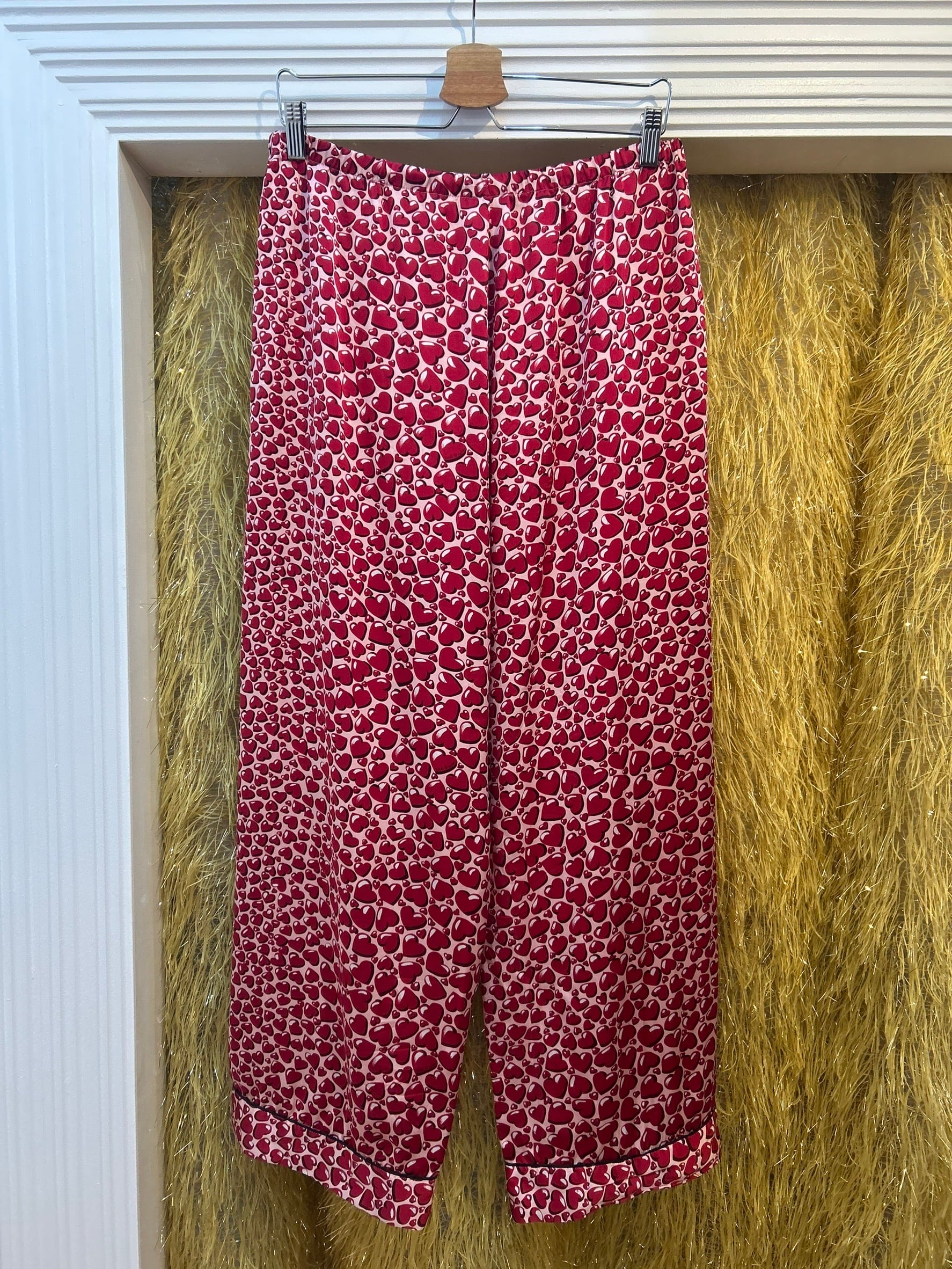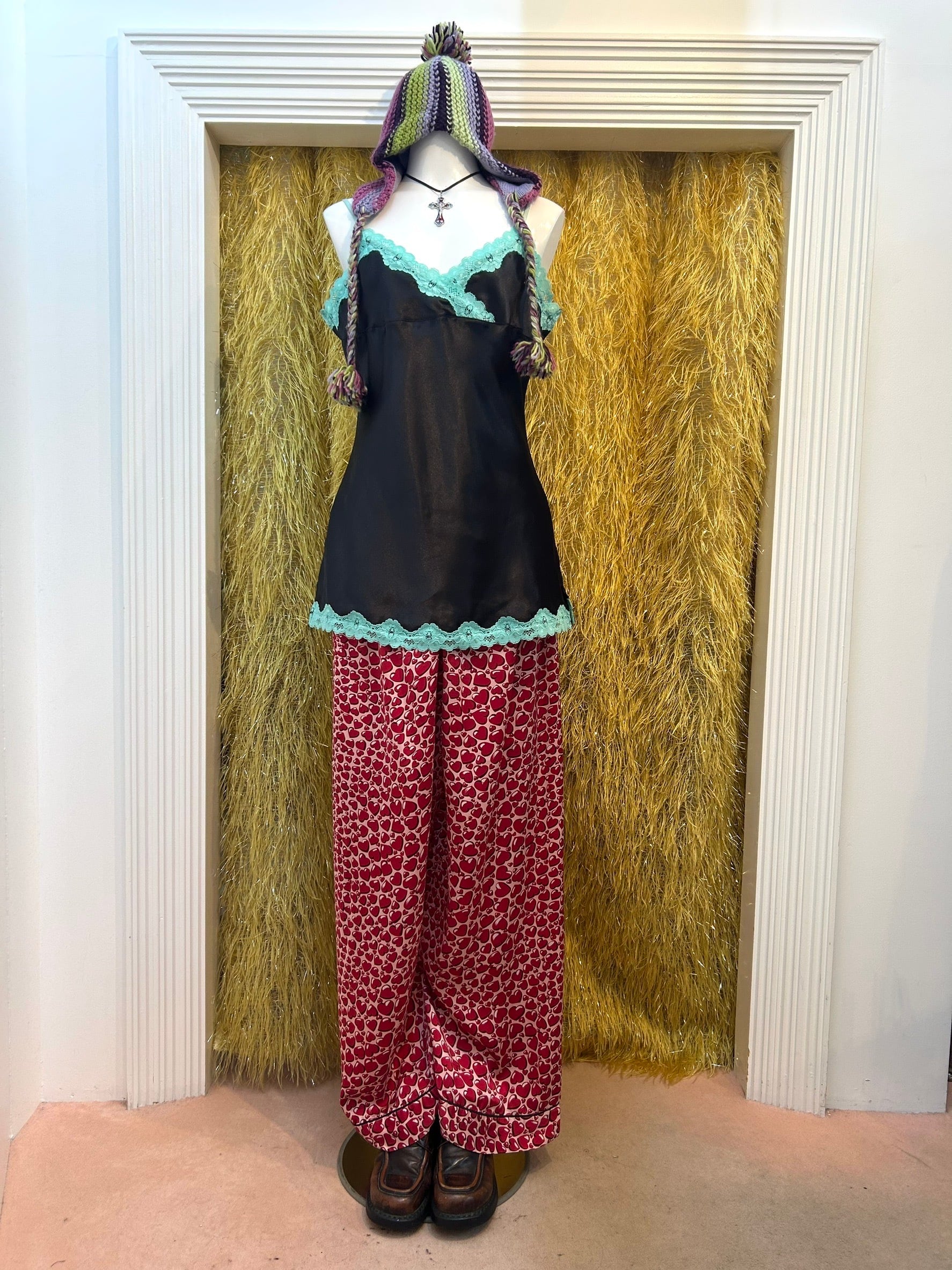 素材: 100%Silk サイズ: L(表記) ウエスト幅42cm(紐で調節可能) ヒップ幅60cm 股上29cm 股下74cm わたり幅36cm 裾幅25cm ダメージ: 写真14〜19枚目の生地のダメージがあります