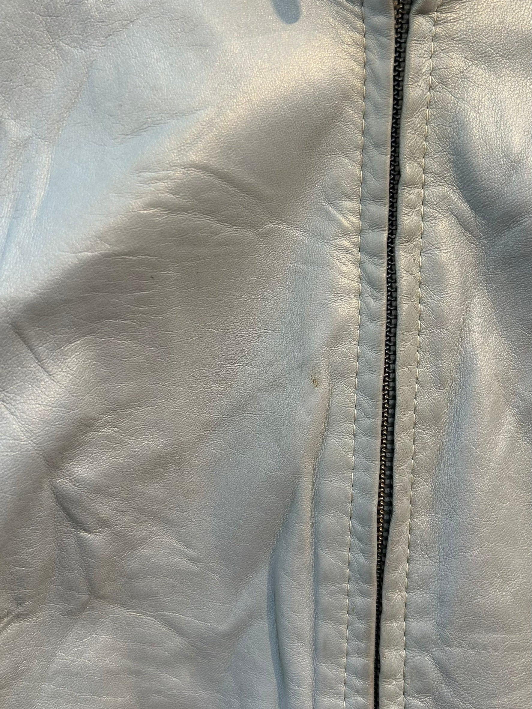 素材: Leather サイズ: S(表記) 着丈51cm 肩幅38cm 身幅44cm 袖丈57.5cm ダメージ: 写真10〜20枚目の汚れがあります