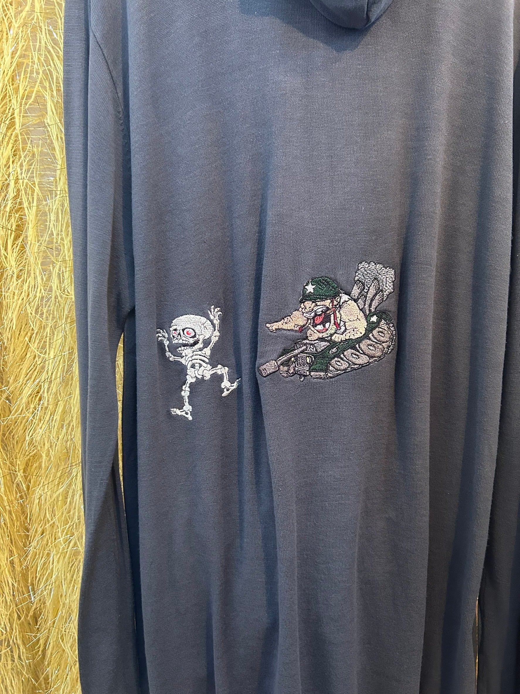 素材: Cotton(表記なし) サイズ: 着丈83cm 肩幅51cm 身幅64cm 袖丈81cm ダメージ: 写真17〜19枚目の汚れ、20枚目の生地のダメージがあります