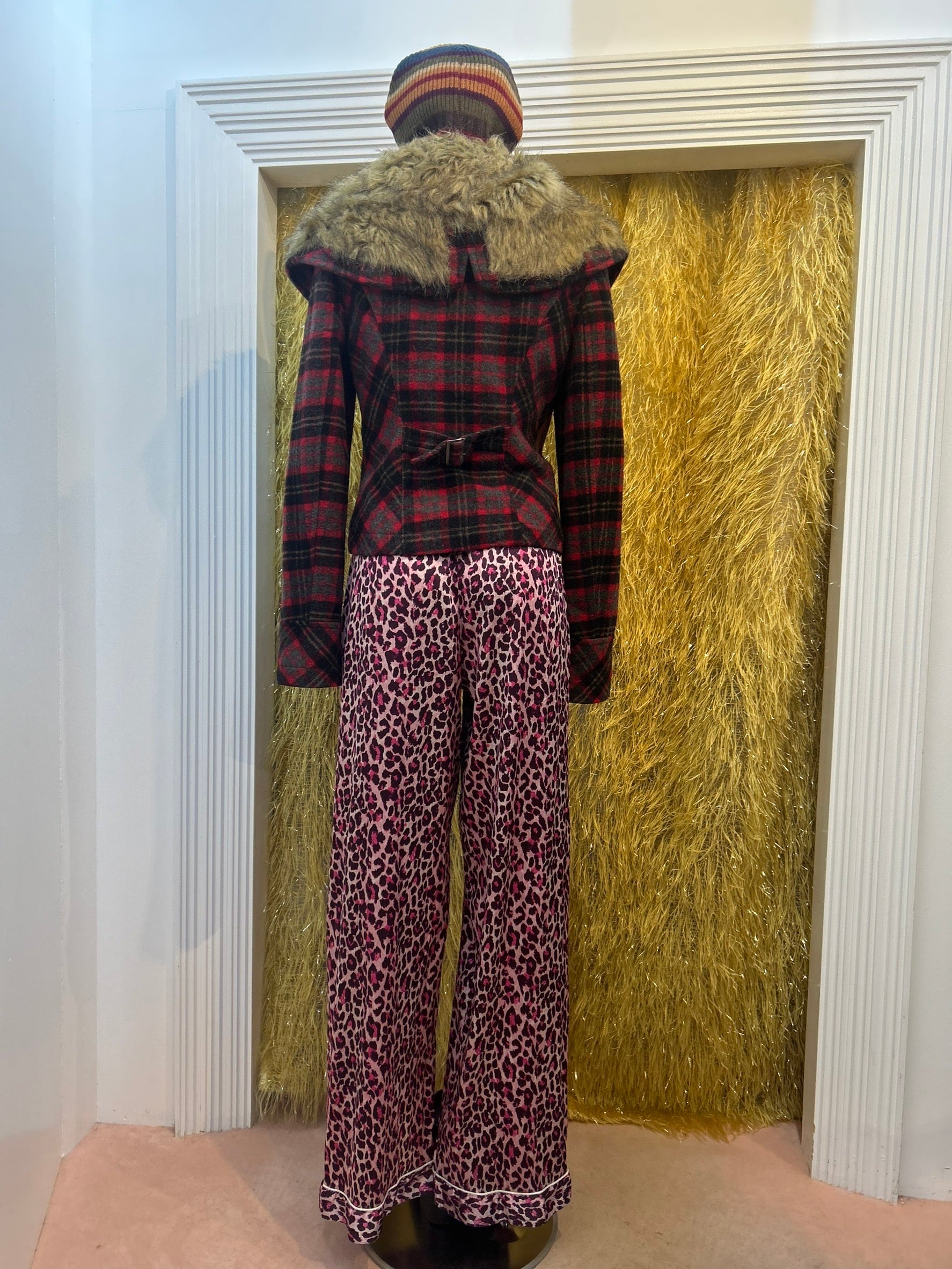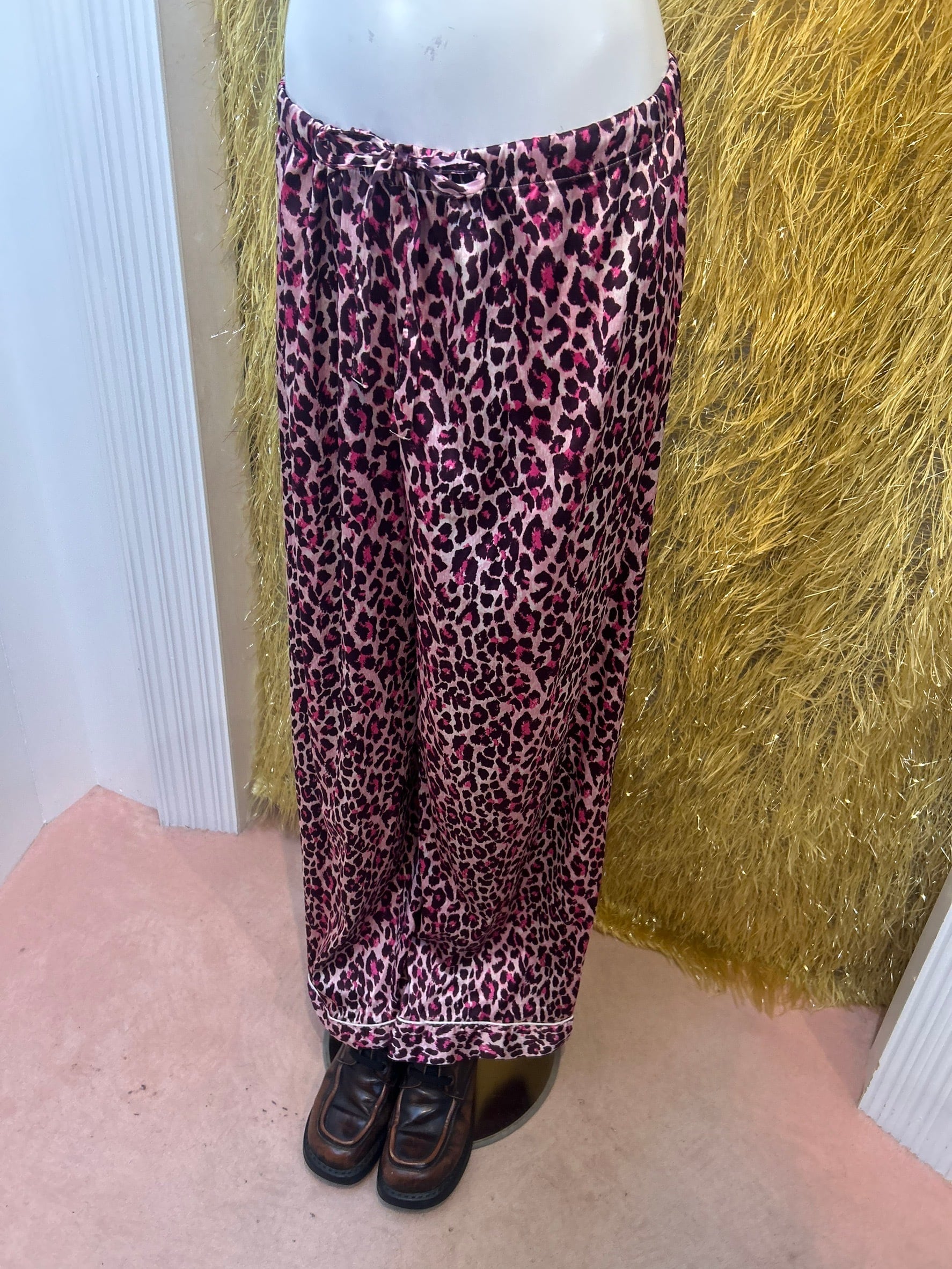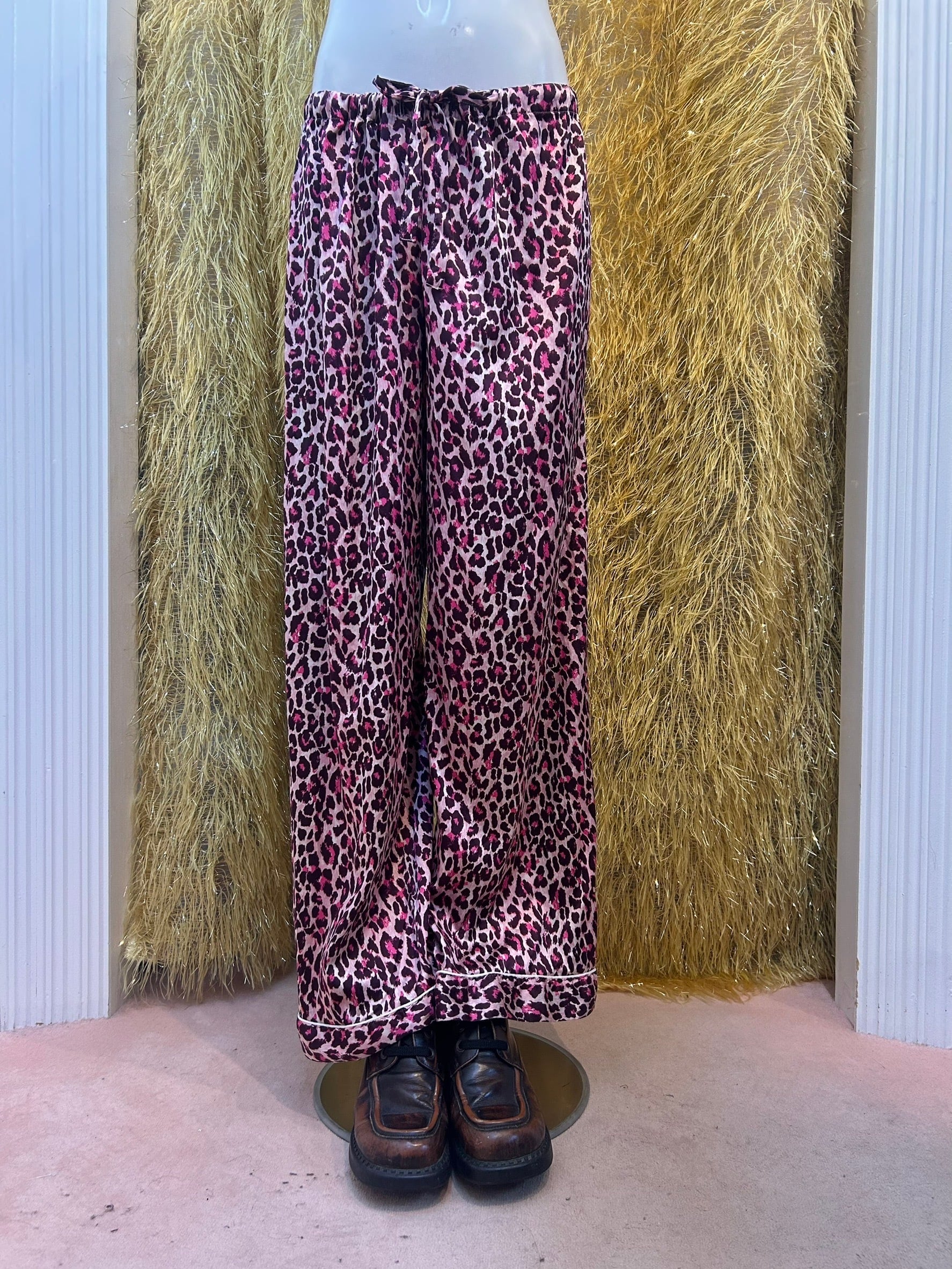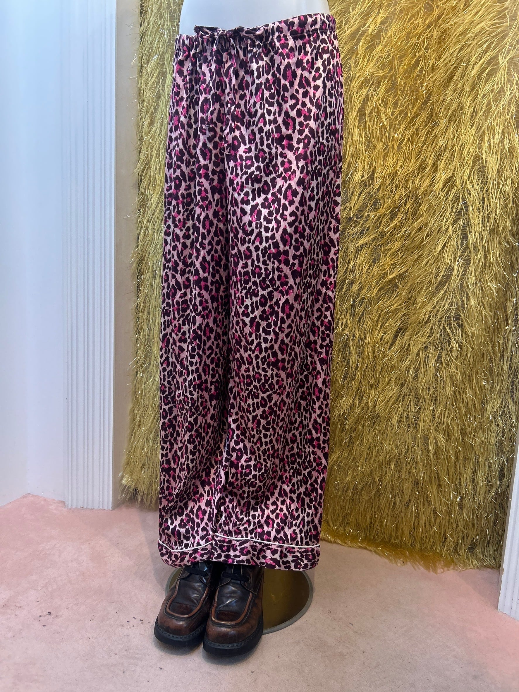 素材: Polyester(表記なし) サイズ: ウエスト幅〜41cm(紐で調節可能) ヒップ幅53cm 股上25cm 股下76cm わたり幅34cm 裾幅27cm ダメージ: 写真13〜16枚目の生地のダメージがあります