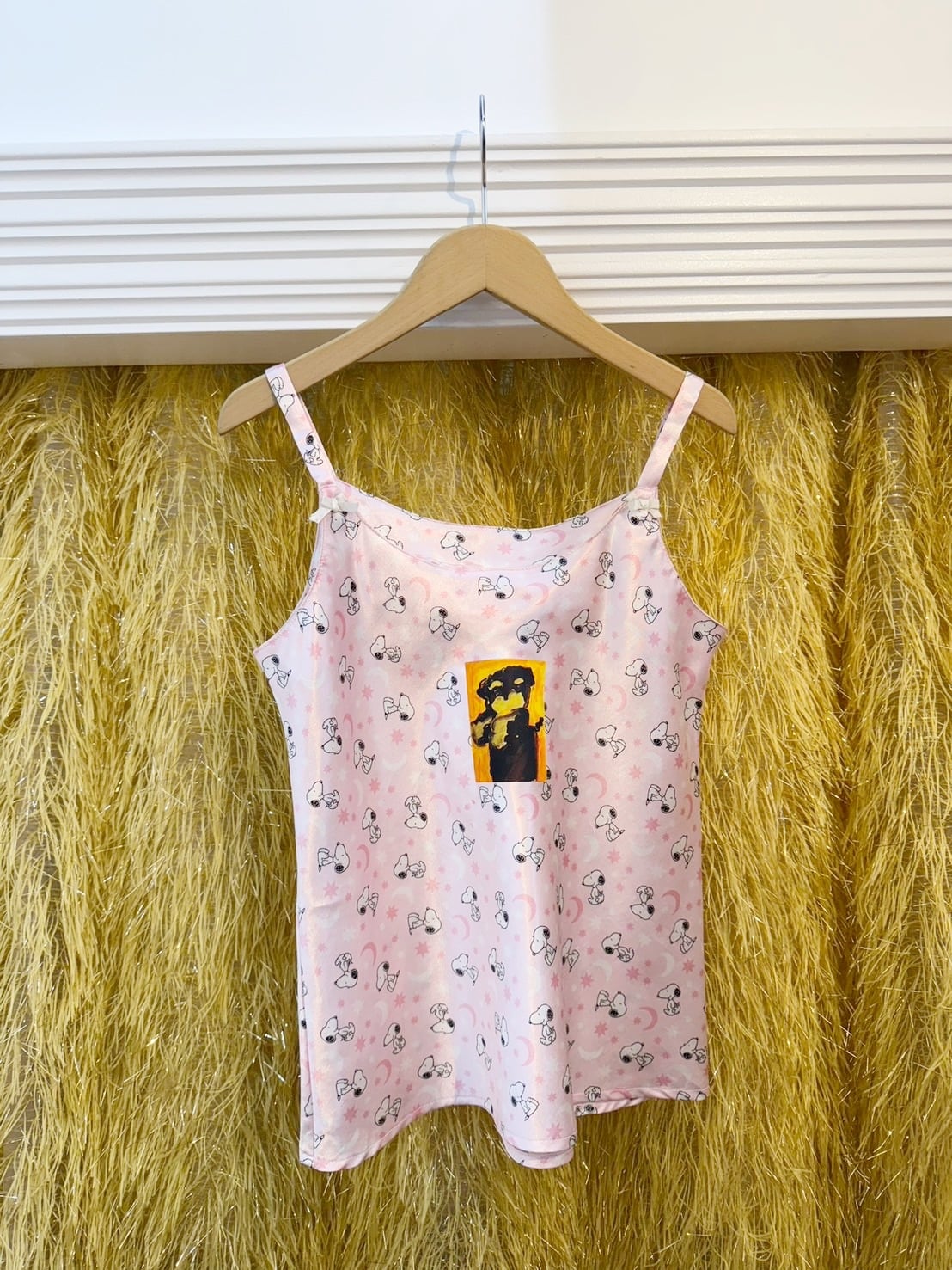 素材: Polyester(表記なし) サイズ: 肩幅24cm 身丈46cm 総丈57.5cm 肩紐10cm ダメージ: 写真14〜16枚目のような糸のほつれと伝染してる部分があります。