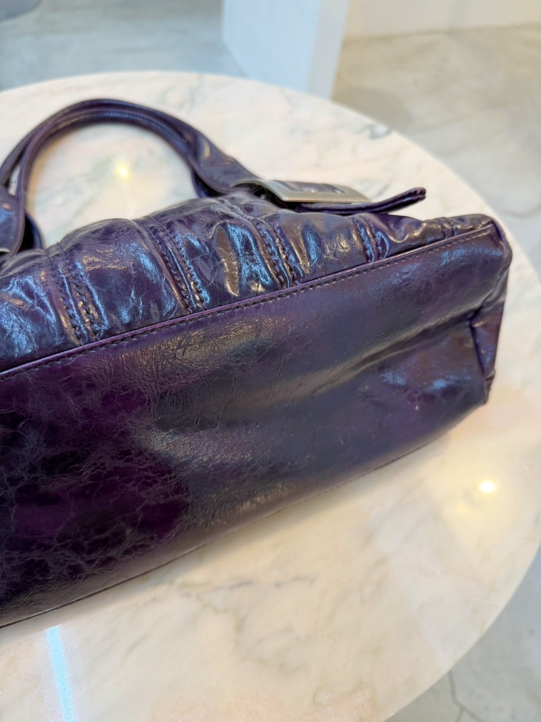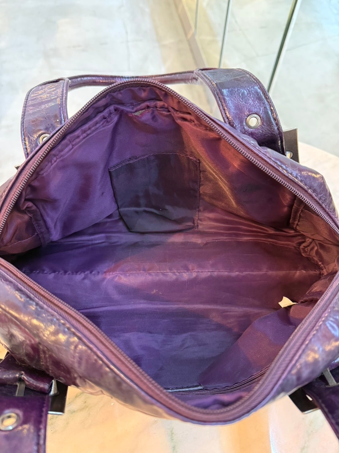 素材: 不明 サイズ: 縦幅20cm 横幅41cm まち幅12cm 手持ち高さ22cm ダメージ: 写真16枚目のような汚れが内側にあります。