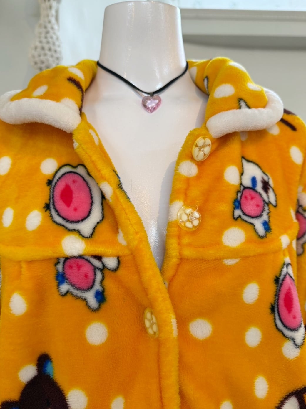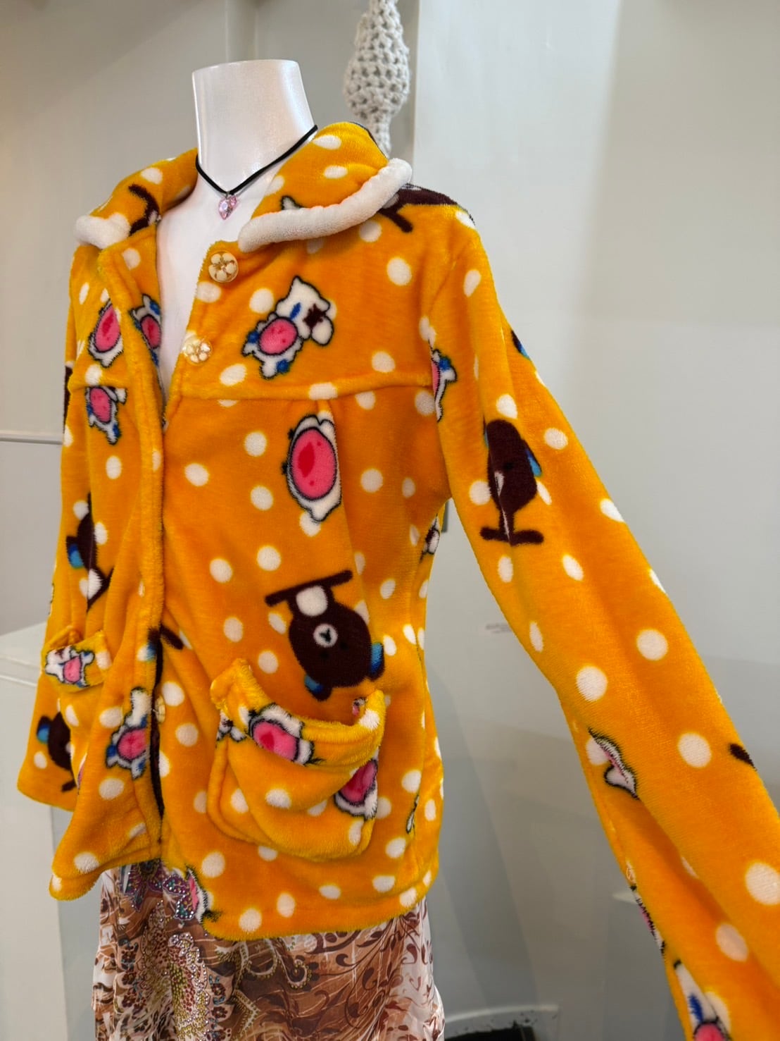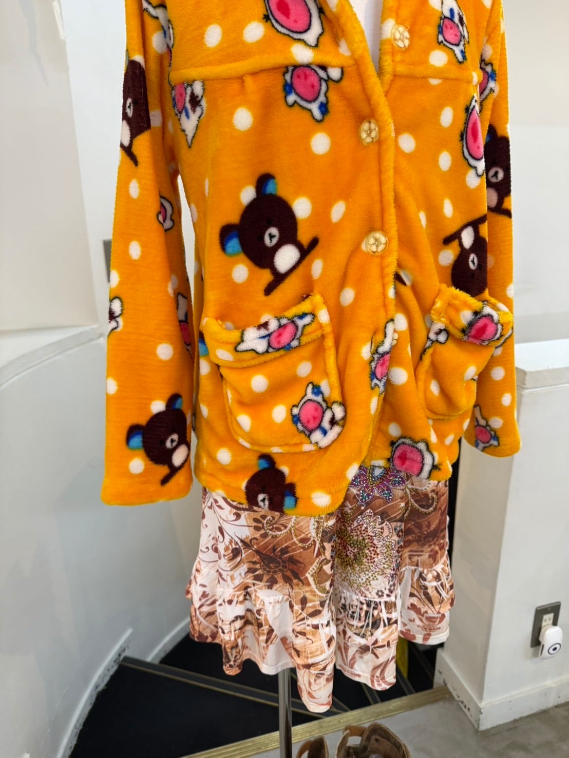 素材: Polyester(表記なし) サイズ: 肩幅40cm 袖丈53cm 身幅42cm 身丈87cm 衿幅8cm ダメージ: 写真15〜17枚目のような糸のほつれがあります。
