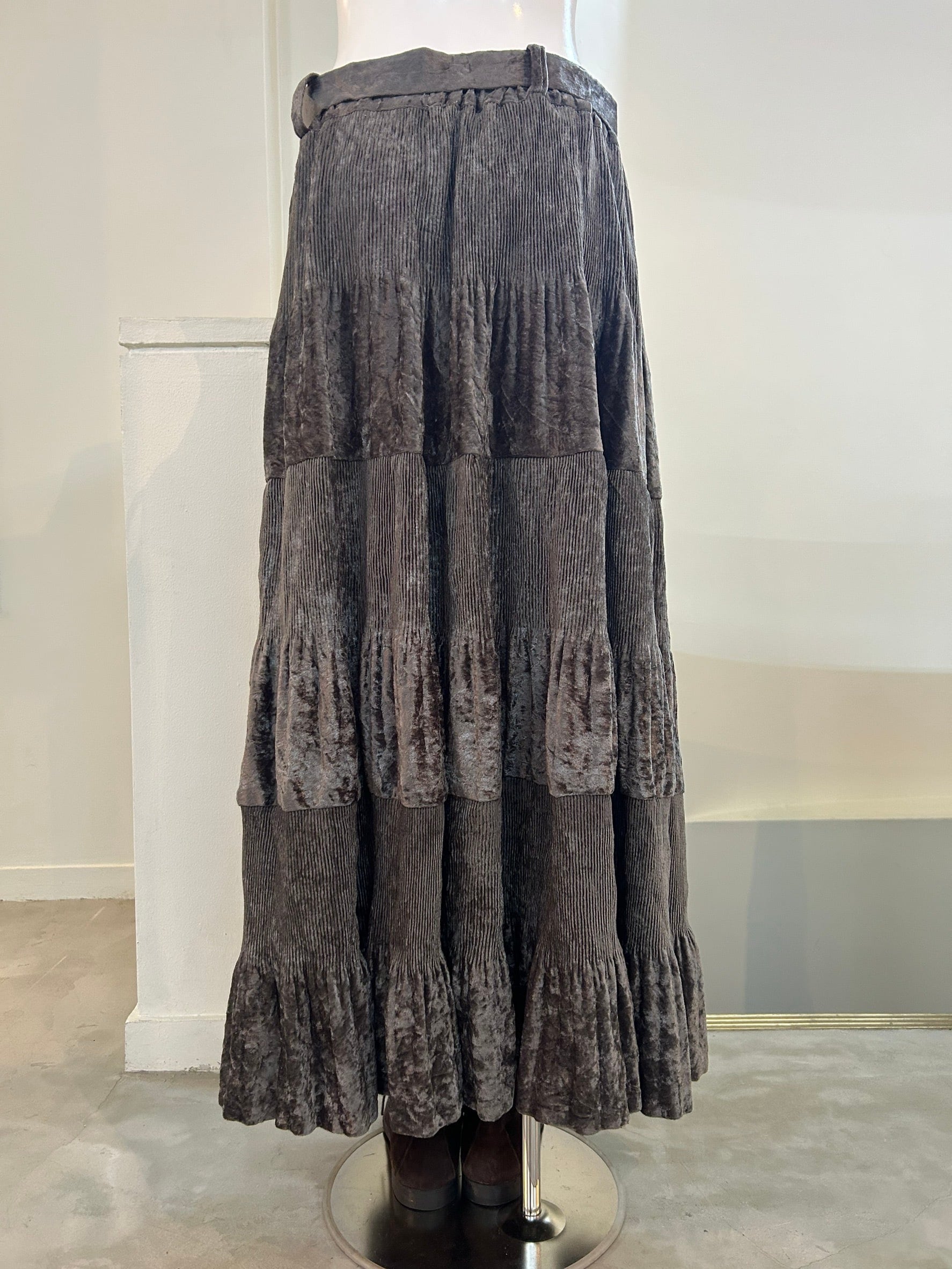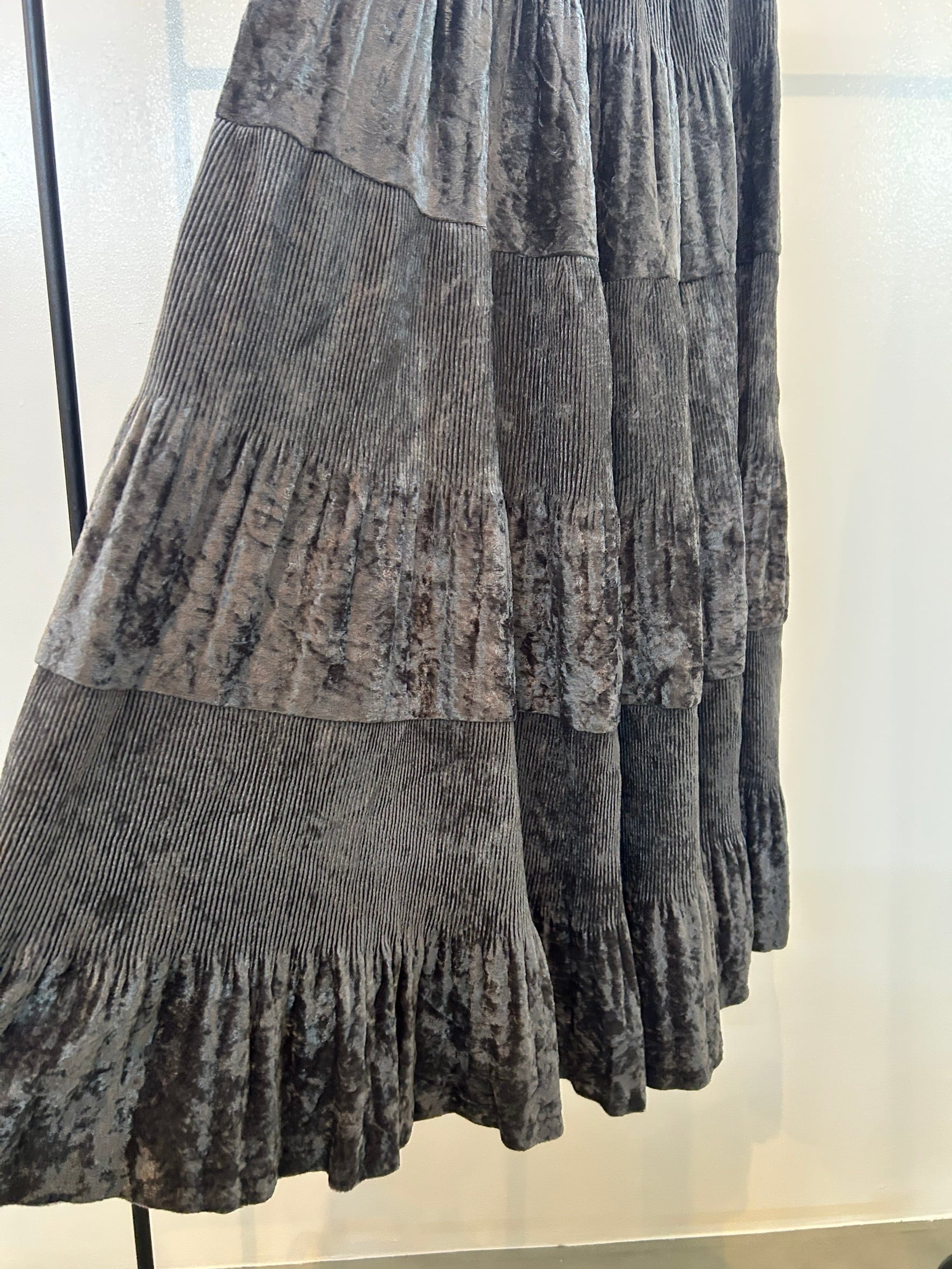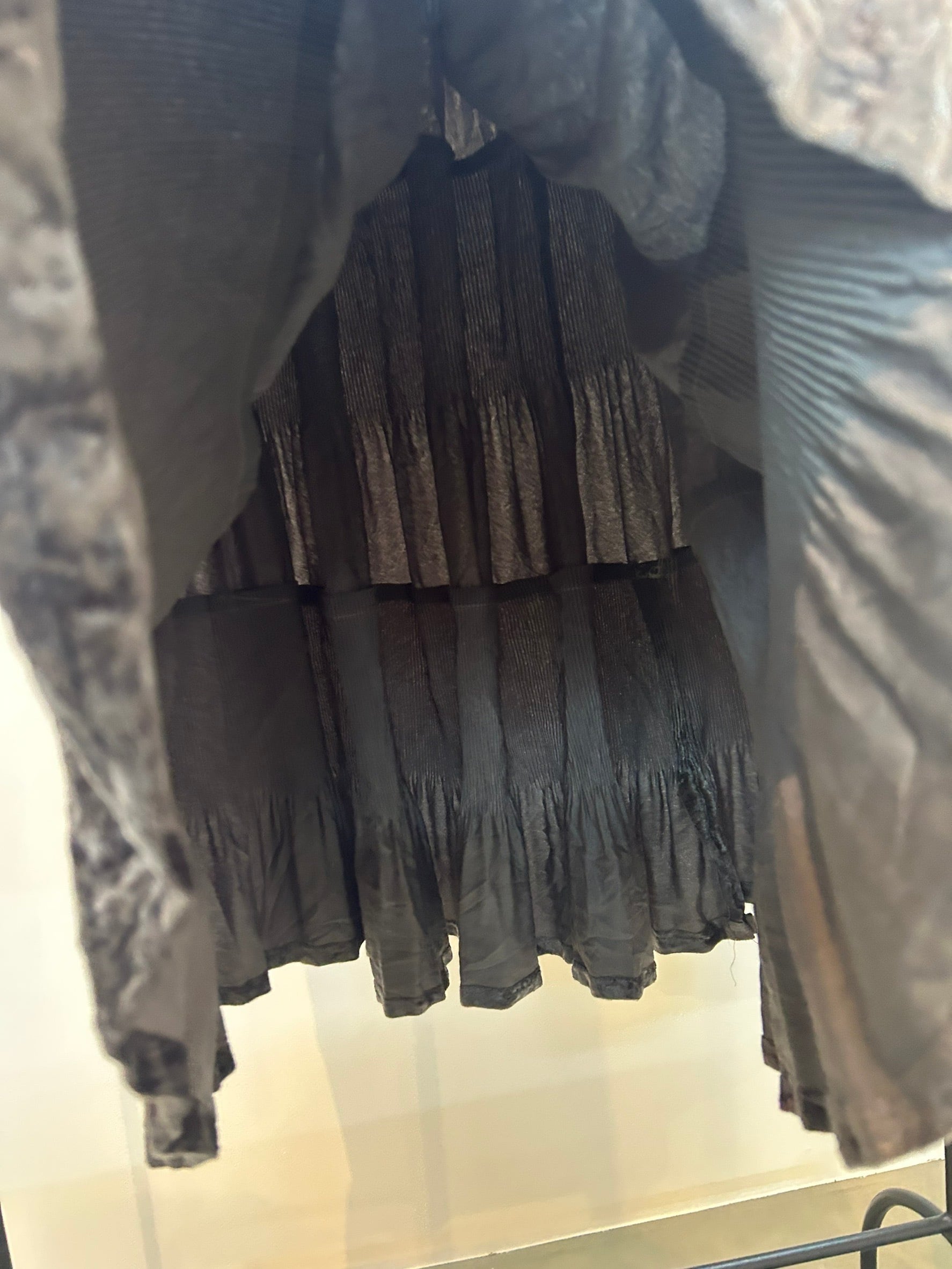 素材: 100%Polyester サイズ: ウエスト幅37cm(ゴム) 総丈89cm ダメージ: 写真18.19枚目のような縫い目の粗いところがあります