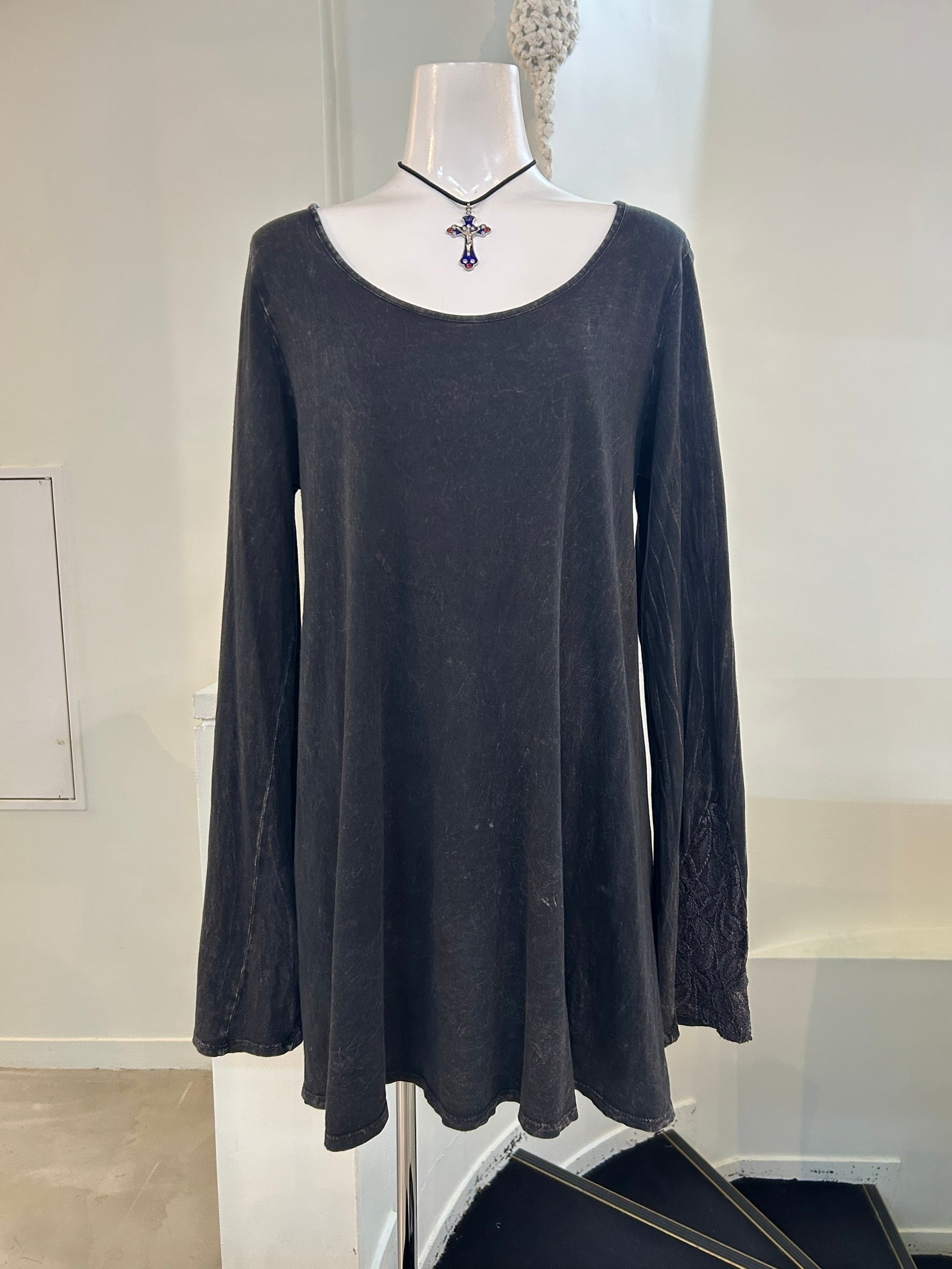 素材: Cotton サイズ: 着丈80cm 肩幅36cm 身幅48cm 袖丈70cm ダメージ: 写真15〜17枚目のような白くなっている部分が元々の柄なのかダメージによる色落ちなのかは不明です