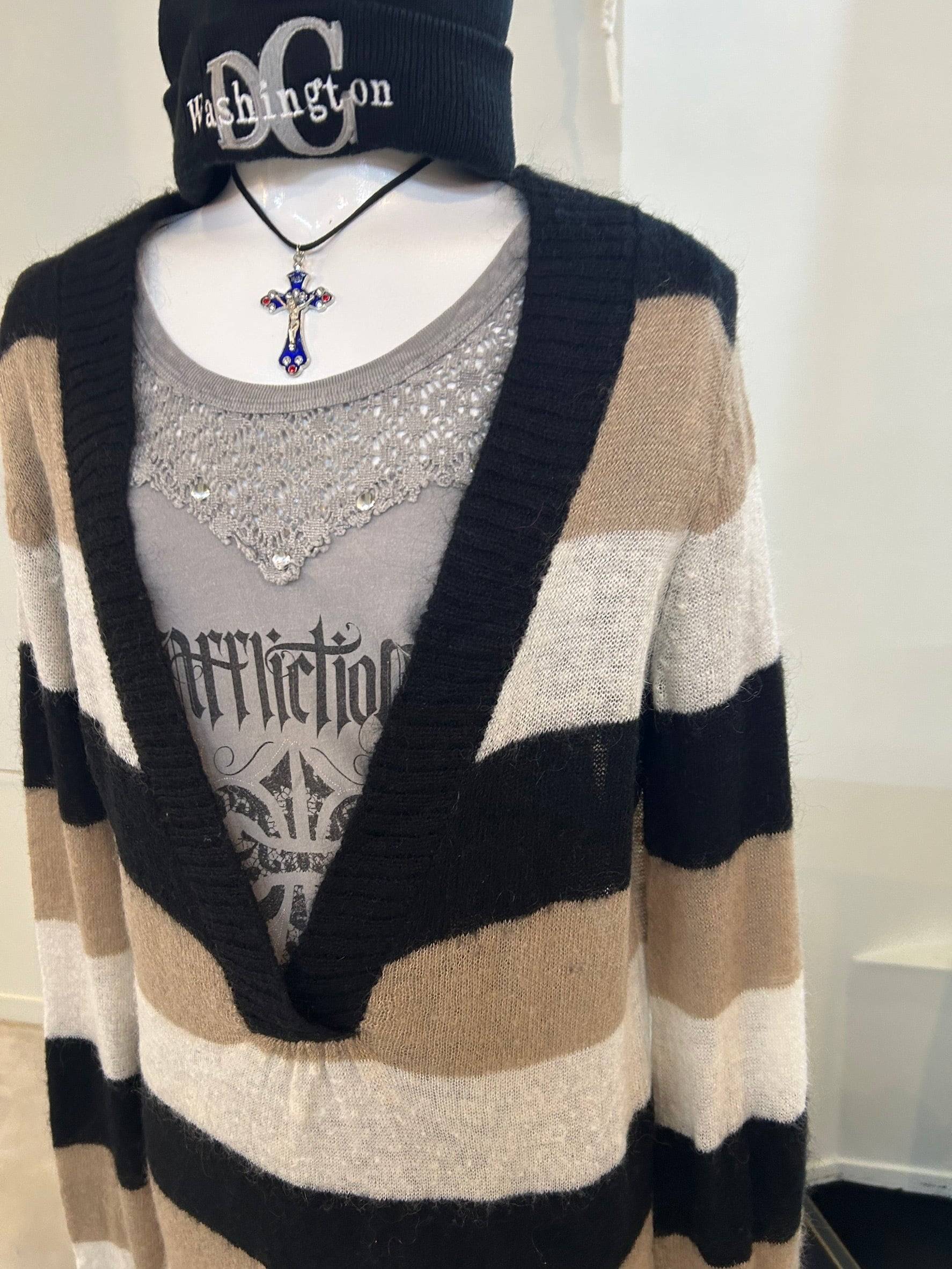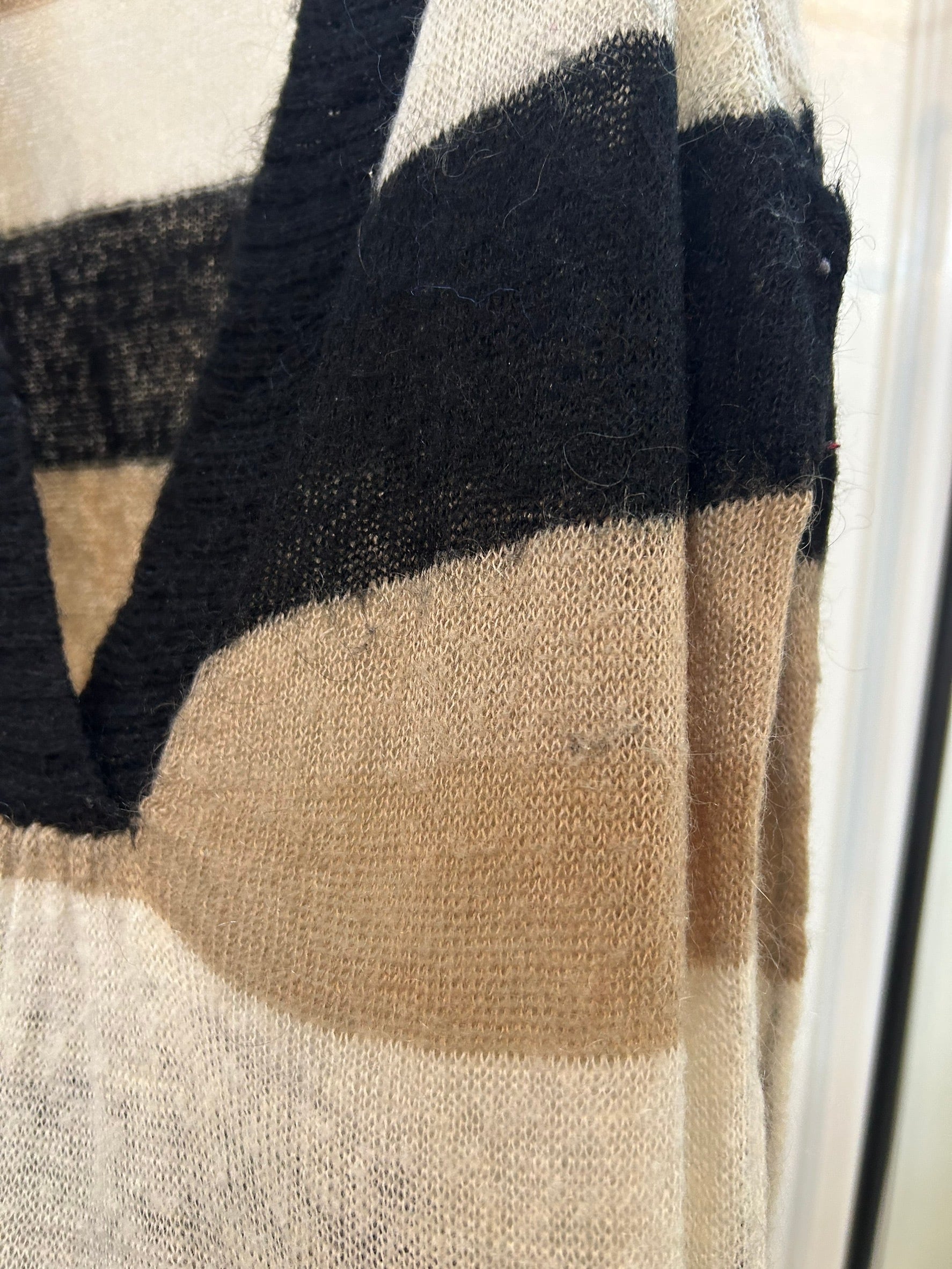 素材: 43%Acrylic 29%Polyamide 26%Mohair 3%Wool サイズ: UK16(表記) 着丈88cm 肩幅39cm 身幅46cm 袖丈82cm ダメージ: 写真17枚目のように取りきれない毛羽立ちがあります。18枚目の汚れがあります。