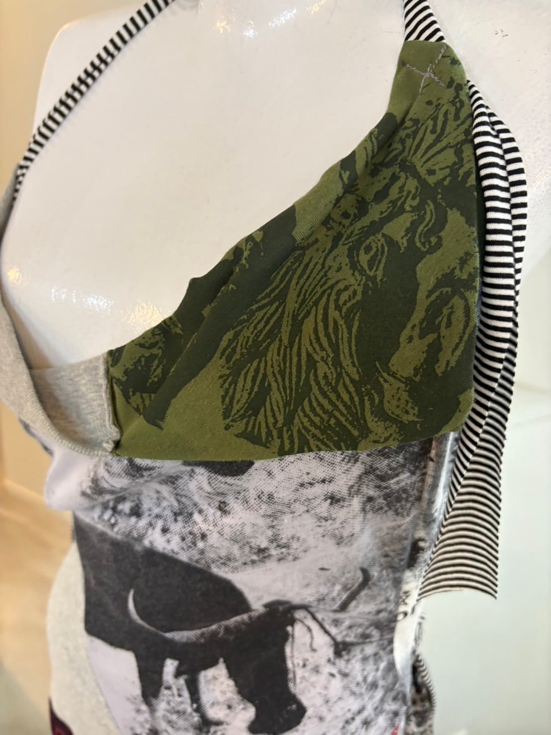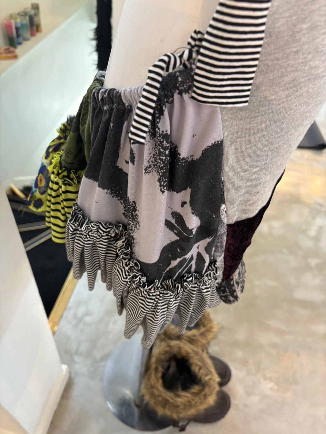 素材: Cotton サイズ: フリーサイズ 身頃丈64cm BONE(ボーン)ニューヨークを拠点に、ユーモアやセンシュアリティを交えたパーソナルな表現を特徴とするブランド。 シルクスクリーンなど手作業による制作を大切にしており、フェミニンさと力強さが共存するアイテムを展開しています。