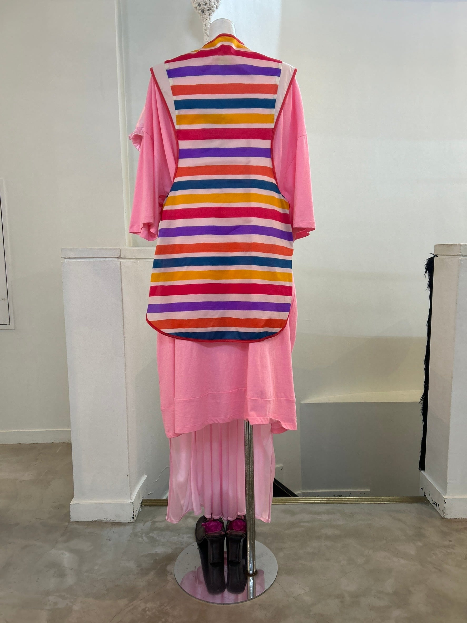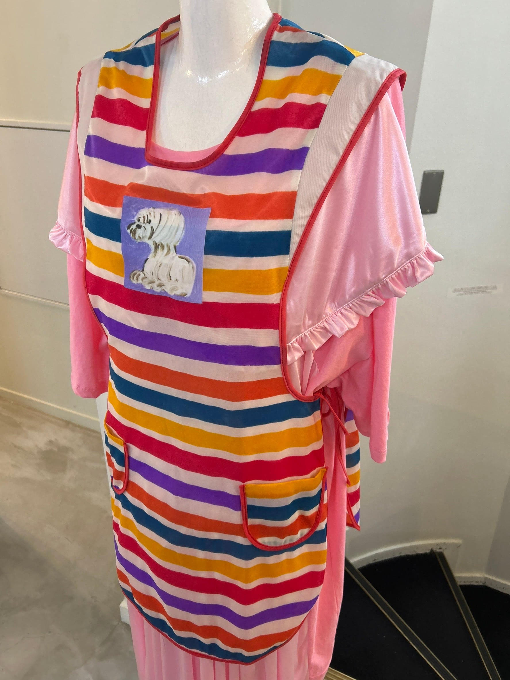 素材: Polyester(表記なし) サイズ: 着丈79cm 身幅42cm ダメージ: 写真19.20枚目の汚れがあります 画家 安藤智の展覧会「FANCY♡」とitimiのコラボシリーズ