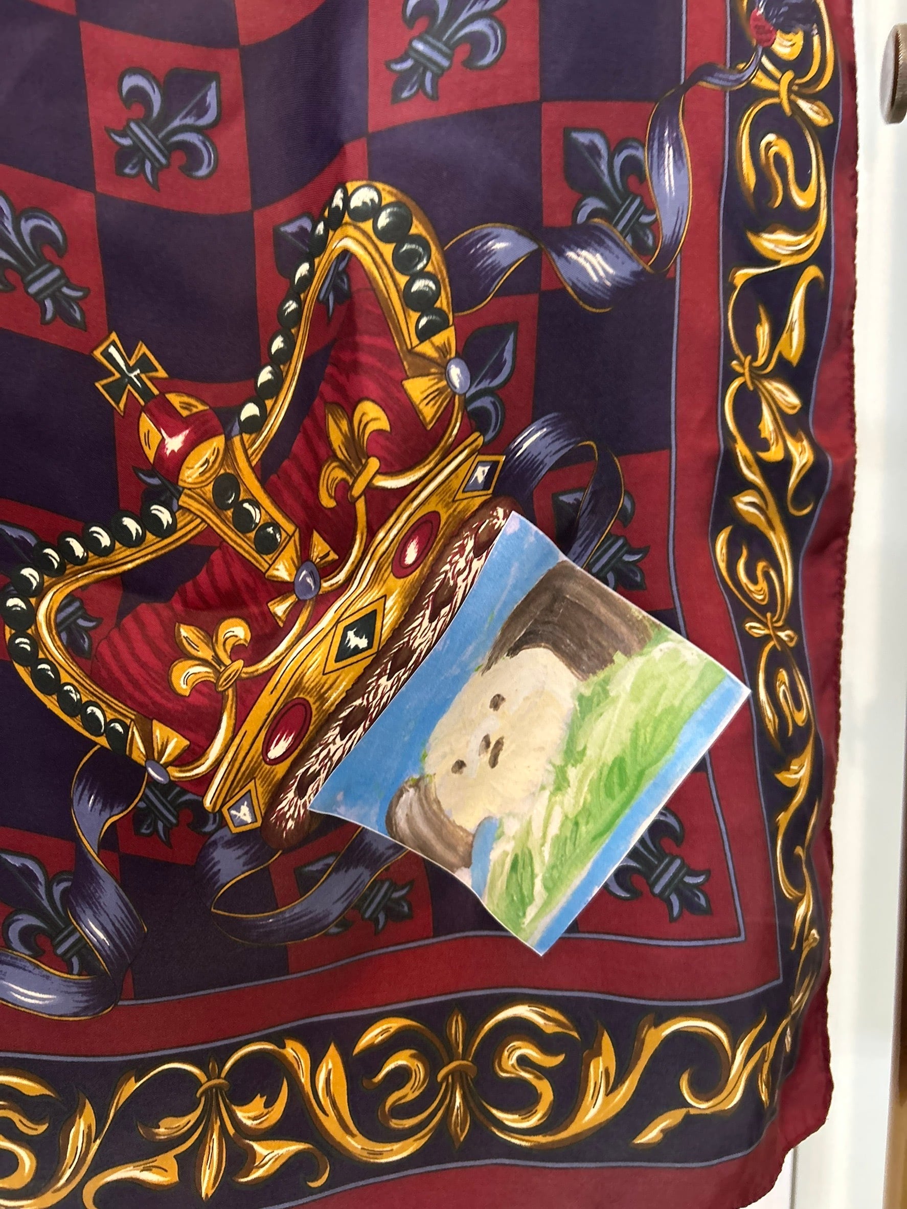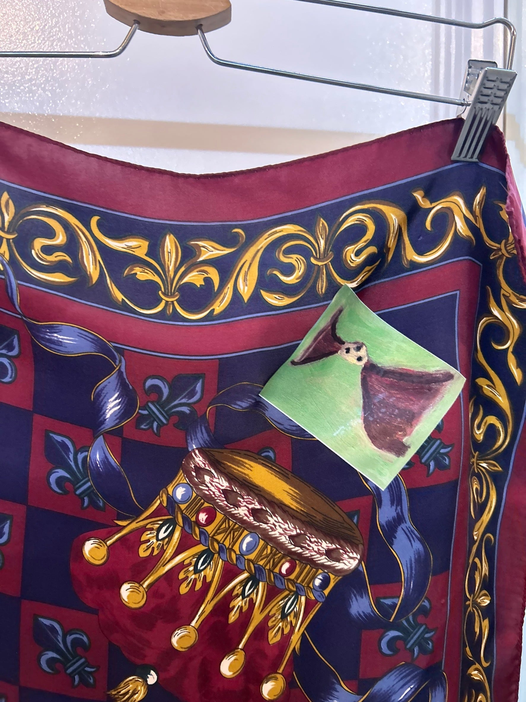 素材: Polyester(表記なし) サイズ: 90×90cm ダメージ: 写真16〜18枚目の生地のダメージがあります 安藤智展「FANCY♡」に合わせて制作したシリーズ。安藤智の油彩作品とitimiのコラボです。