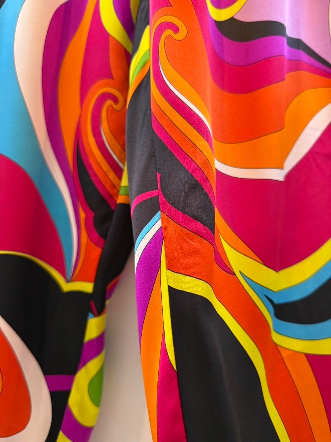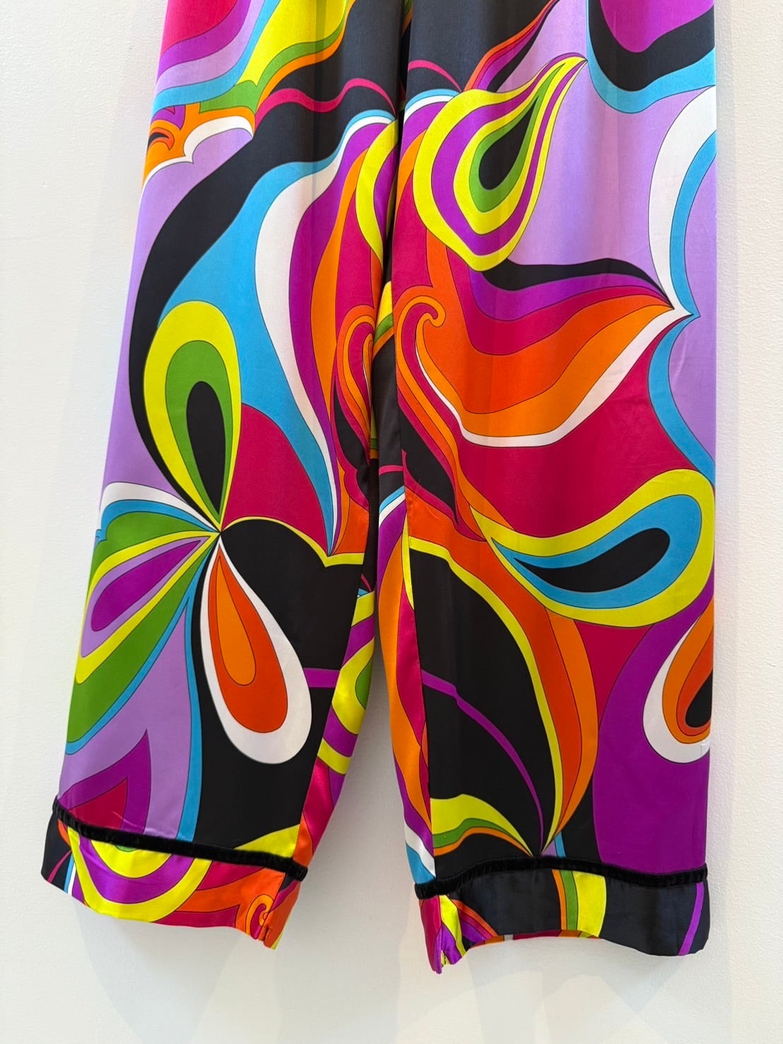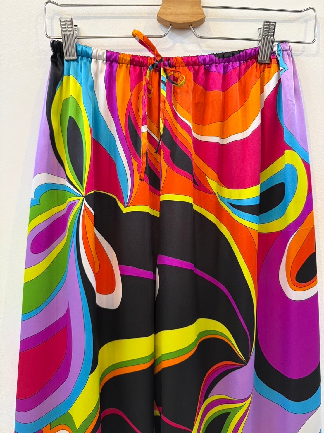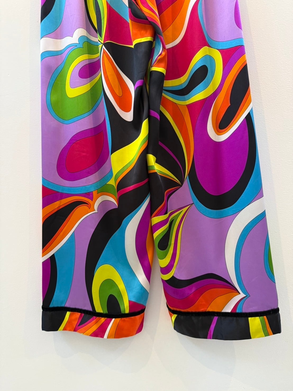 素材: 100%Polyester サイズ: XS(表記) ウエスト幅29cm 股上32cm 股下71cm わたり幅33cm 裾幅23.5cm ダメージ: 写真12〜15枚目のような短い電線や小さな凹みがあります。