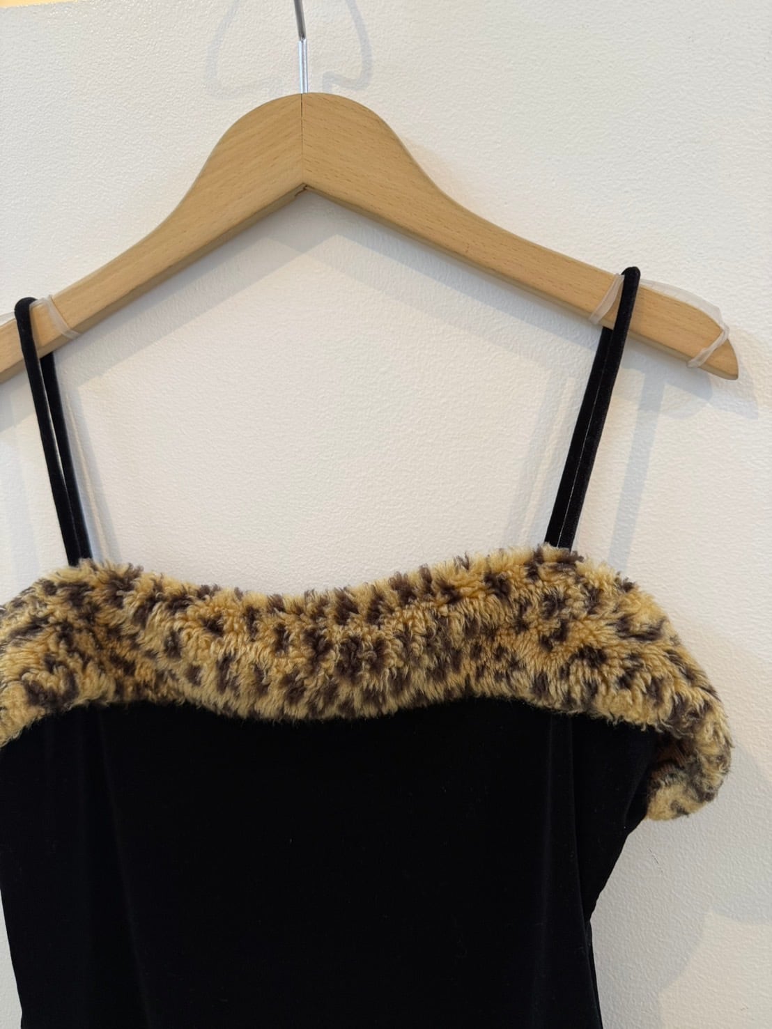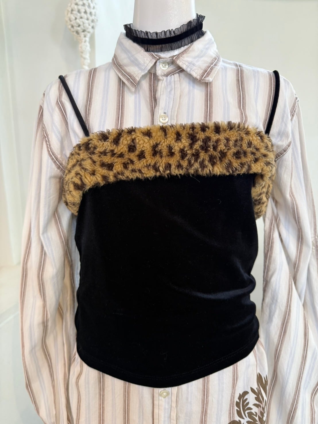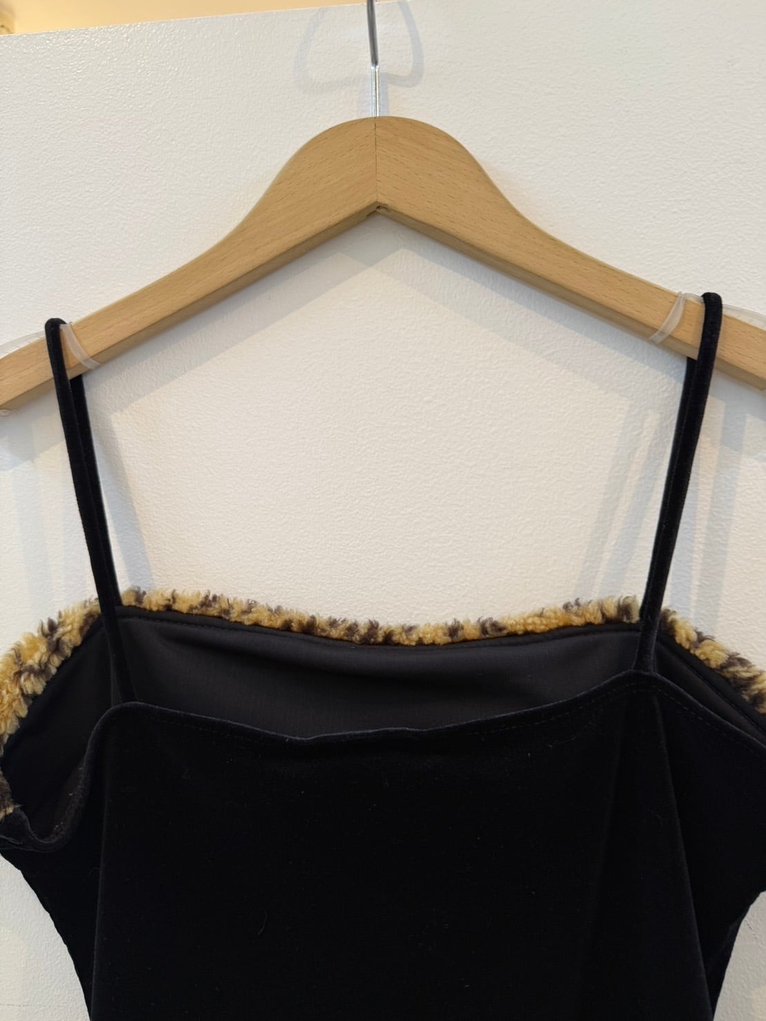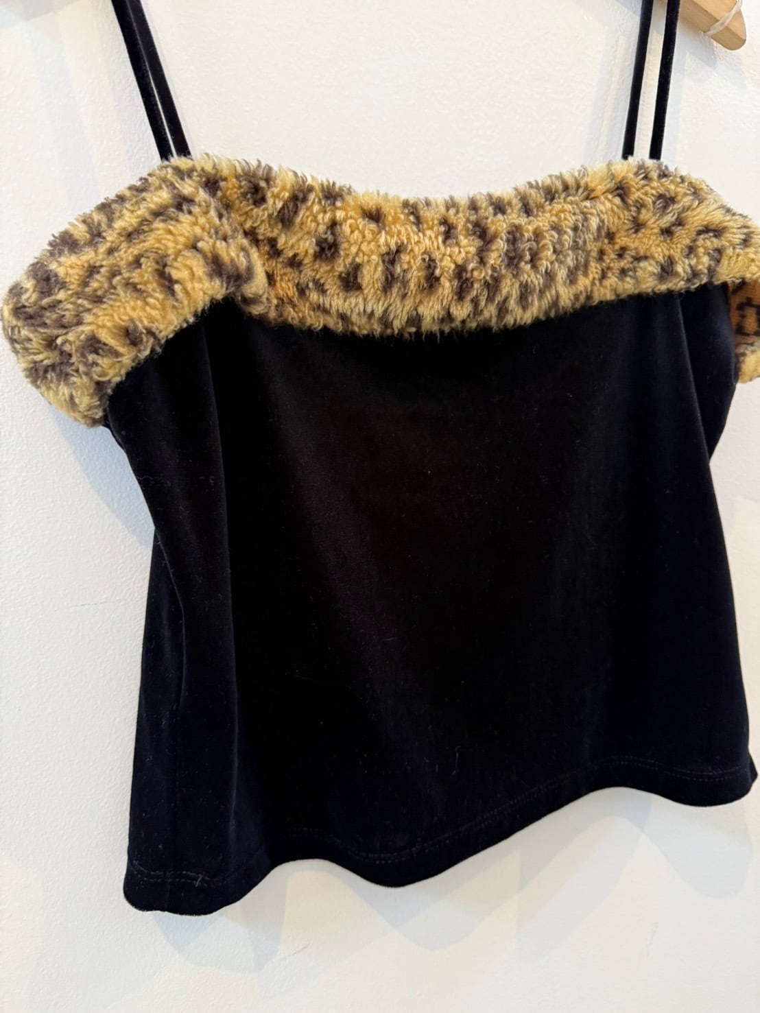 素材: 90%Polyester 10%Spandex サイズ: L(表記) 身幅37cm 総丈45cm ヒョウ柄丈6.5cm Made in U.S.A