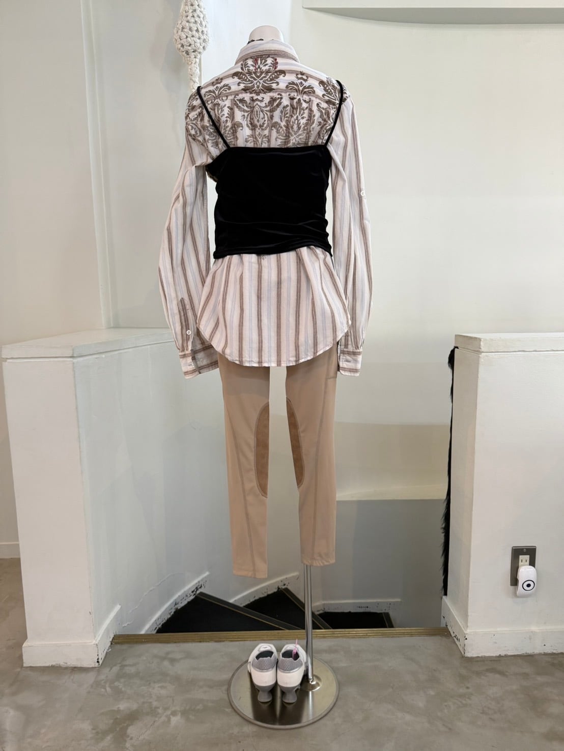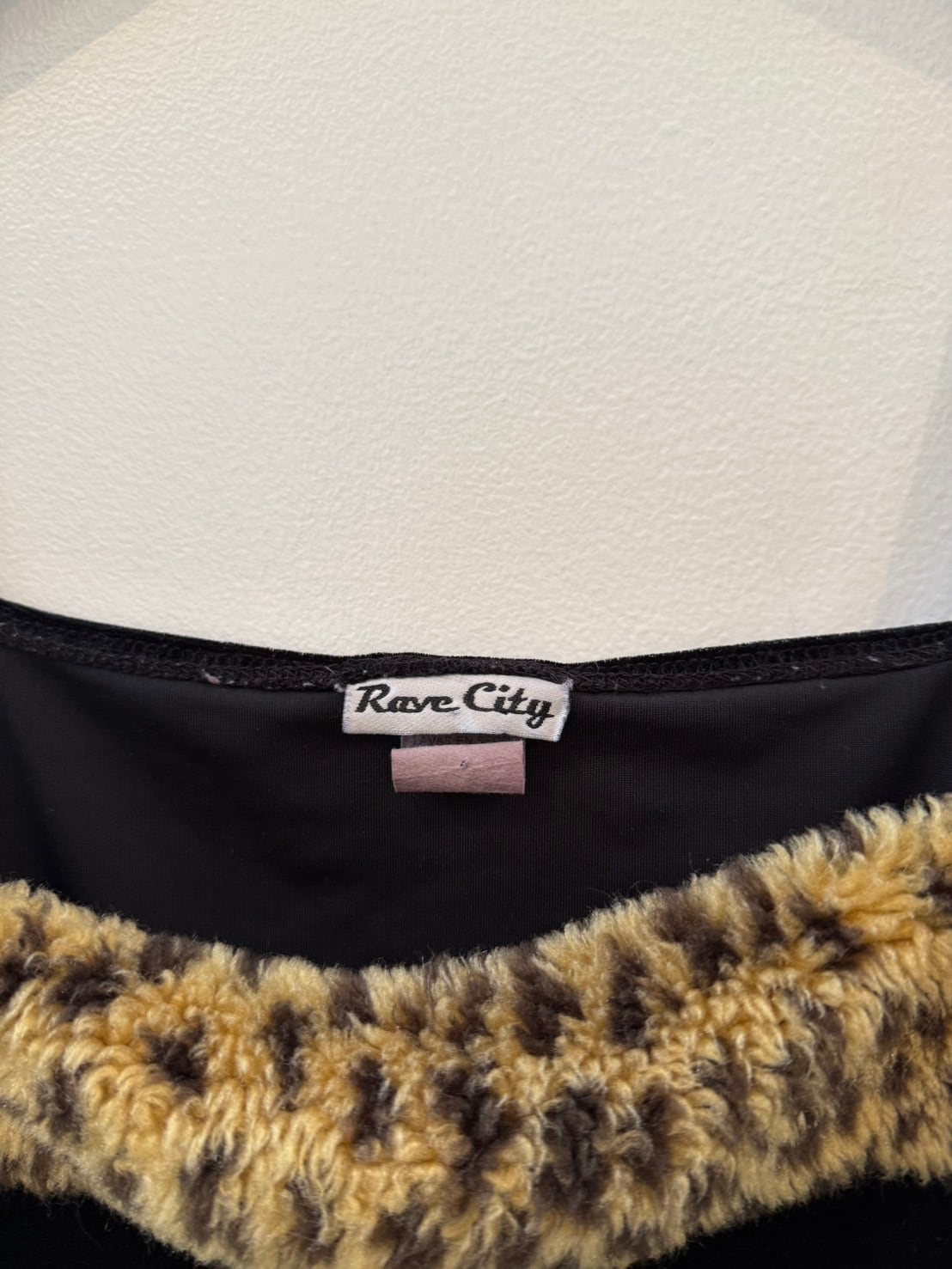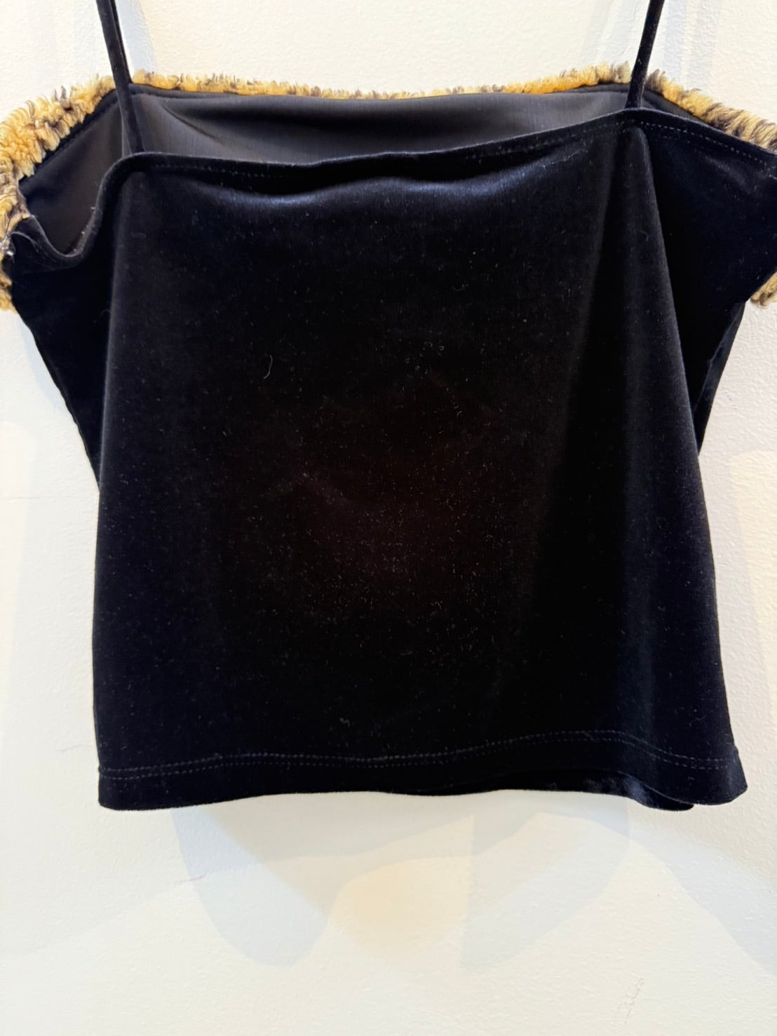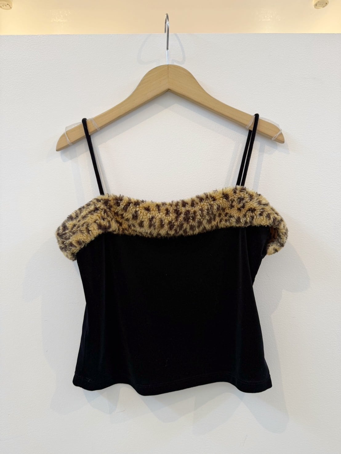 素材: 90%Polyester 10%Spandex サイズ: L(表記) 身幅37cm 総丈45cm ヒョウ柄丈6.5cm Made in U.S.A