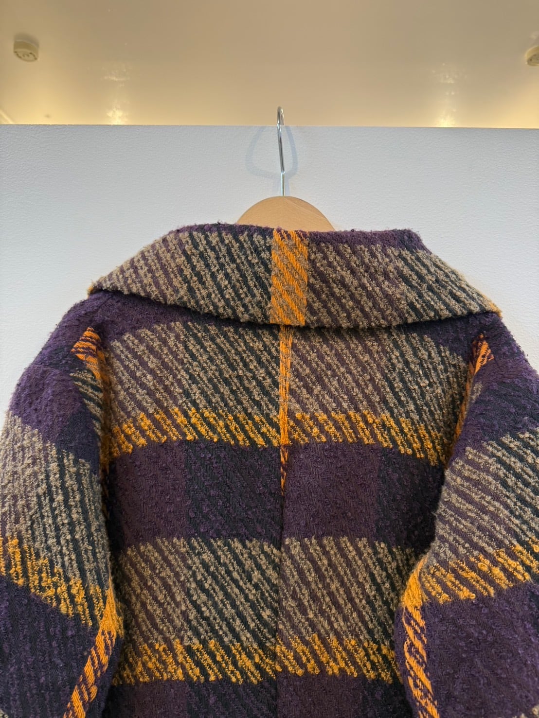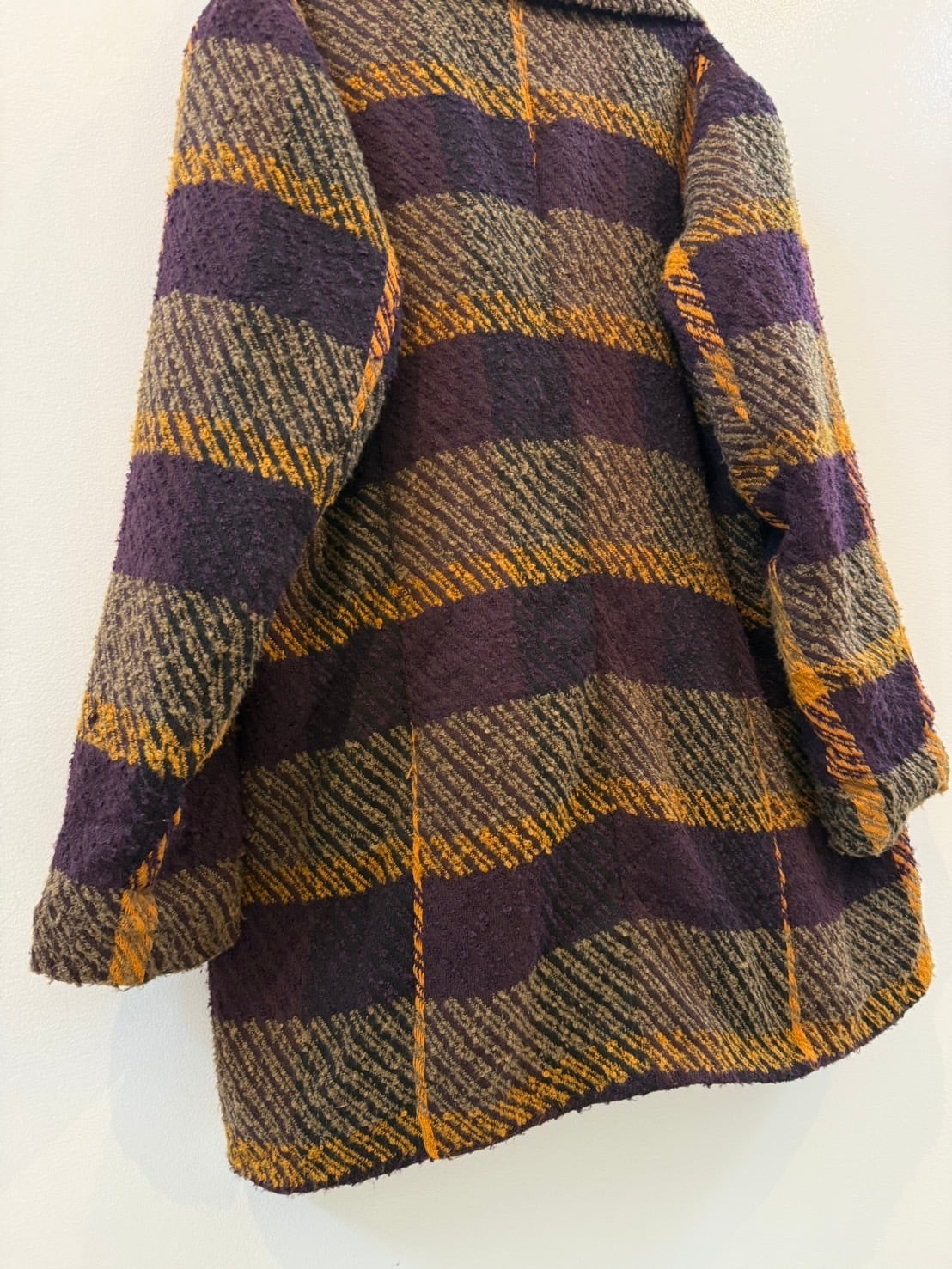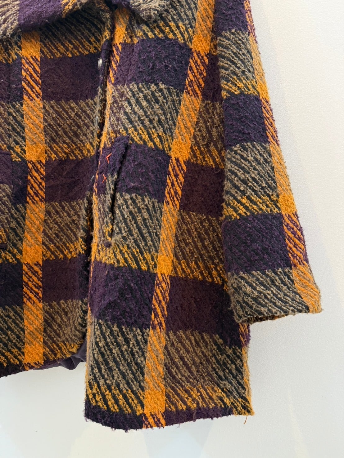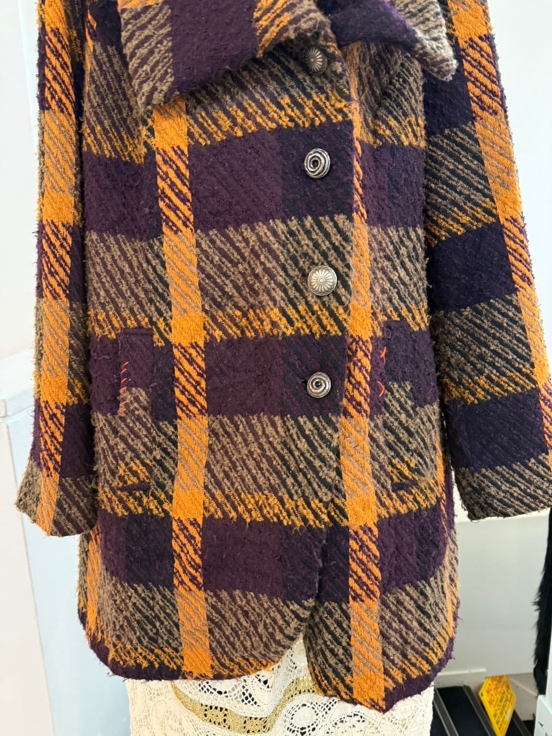 素材: 95%Polyester 5%Wool サイズ: 肩幅41cm 袖丈65cm 身幅60cm 身丈87cm 衿幅18cm(最大) ダメージ: 写真16枚目のような全体的に毛羽立ちがあります。